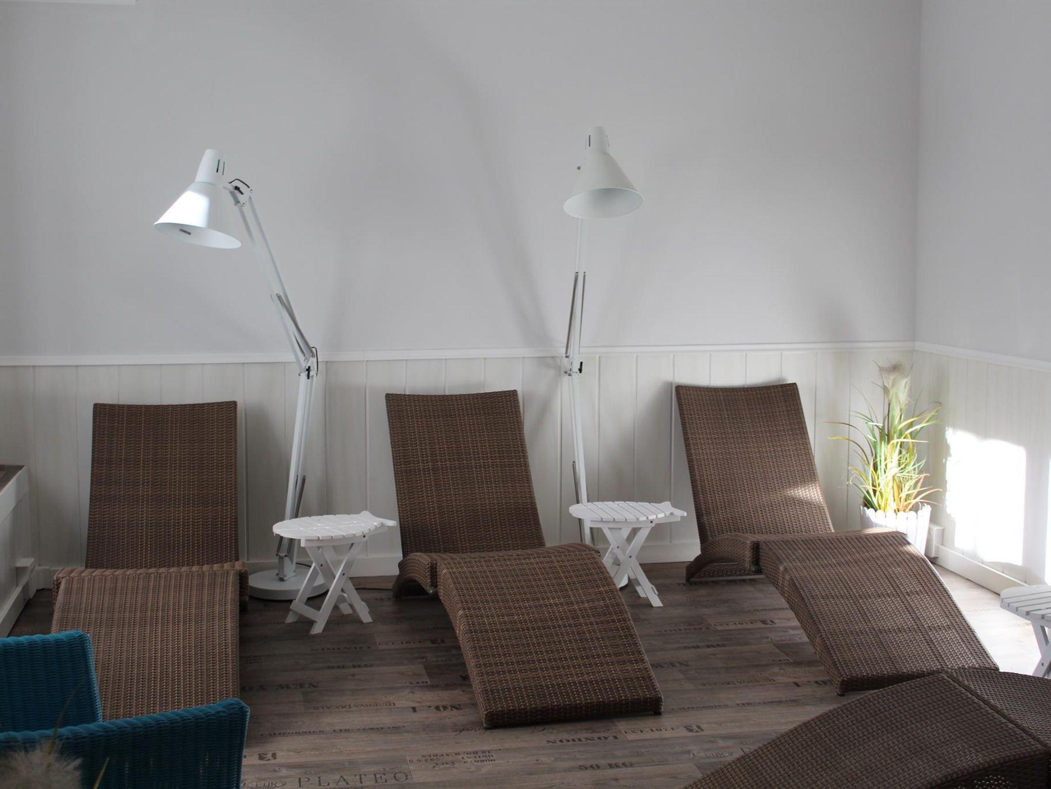 Ginster, 2-Zimmer-Appartement im Ober- und Dachgeschoß im linken Hausteil gelegen. Flur. Duschbad/WC. Wohnzimmer mit hochw. italienischen Fliesen im Holzdesign mit integrierter Küchenzeile (Ceranfeld, Mikrowelle, Geschirrspüler), Essecke, Sitzecke, Kabel-Flach-TV, Radio-Stereoanlage, Schlafsofa. Möblierter Südwestbalkon. Schlafzimmer im Dachgeschoss ( Vinylboden) mit Doppelbett und Einbauschrank, TV, Safe. Insektenschutzgitter im Schlafzimmer. Waschmaschine u. Trockner im Haus, PKW-Platz Nr. 21. Erstausstattung der Bettwäsche inkl. 2 Hand-u. 2 Duschtücher. Kostenloses W-LAN. Keine Tiere. Nichtraucher. Kostenlose Saunanutzung im Haus möglich.