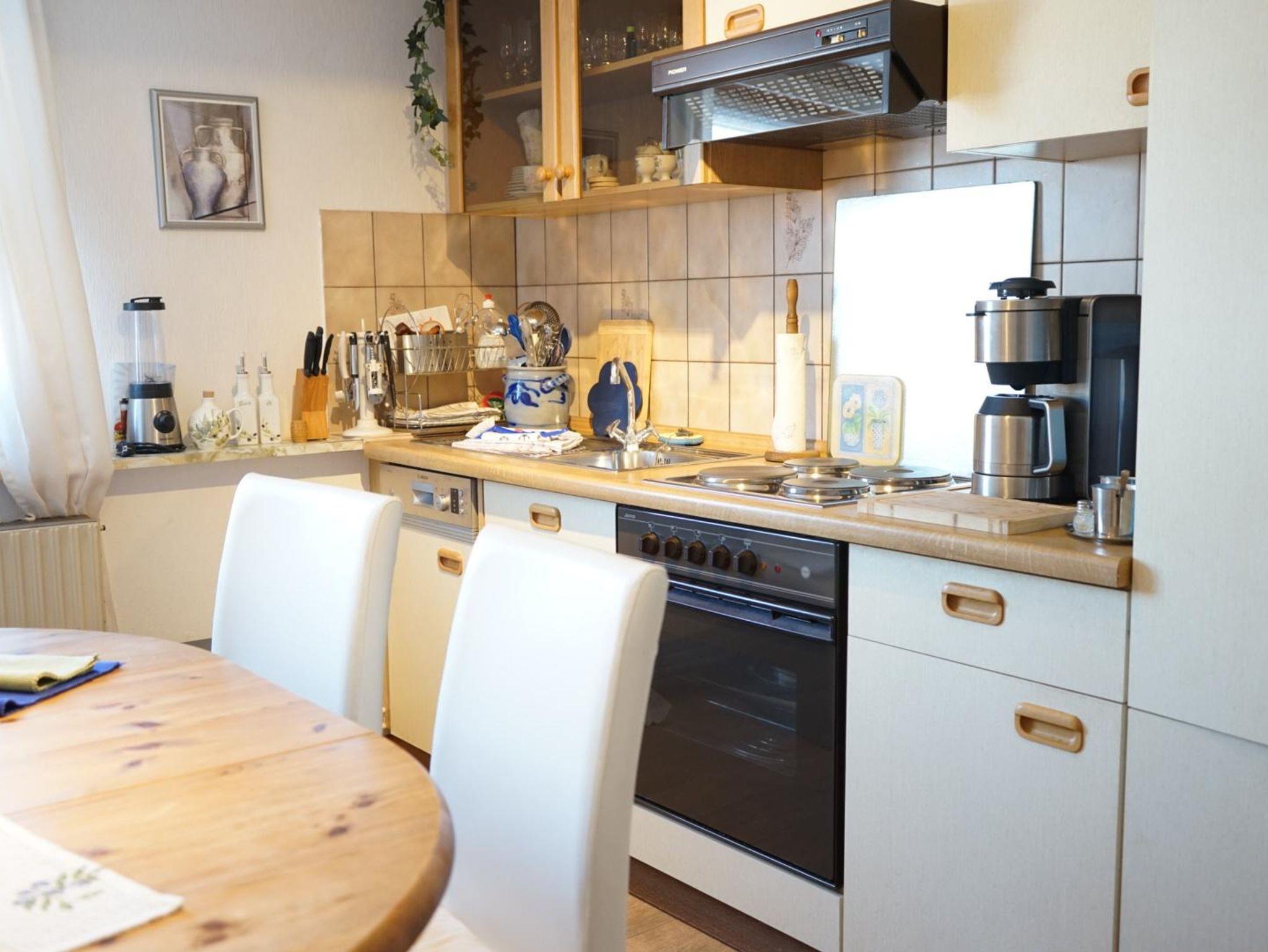 Die Wohnung verfügt weiterhin über eine vollständig eingerichtete moderne Einbauküche in Vollholz.