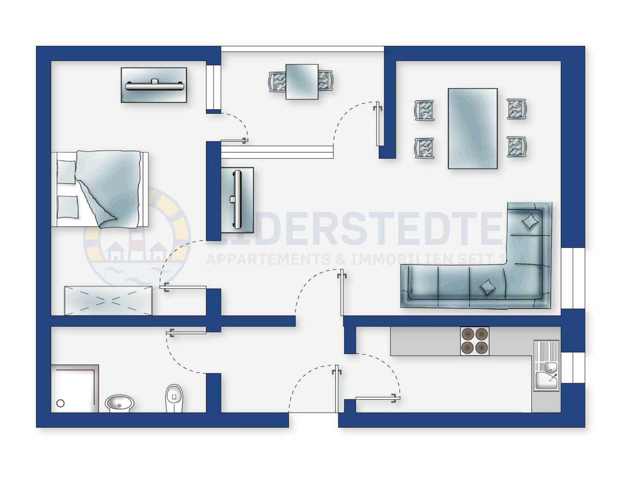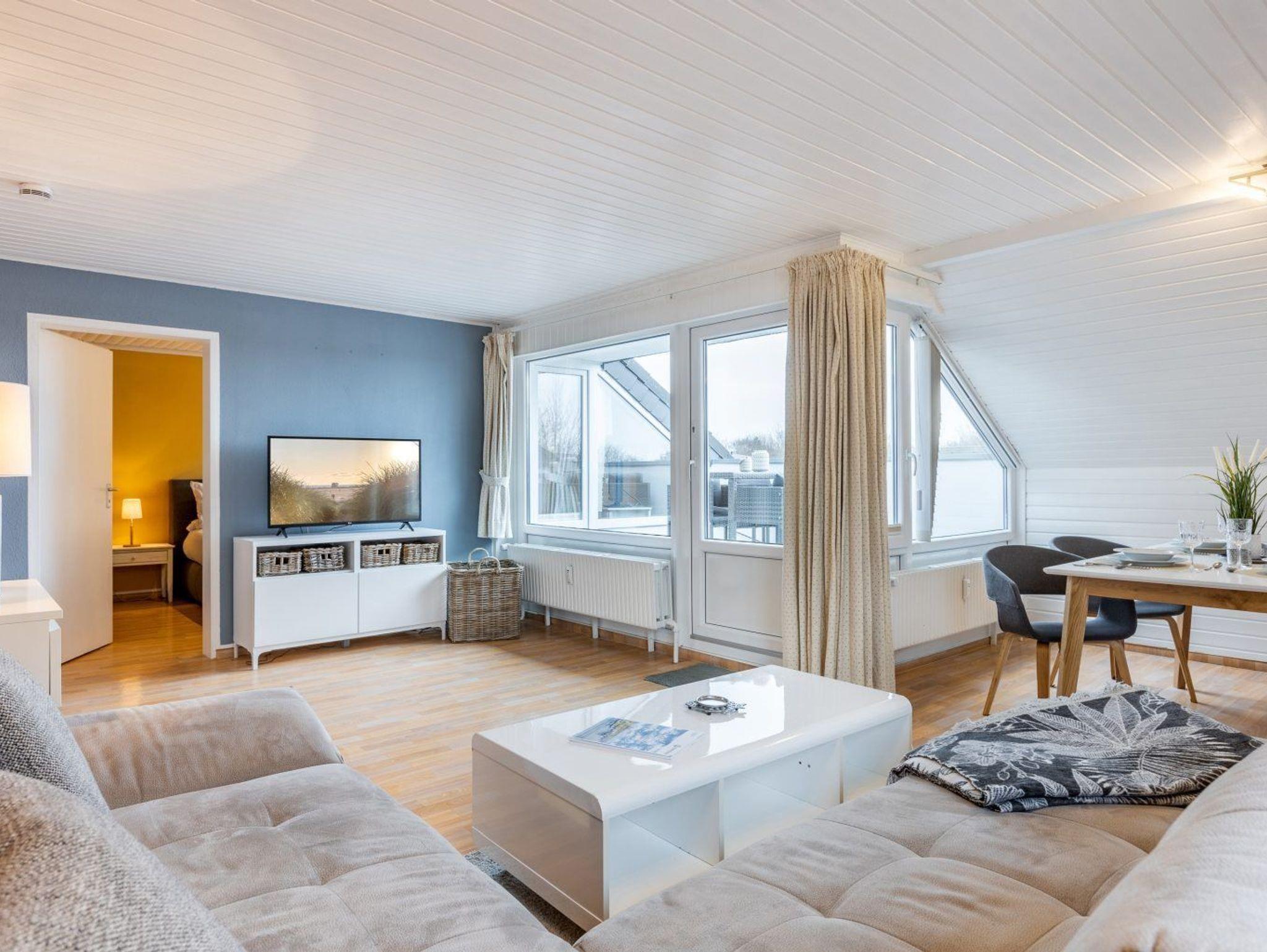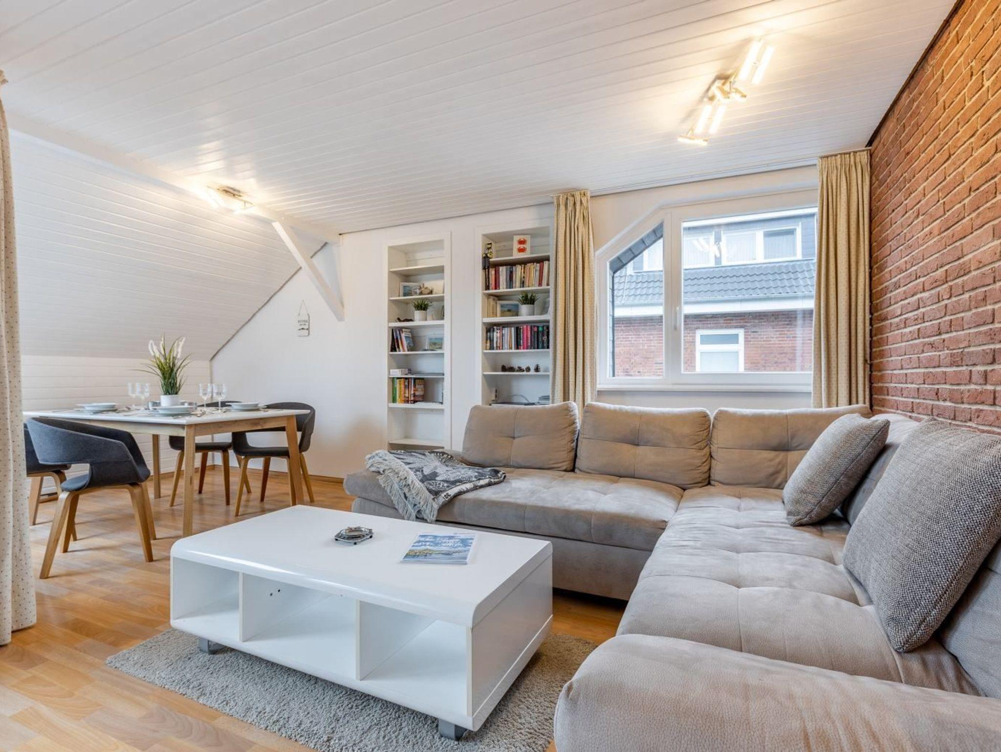 Komfortable 2-Zimmer-Ferienwohnung mit Meerblick und zentraler Lage in St. Peter-Ording, ideal für einen entspannten Urlaub am Strand.