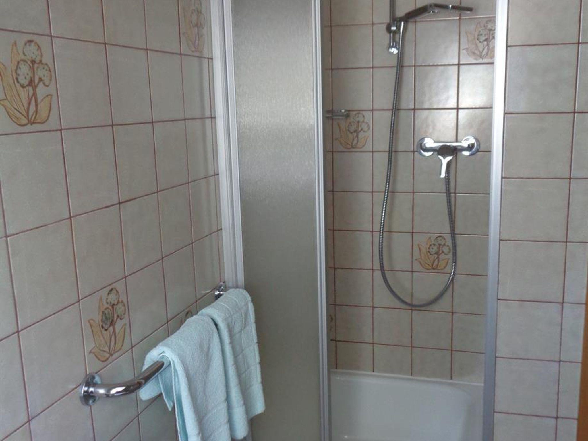 Die Wohnung hat ein Duschbad mit Waschtisch, WC, Duschkabine. In den Zimmern und auf dem Flur ist Kugelgarn von Fabromont verlegt. Entlang der Küchenzeile und im Bad liegen Fliesen.