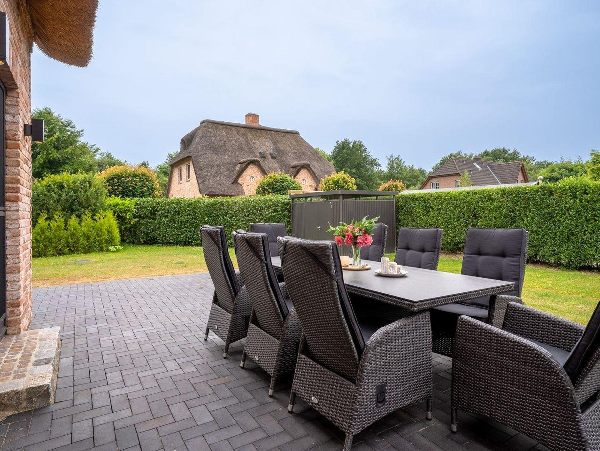 Genießen Sie Luxus und Ruhe im Reetdachhaus Summerdiek 9 in St. Peter-Ording mit Nähe zum Strand und viel Grün.