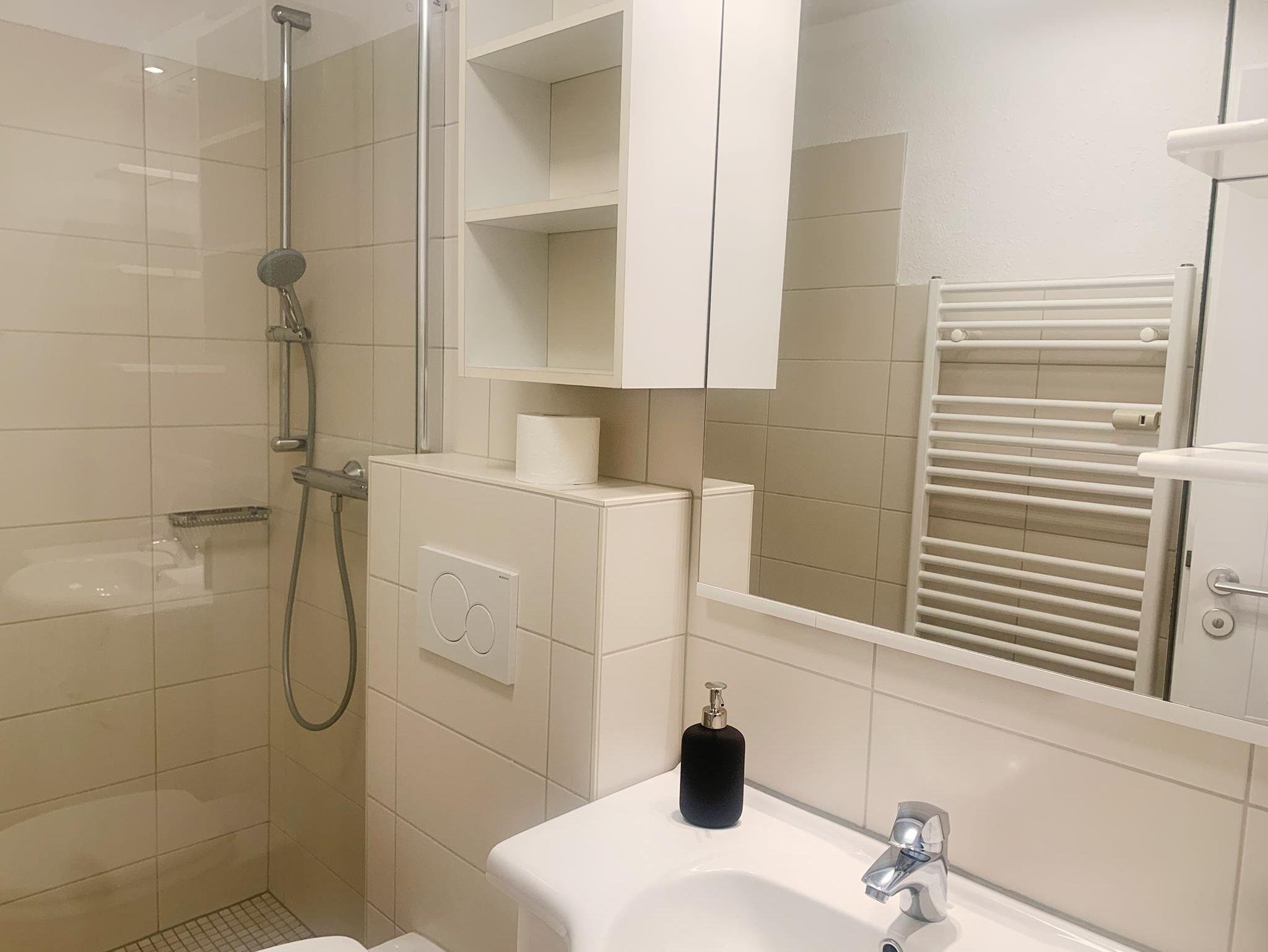 BadDusche, Waschtisch, WC, Duschkabine, Spiegel