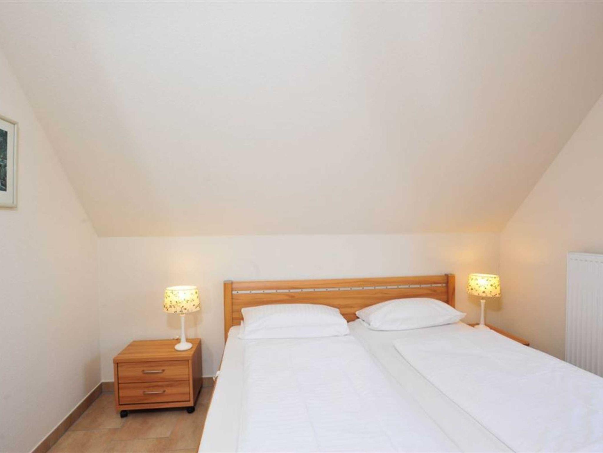 2. Schlafzimmer mit 2 Einzelbetten (je 90x200cm) und Kommode. Dieses Zimmer eignet sich wegen der niedrigen Deckenhöhe nur für Kinder. Zugang über enge, schmale Treppe.