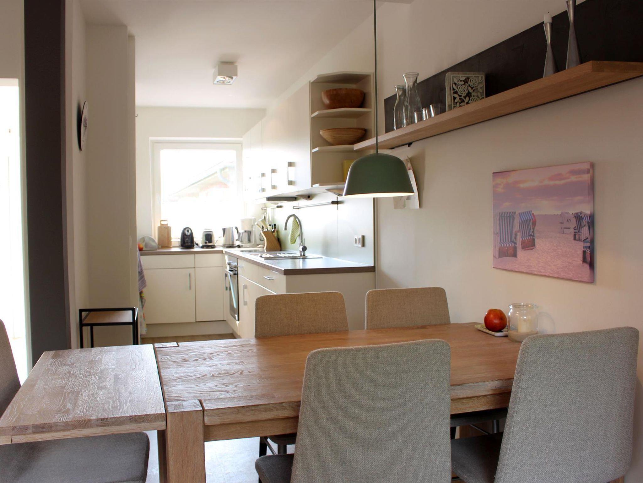 Dieses heimelige Reihenhaus fühlt sich nicht wie eine normale Ferienwohnung an, sondern bietet den Charme eines zweiten Zuhauses. Es ist sehr hochwertig und geschmackvoll ausgestattet und steht Ihnen auf 2 Etagen zur Verfügung. Im EG sticht die helle, offene Küche mit Wohnzimmer- und Terrassenanschluss ins Auge. Die Terrasse ist komplett ausgestattet. Sie werden es lieben, den ersten Kaffee oder Tee im Strandkorb mit der Sonne im Gesicht zu geniessen.