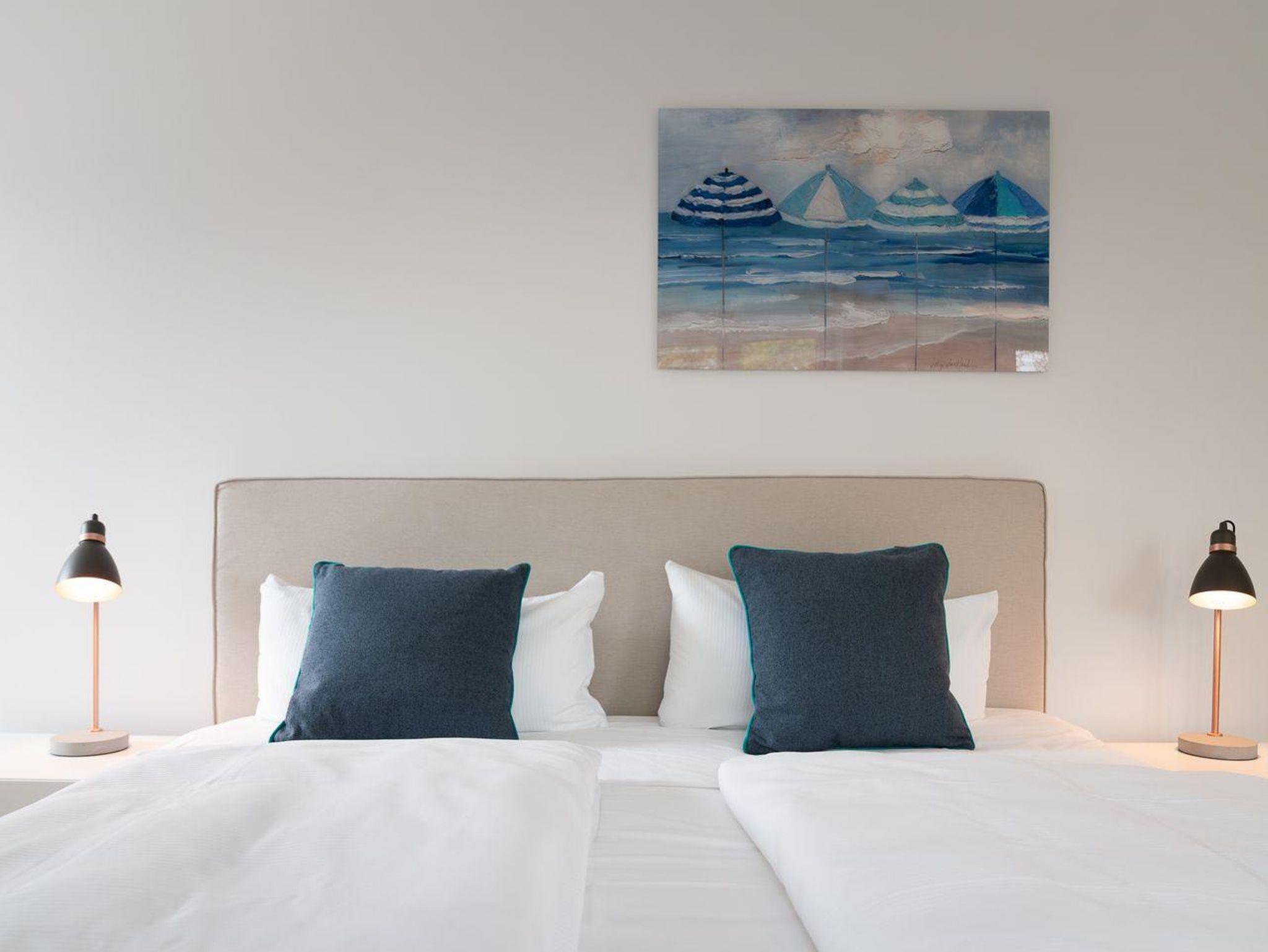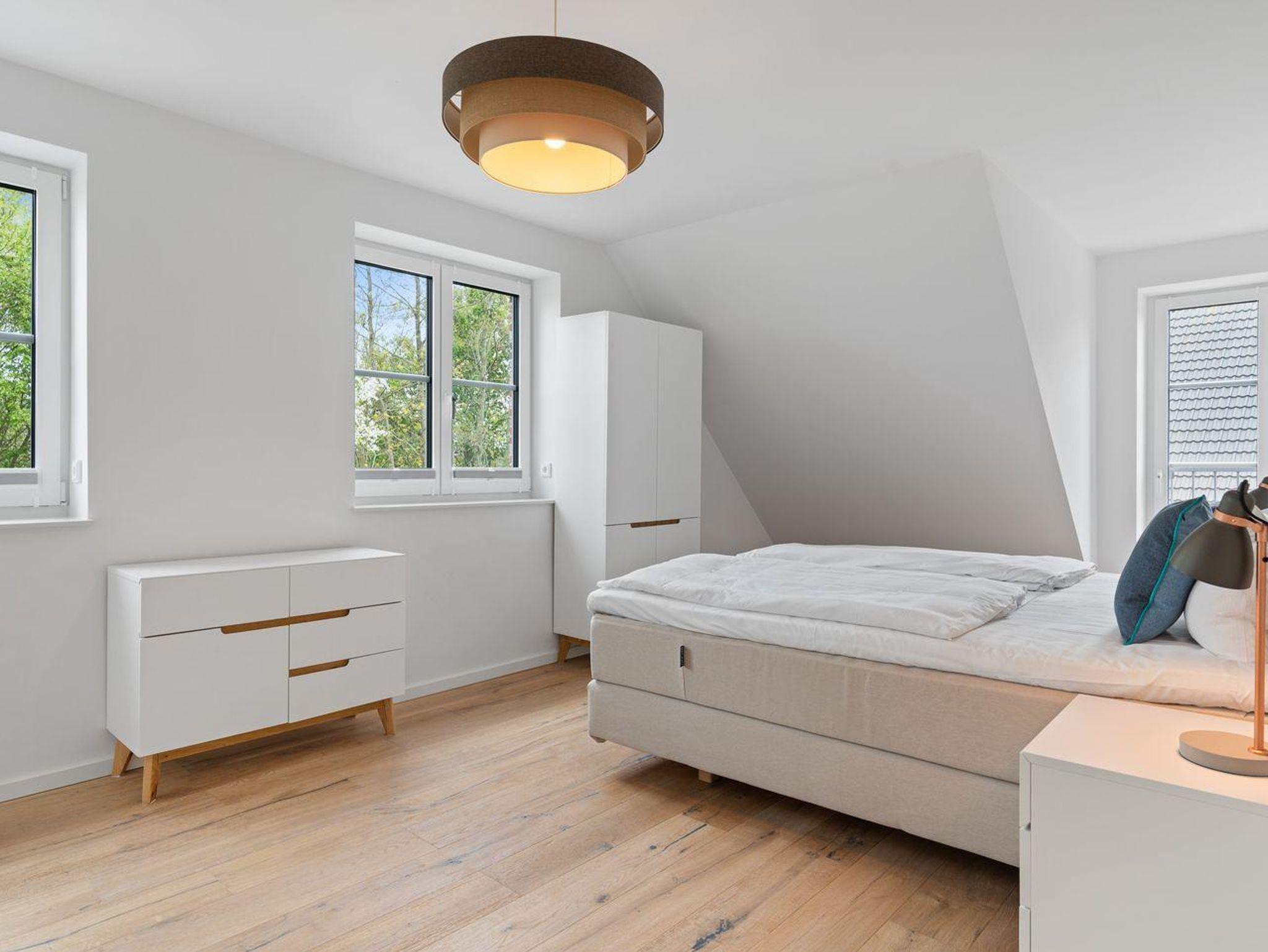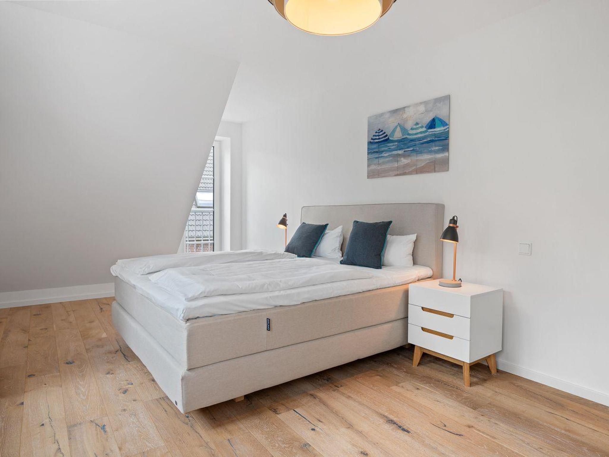 Die stilvoll Schlafzimmer mit Boxspingbetten bieten Komfort und genügend Stauraum für Ihr Gepäck. Ein Schlafzimmer verfügt über ein gemütliches Doppelbett (1,80 x 2,00), während im anderen Zimmer weitere Schlafmöglichkeiten (1,40 x 2,00) zur Verfügung stehen. Die Badezimmer mit Dusche und Badewanne bieten optimalen Komfort.