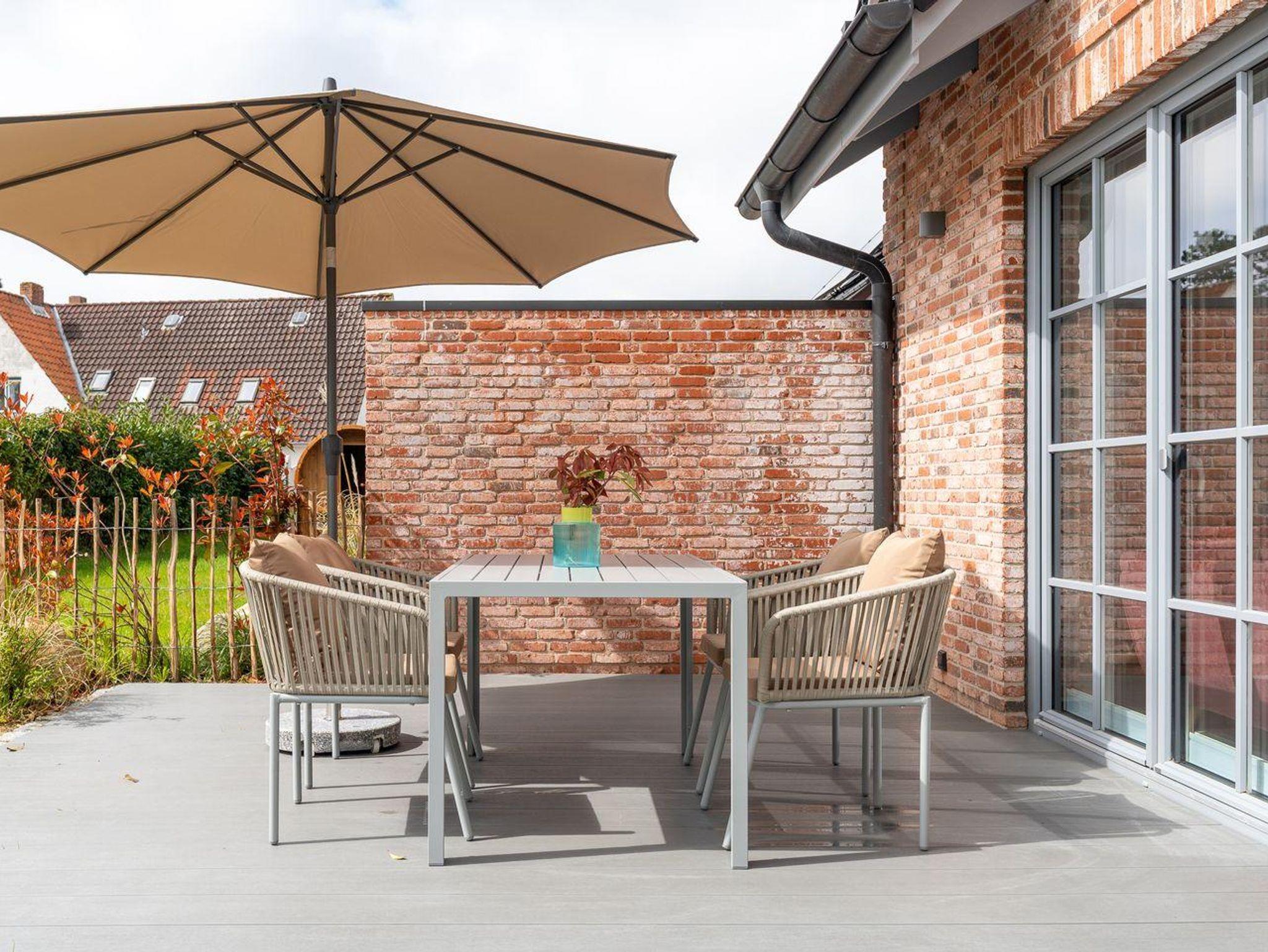 Die Terrasse im eingezäunten Garten lädt zum Entspannen ein und bietet die Möglichkeit, die frische Nordseeluft zu genießen. Ein Sichtschutz garantiert Ihnen Privatsphäre. Zudem steht Ihnen auch ein Gartenhaus zur Verfügung, wo Sie Ihre E-Bikes sicher verschließen und kostenfrei laden können.