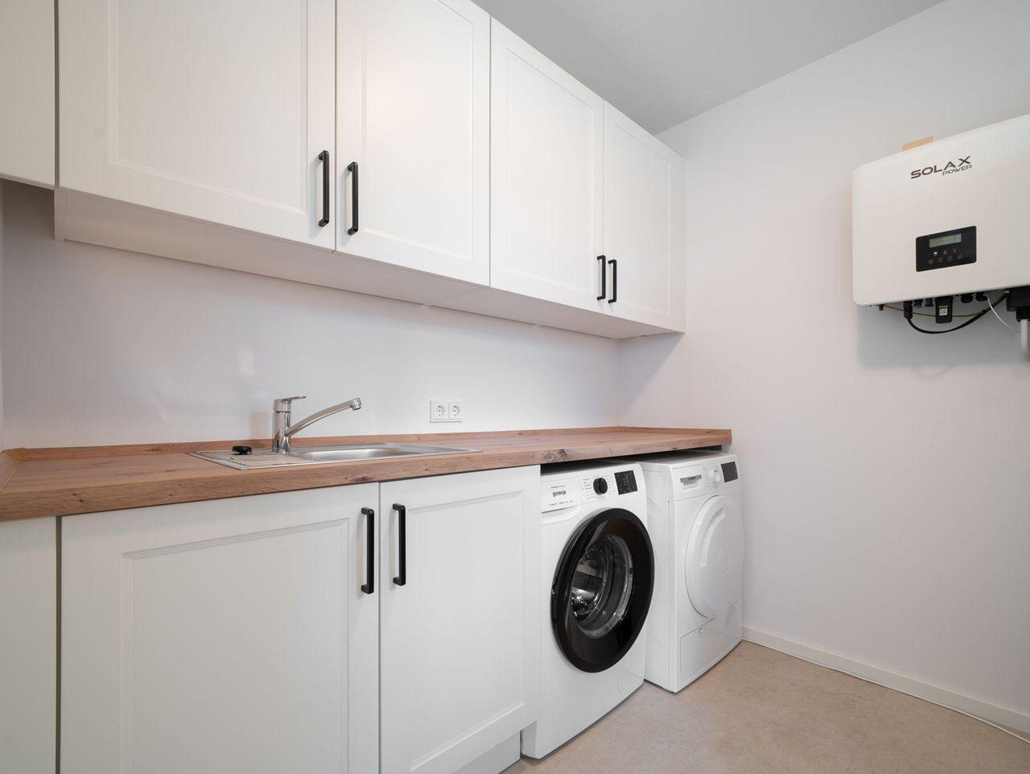 Ein privater Parkplatz steht direkt vor der Unterkunft zur Verfügung, sodass Sie sich keine Gedanken über Parkmöglichkeiten machen müssen. Ebenaflls verfügt das Objekt über eine Waschmaschine und einen Trockner.