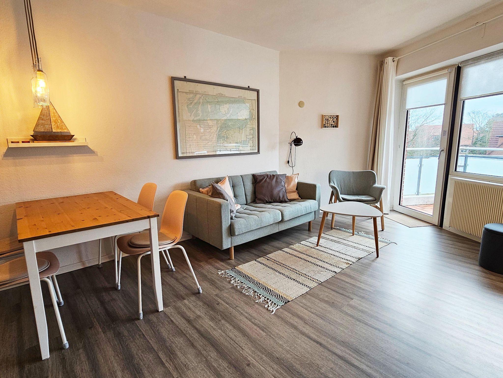 Moderne 2-Zimmer-Ferienwohnung in St. Peter-Ording nahe Deich mit Balkon und moderner Ausstattung.
