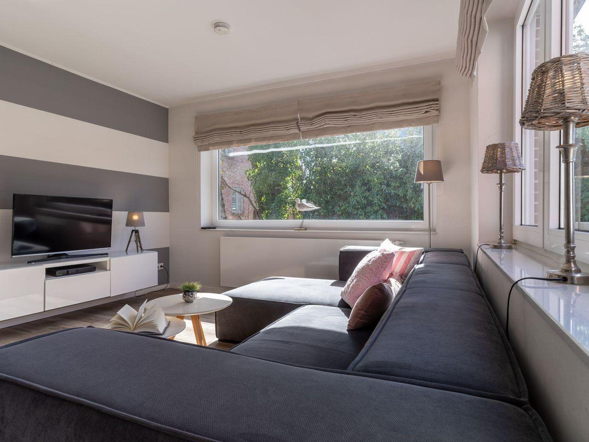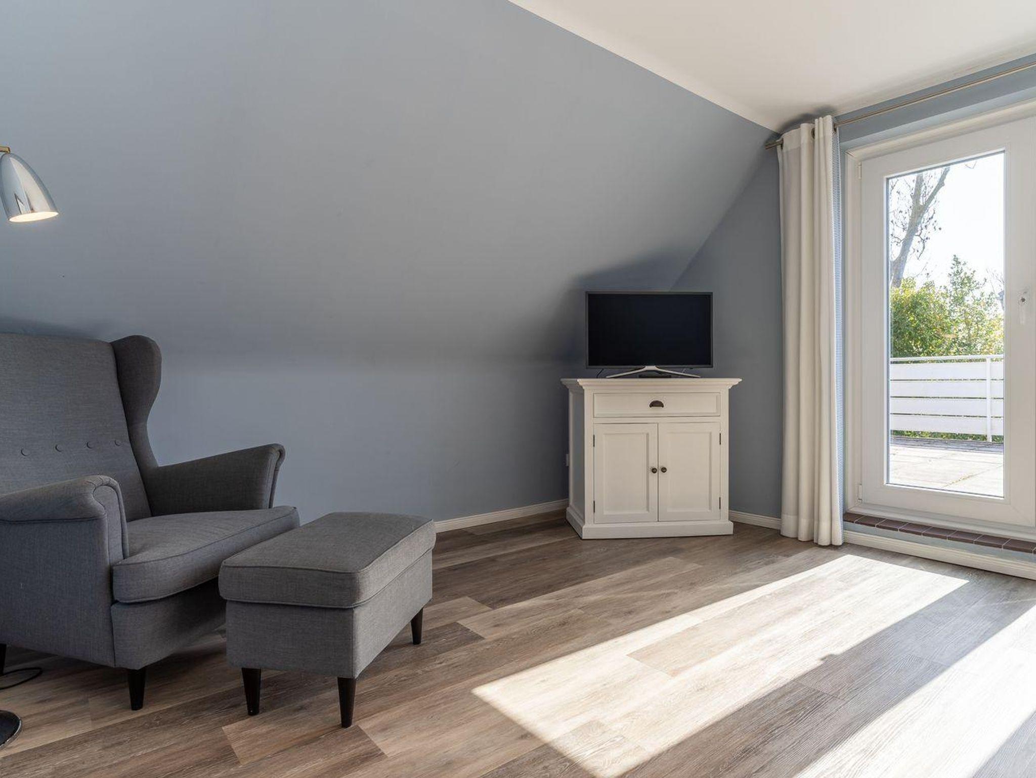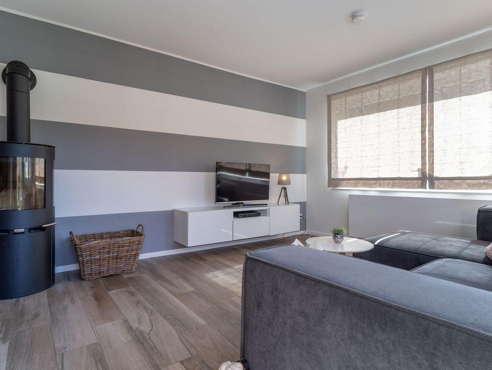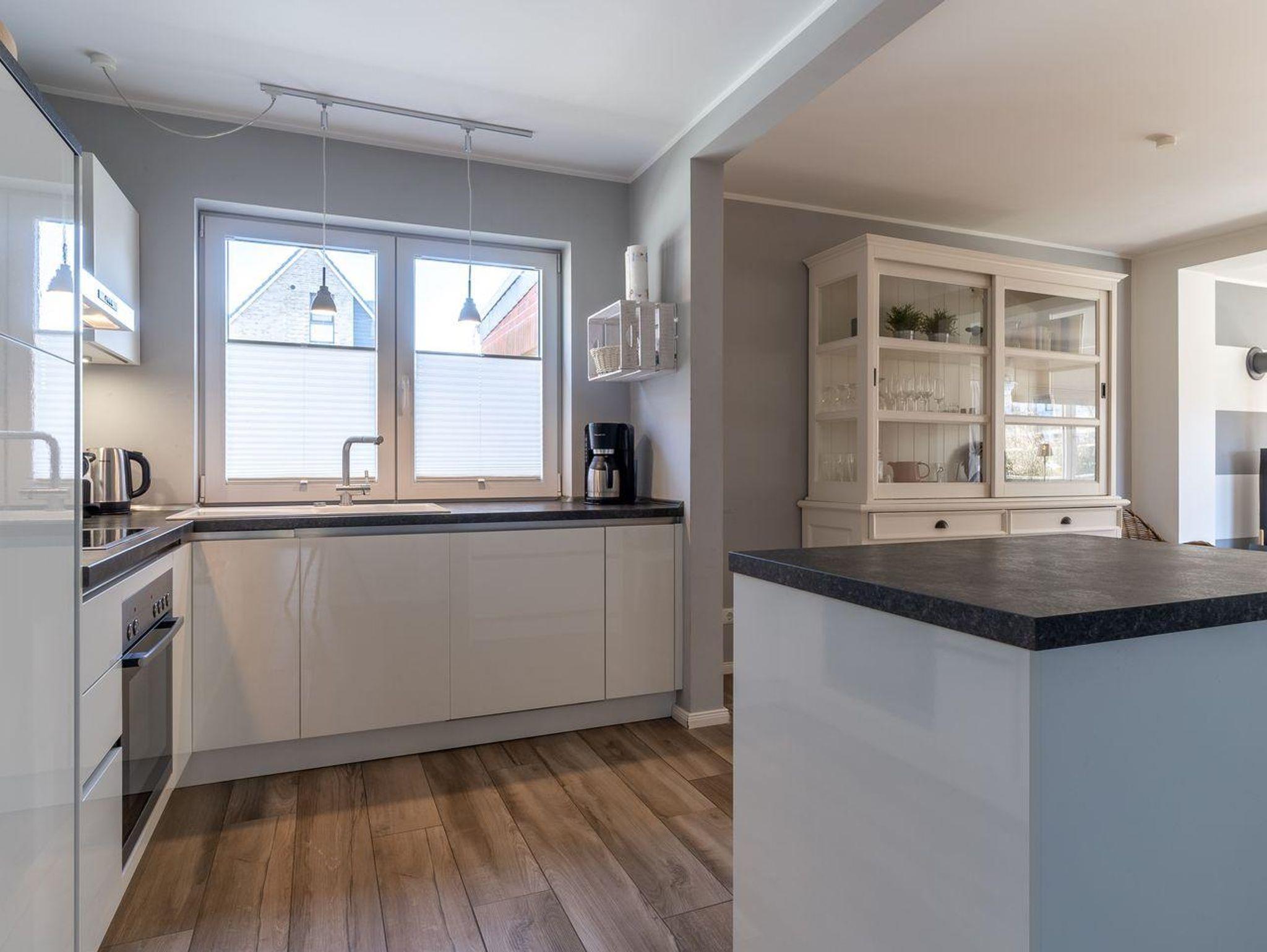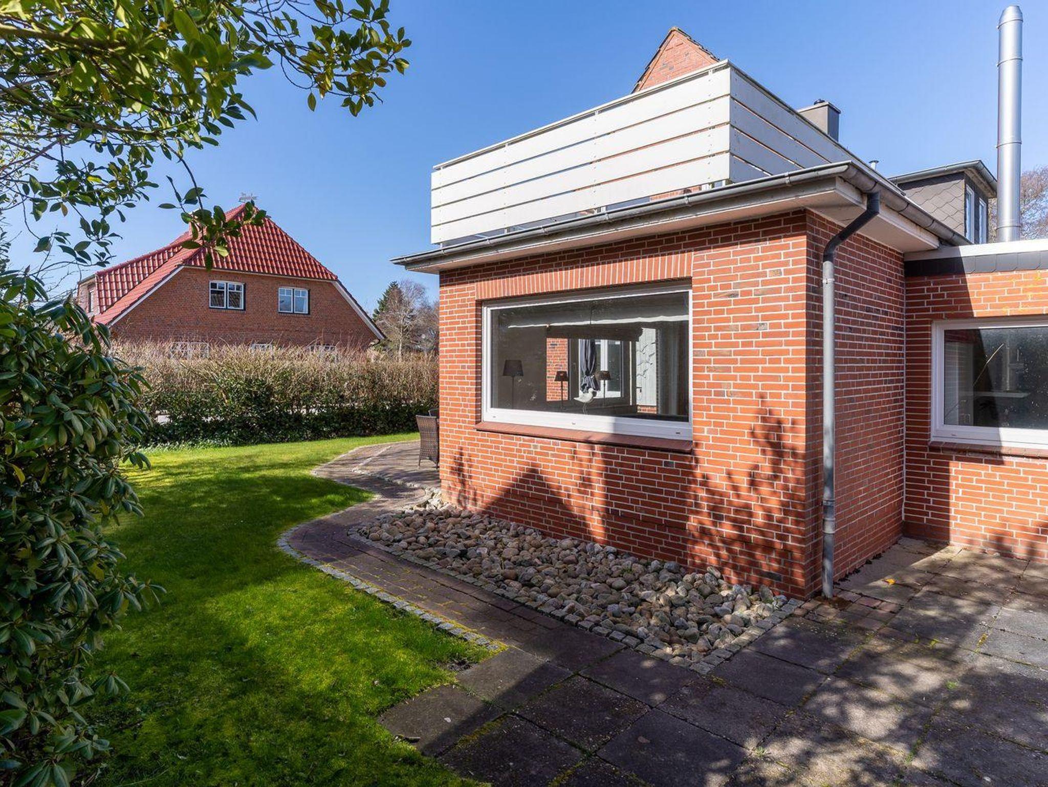 Modernes Strandhaus in St. Peter-Ording mit Kamin und sonniger Dachterrasse, ideal für entspannte Urlaubstage.
