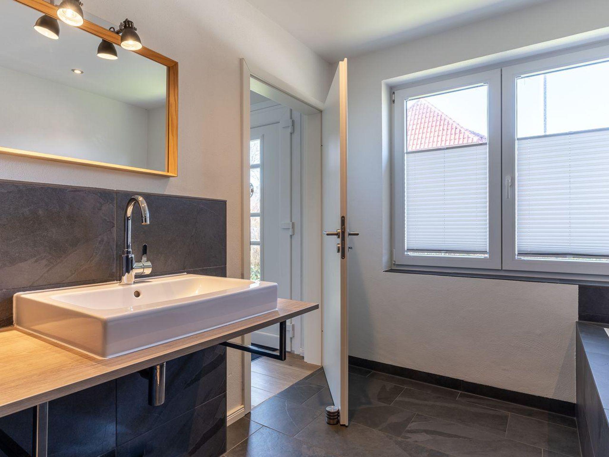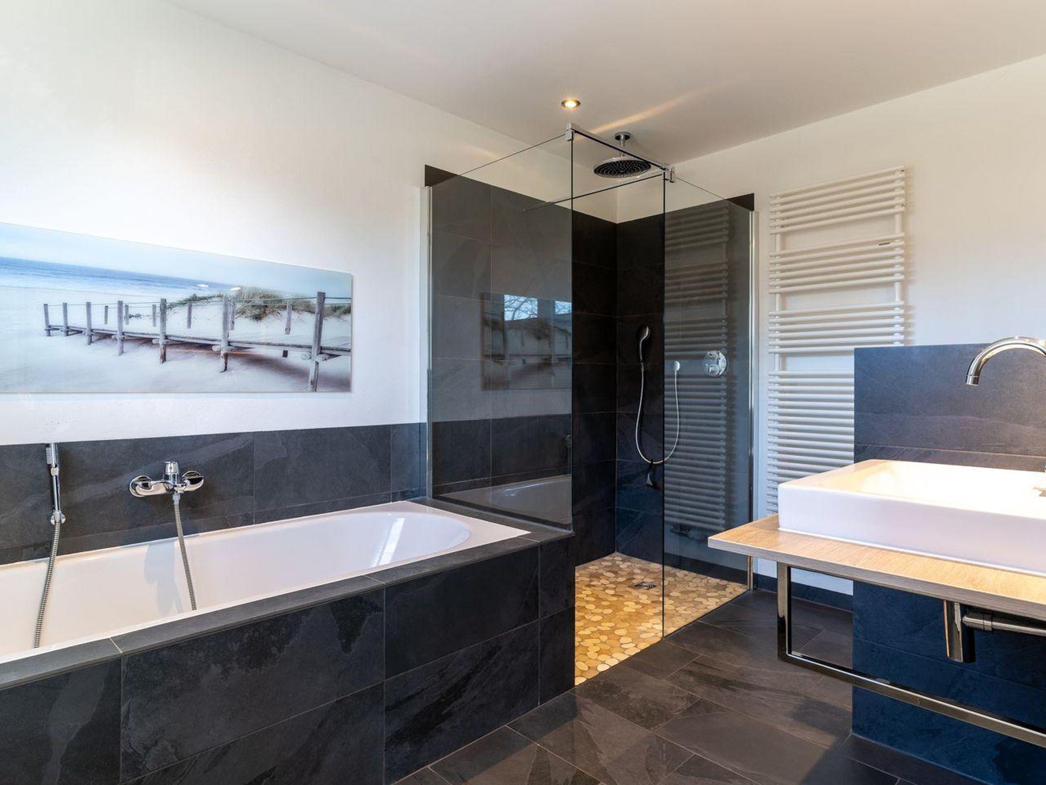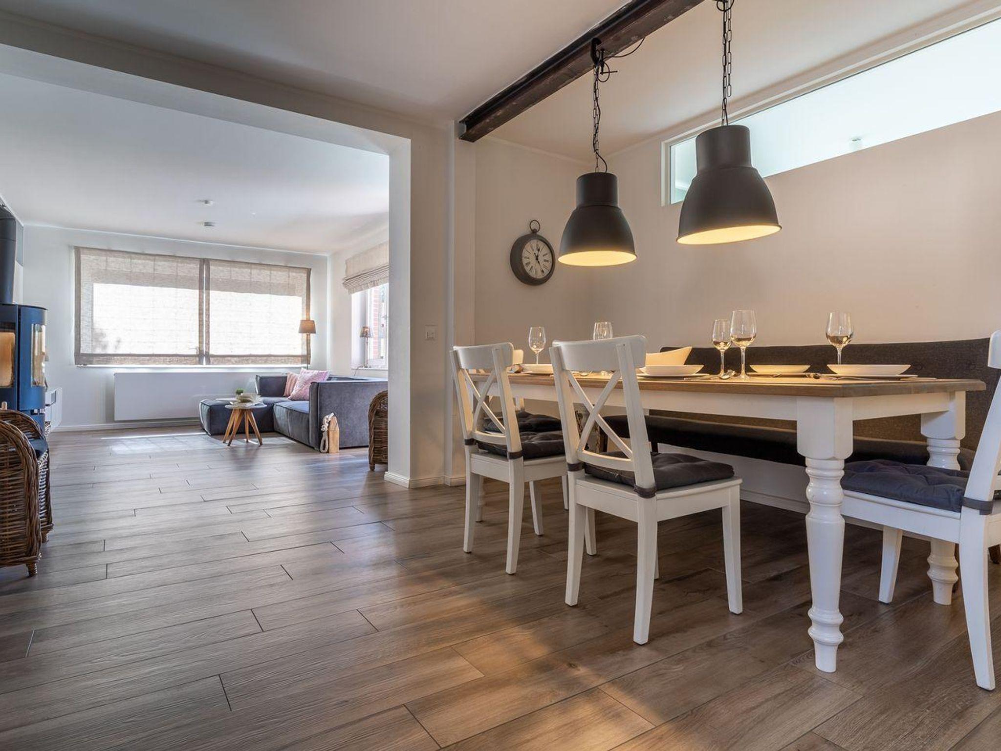 Dieses wunderschöne Ferienhaus verfügt über ca. 125 m² Wohnfläche und bietet großzügigen Platz für 7 Personen. Im Erdgeschoss befindet sich der lichtdurchflutete Wohnraum mit TV, Kamin, einer offenen Wohnküche sowie einem stilvollen Essbereich. Die Wohnräume sind mit exklusiven Möbeln ausgestattet. Die Küche verfügt über hochwertige Elektrogeräte und genügend Platz zum gemeinsamen Kochen. An den Wohnbereich schließen sich ein Flur, sowie ein großzügiger Hauswirtschaftsraum. Ebenso ist im Erdgeschoss ein geräumiges Doppelschlafzimmer und ein Vollbad mit Badewanne und Dusche. Das gesamte Erdgeschoss verfügt über geschmackvolle Fußbodenfliesen und tollen Wandfarben.
