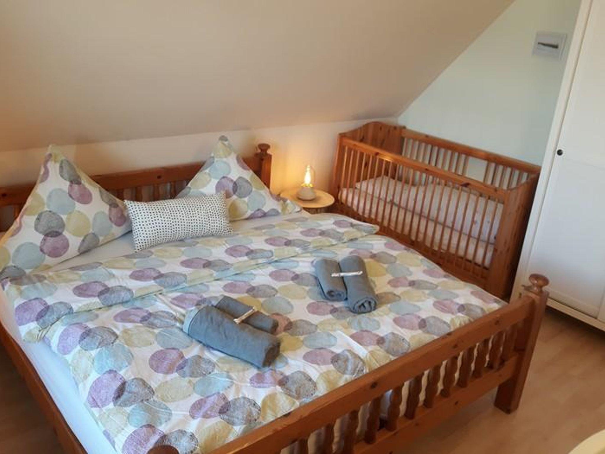 • 1 Schlafzimmer mit Doppelbett und Kinderbettchen