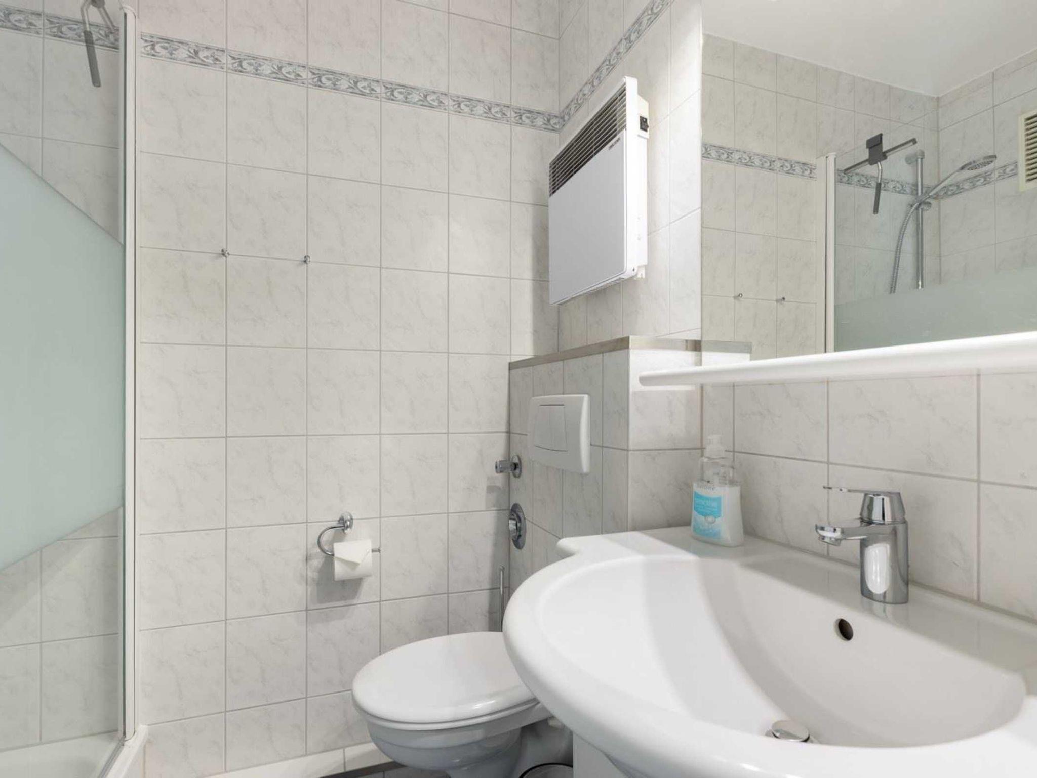 Badezimmer (Duschbad) mit Dusche und WC. Kein Föhn.