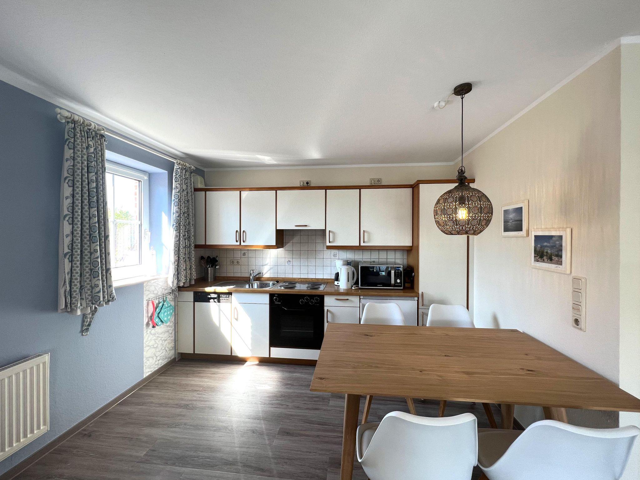 Die freundlich eingerichtete 3-Zimmer-Ferienwohnung Theo-Luise Nr. 03 liegt im 1. OG und im DG. Die Maisonette-Wohnung ist gut ausgestattet. Die offene Küchenzeile ist u.a. mit einem 4-Plattenherd, Backofen und Spülmaschine ausgerüstet. Ausreichend Schlafplatz finden Sie in den 2 Schlafzimmern, eines mit Doppelbett, das andere mit 2 Einzelbetten. Auch auf dem Süd-West-Balkon können Sie die gute Nordseeluft genießen.