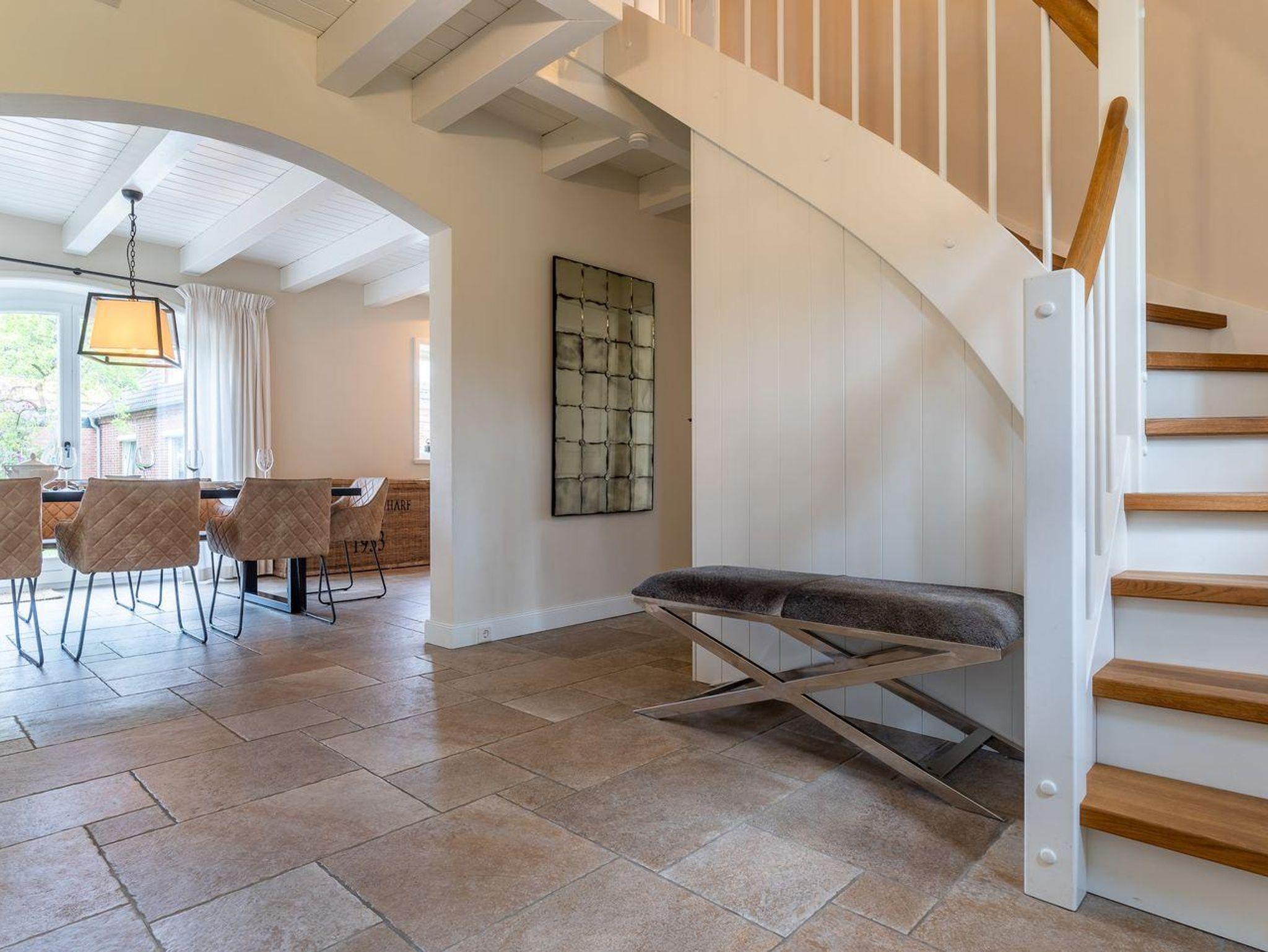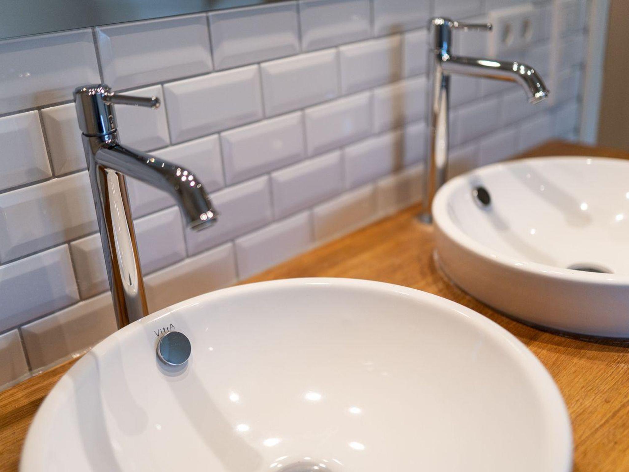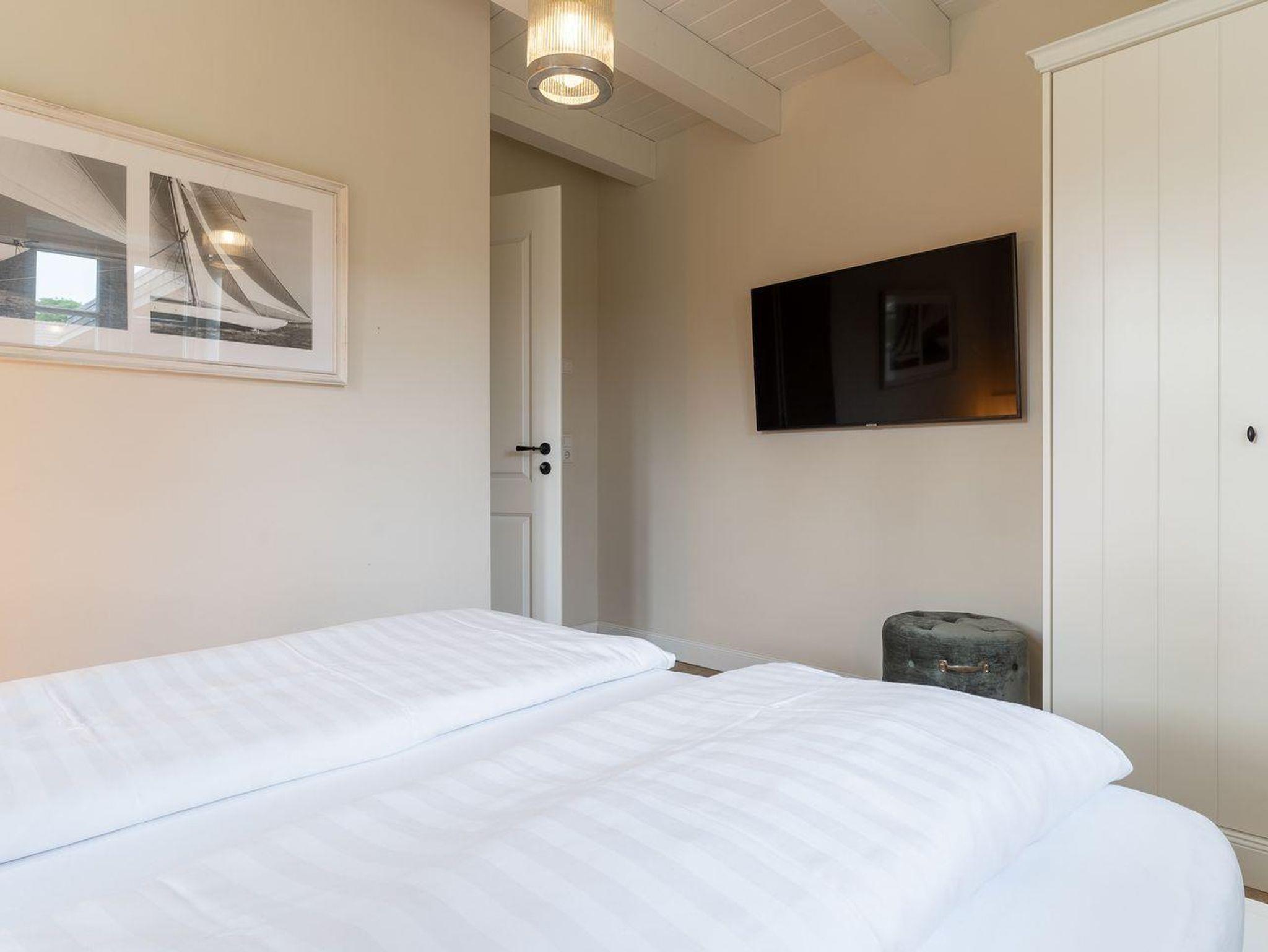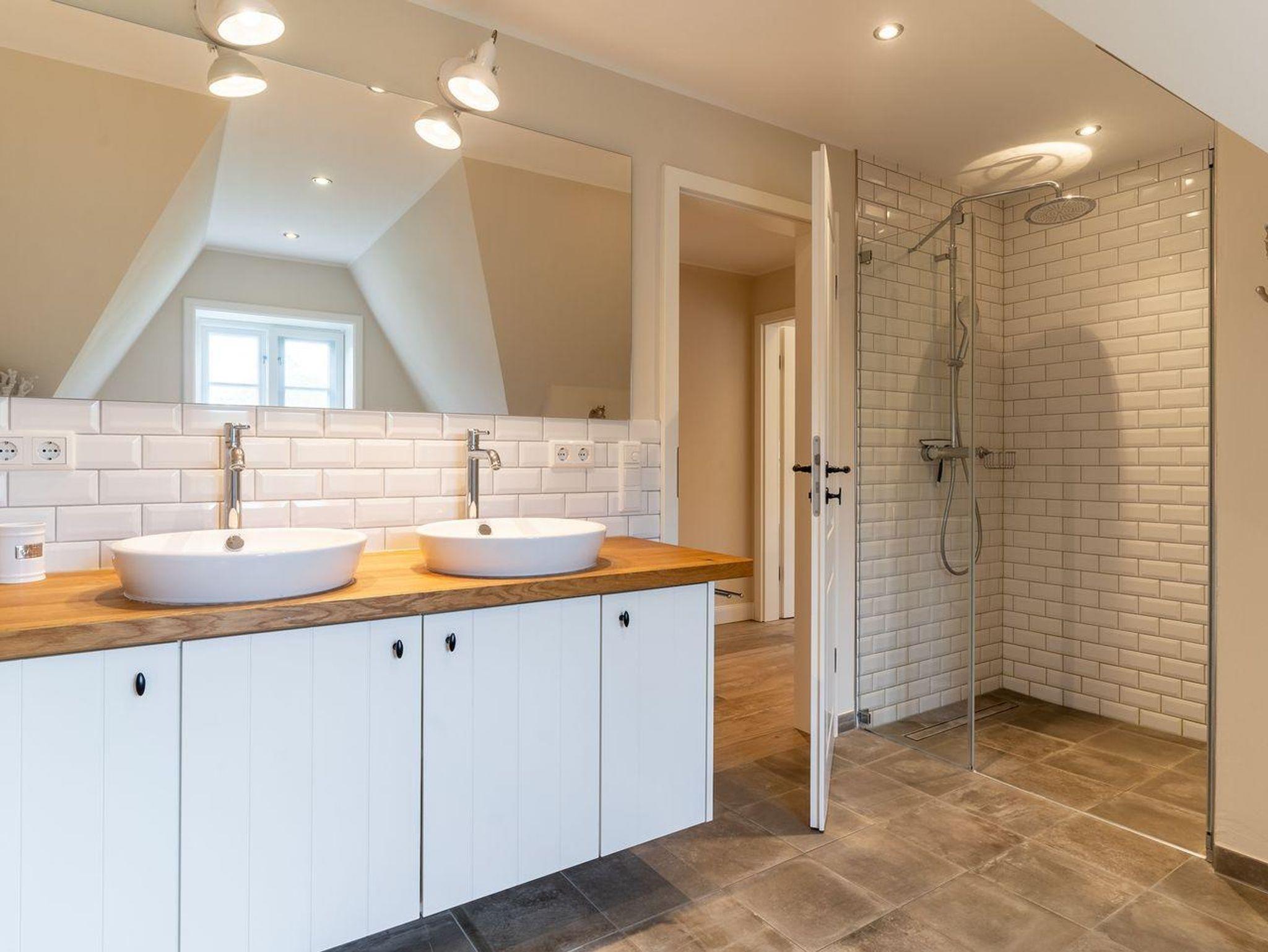 Eine Holztreppe führt Sie ins Obergeschoss, wo zwei weitere stilvoll eingerichtete Schlafzimmer mit komfortablen Doppelbetten (1x 200 x 210 cm + TV und 1x 160 x 200 cm) und ein weiteres Schlafzimmer mit einem Einzelbett (1x 100 x 200 cm) auf Sie warten. Ein geräumiges Badezimmer mit Dusche und Badewanne sorgt für zusätzlichen Komfort.