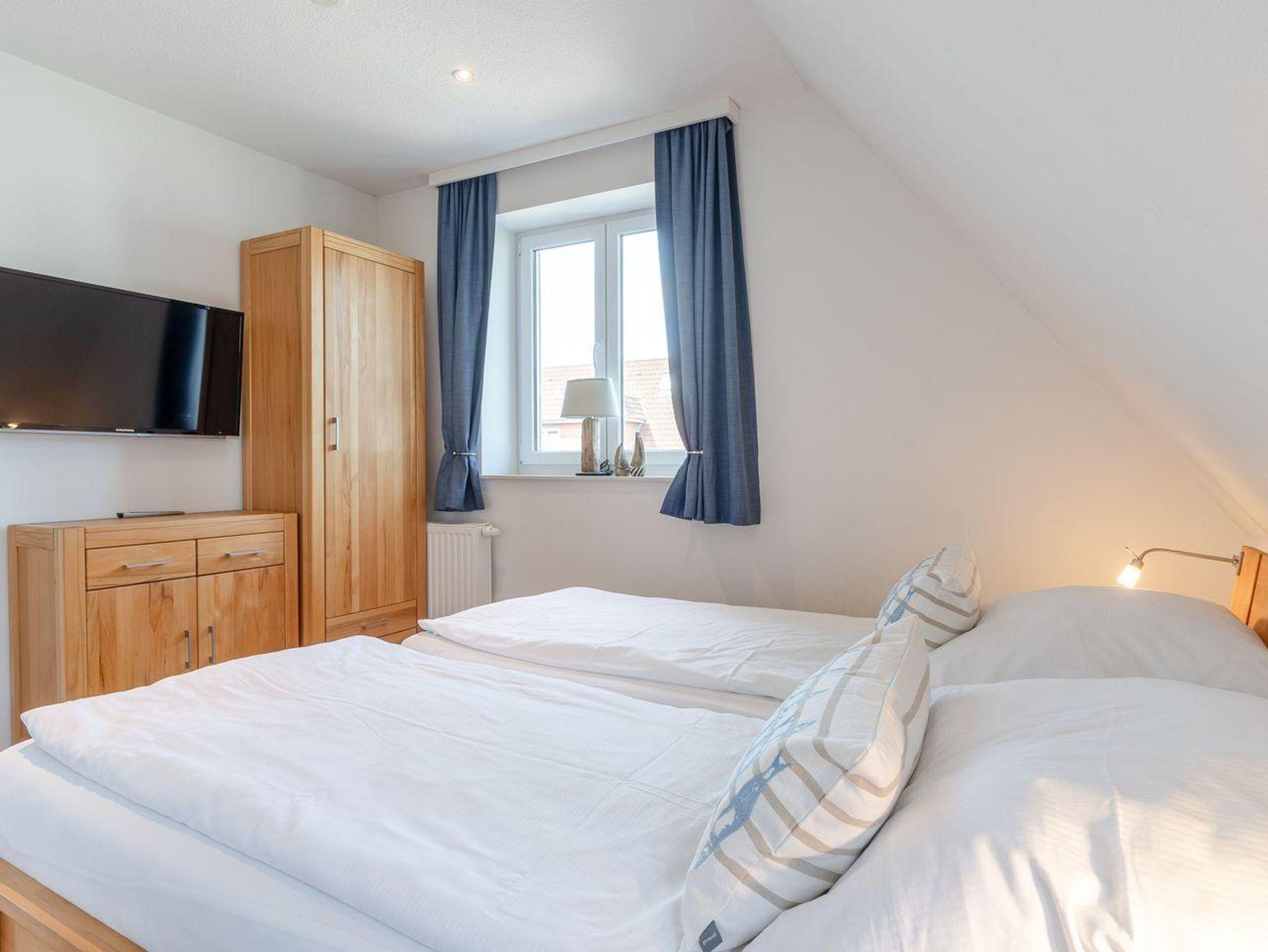 Im ersten Obergeschoss erwarten Sie zwei gemütliche Schlafzimmer mit Verdunklungsvorhängen sowie ein geräumiges Badezimmer mit Dusche und Fußbodenheizung für höchsten Komfort. Im zweiten Obergeschoss finden Sie einen weiteren Raum, der ideal als zusätzliches Schlafzimmer genutzt werden kann. Ausgestattet ist das Haus mit einem Smart-TV und einem weiteren Fernseher im großen Schlafzimmer sowie WLAN und Insektenschutzgittern für ungestörte Nächte.