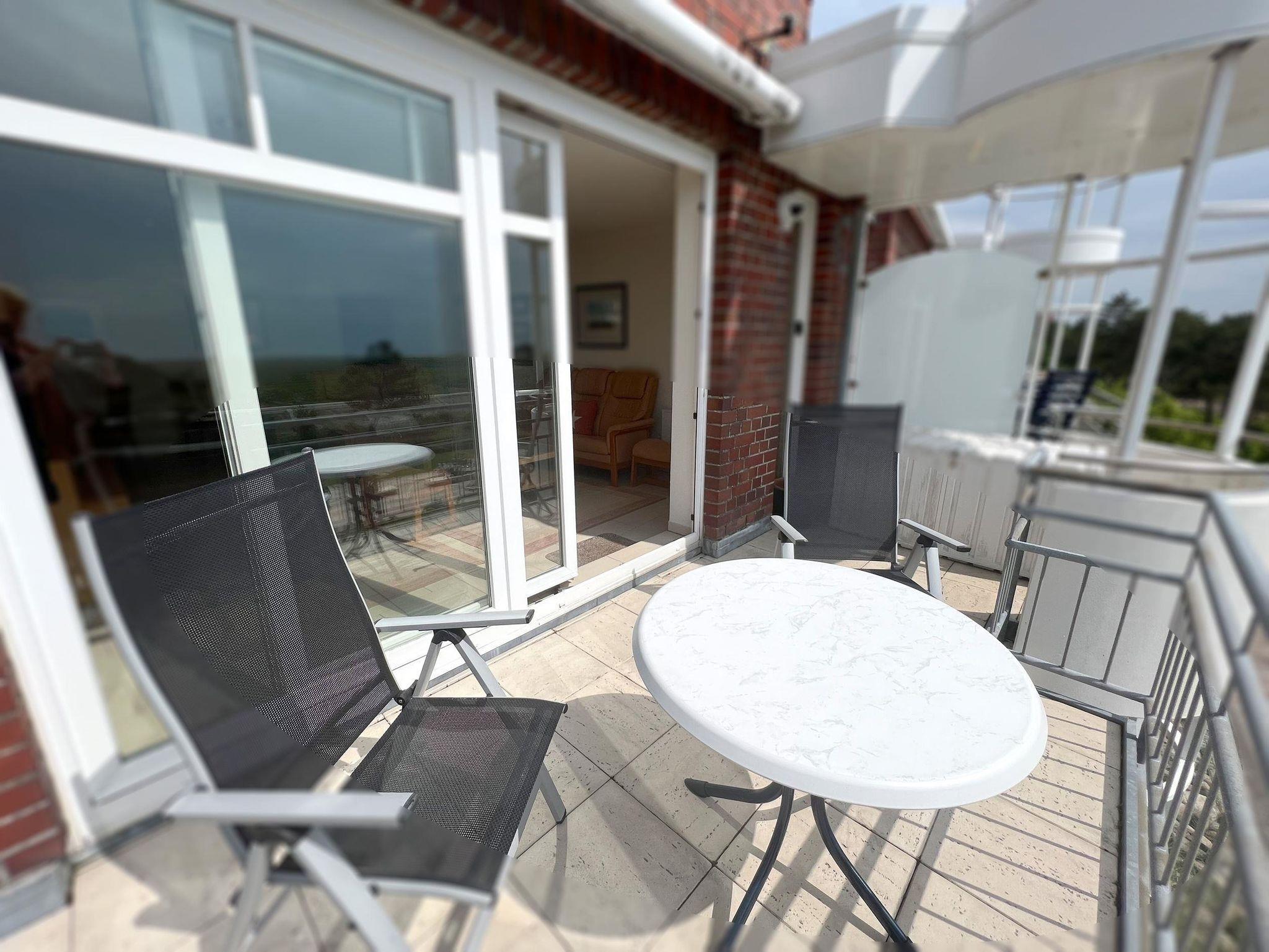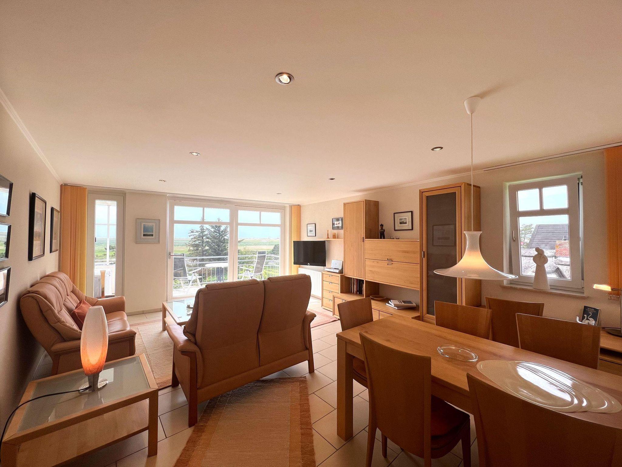 Moderne Ferienwohnung direkt an der Strandpromenade von St. Peter-Ording mit Meerblick und Balkon.