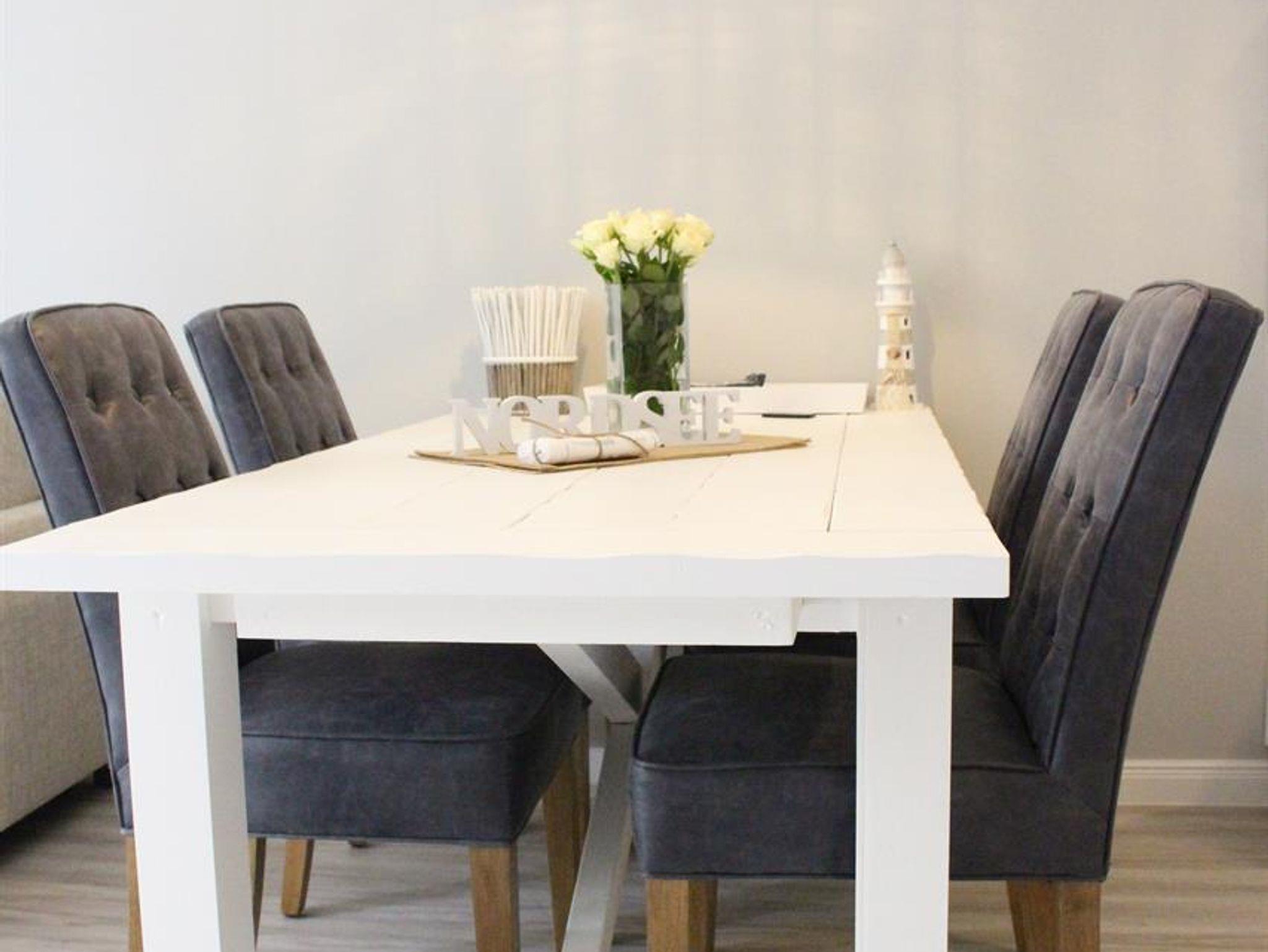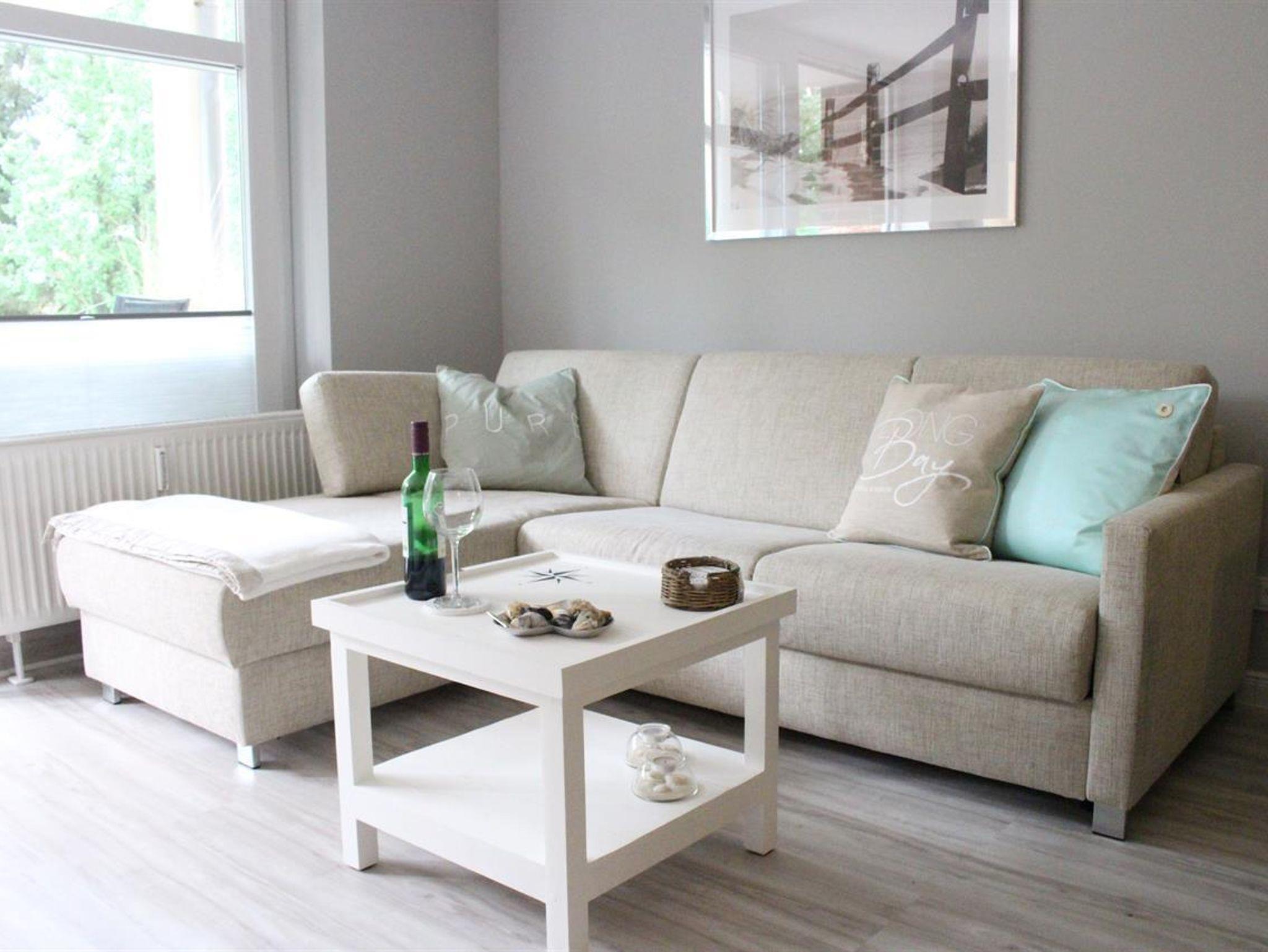 Im Wohnzimmer finden sie eine bequeme Schlafcouch (140 x 200 cm), einen Couchtisch, eine Stehlampe aus 'drift wood', eine große Deckenlampe, ein Sideboard und Regal von ocean house, einen großen Esstisch mit 4 Stühlen von Riviera Maison, Plissee's, ein Kabel-TV mit Flachbildschirm, ein Blu-ray/DVD-Player, eine DVD-Sammlung und ein Radio mit CD-Player (Sie können natürlich Ihre persönliche Musik via Bluetooth ab spielen)