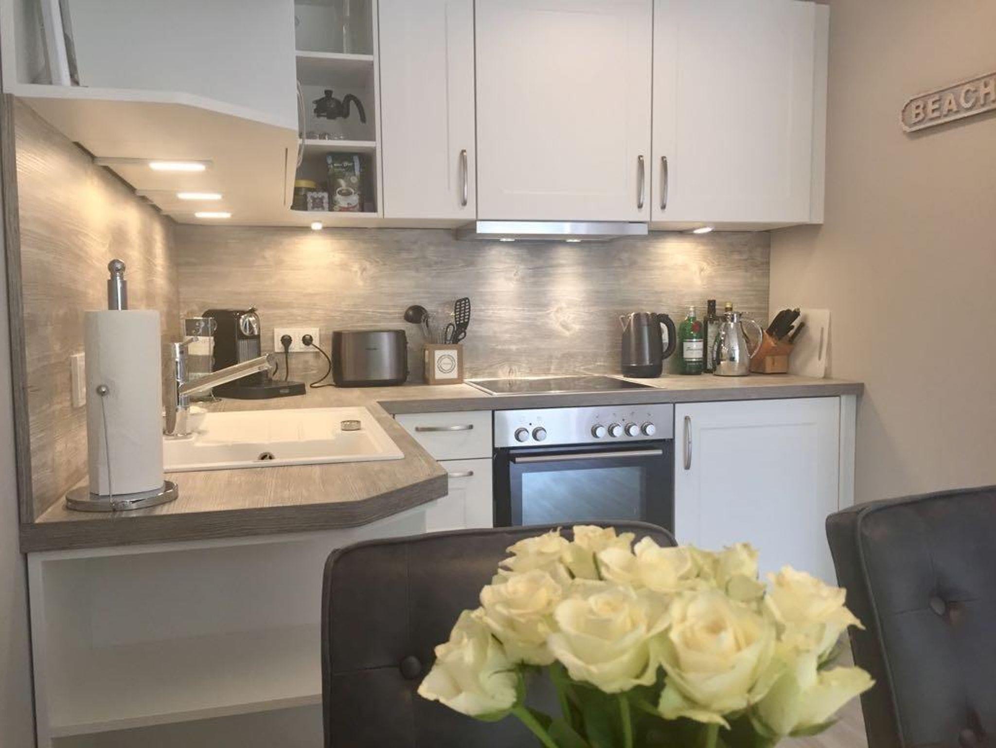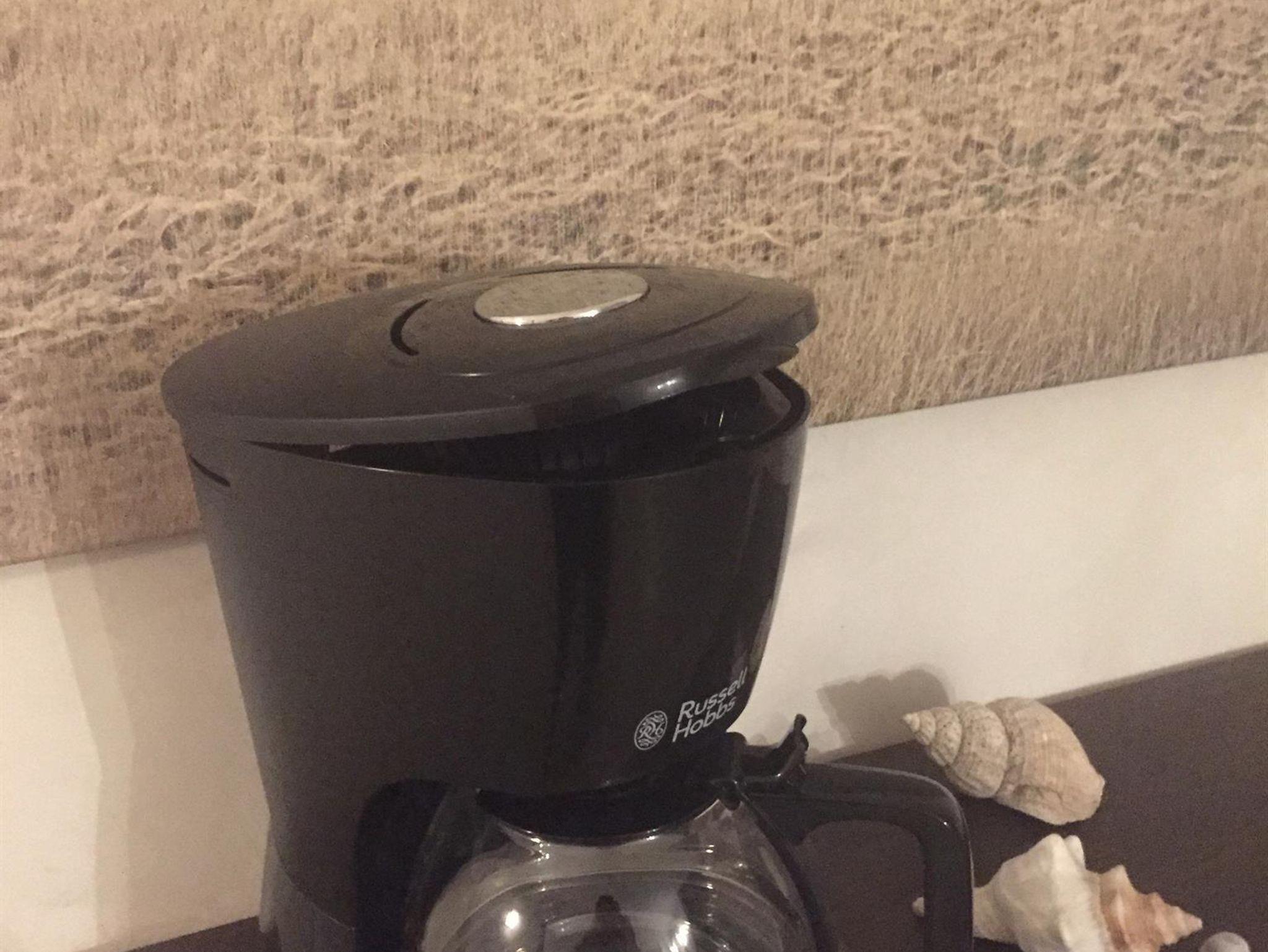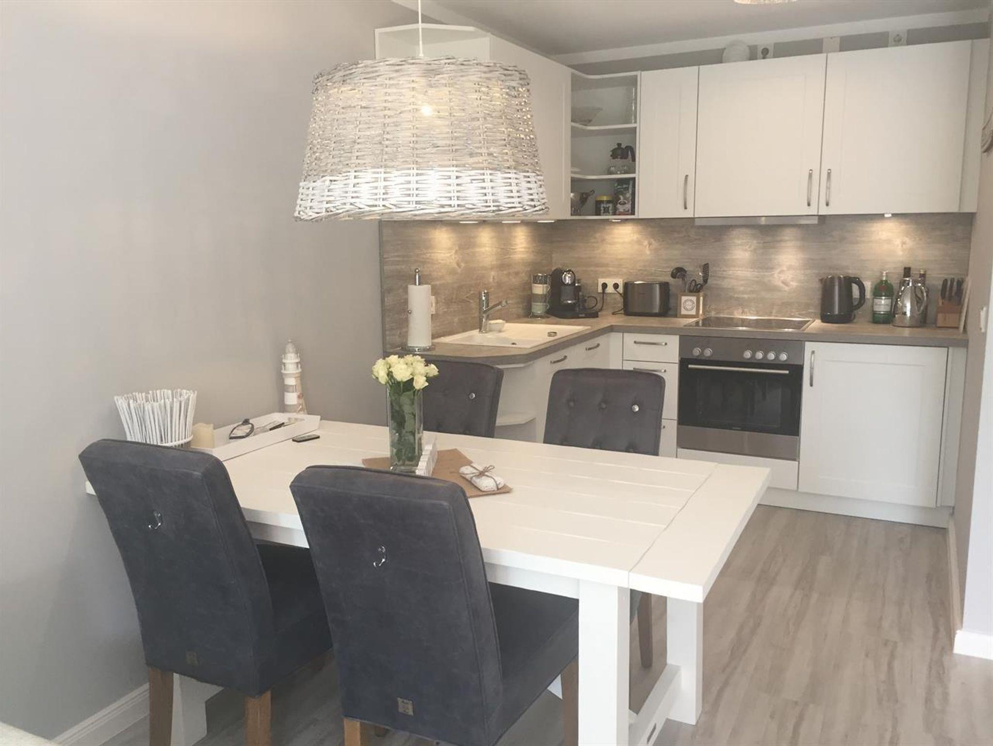 Es gibt eine neue, moderne Einbauküche ( Baujahr 2017),der Herd hat ein 4-Platten-Ceranfeld, eine extra leise Dunstabzugshaube, eine sehr leise Geschirrspülmaschine, einen Kühlschrank mit Tiefkühlfach, eine Nespresso Maschine, -dem Trend folgend und der Umwelt zuliebe kann man natürlich auch frischen Kaffee filtern mit dem vorhandenen Melitta-Filter 1X4,oder eine normale Kaffemaschine mit Filtern 1X4, einen Wasserkocher, einen Toaster, Geschirr, Besteck, Gläser für jeden Anlass, Haushalts- und Kochutensilien, Kochtöpfe, Pfannen , einen Messerblock uvm.