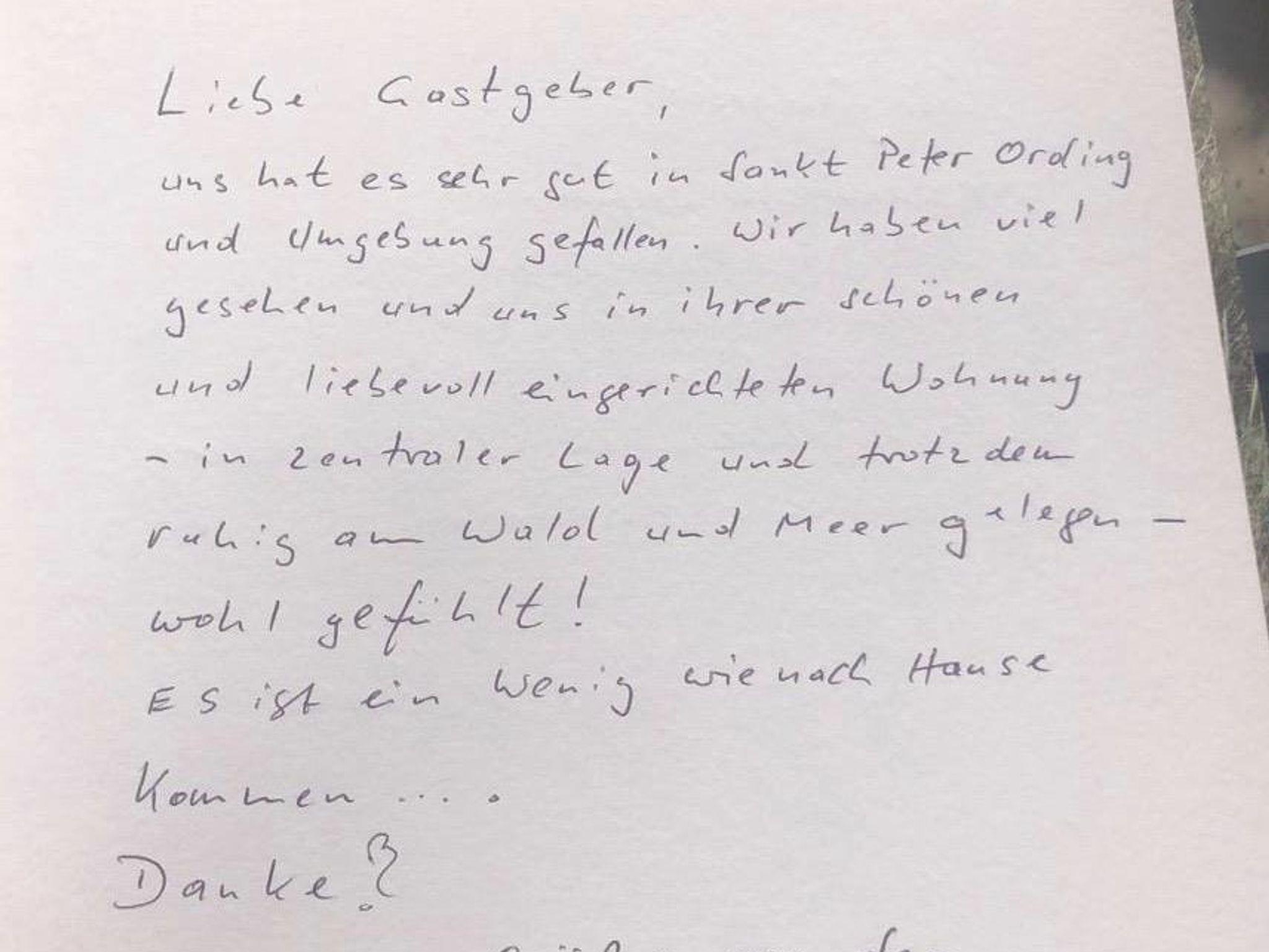 Vielen Dank, dass wir Ihre Ferienwohnung mieten durften. Wir waren begeistert !!!