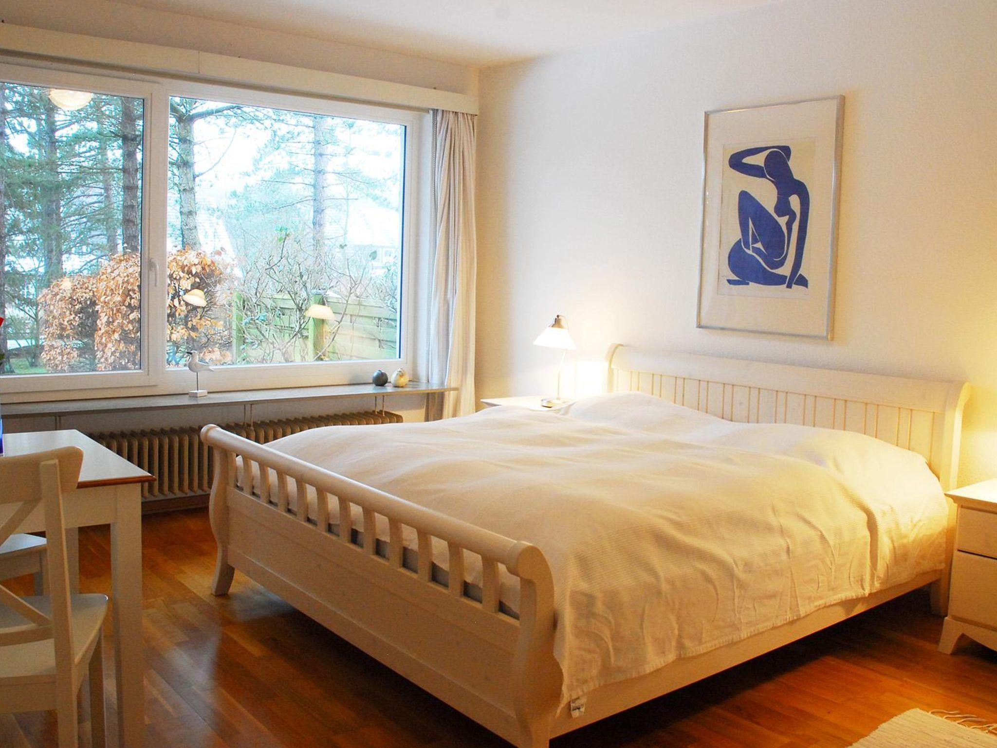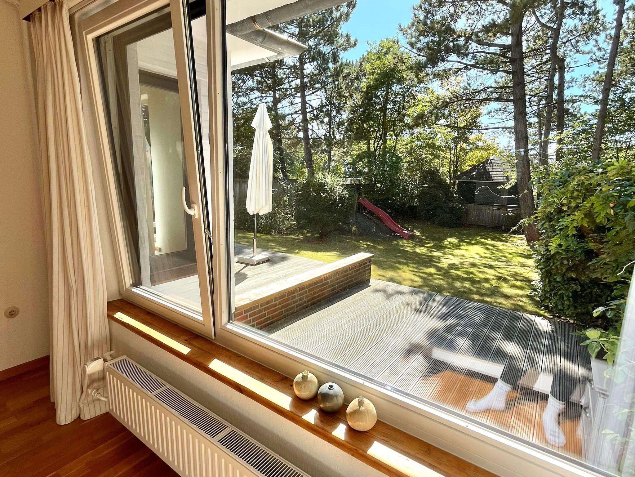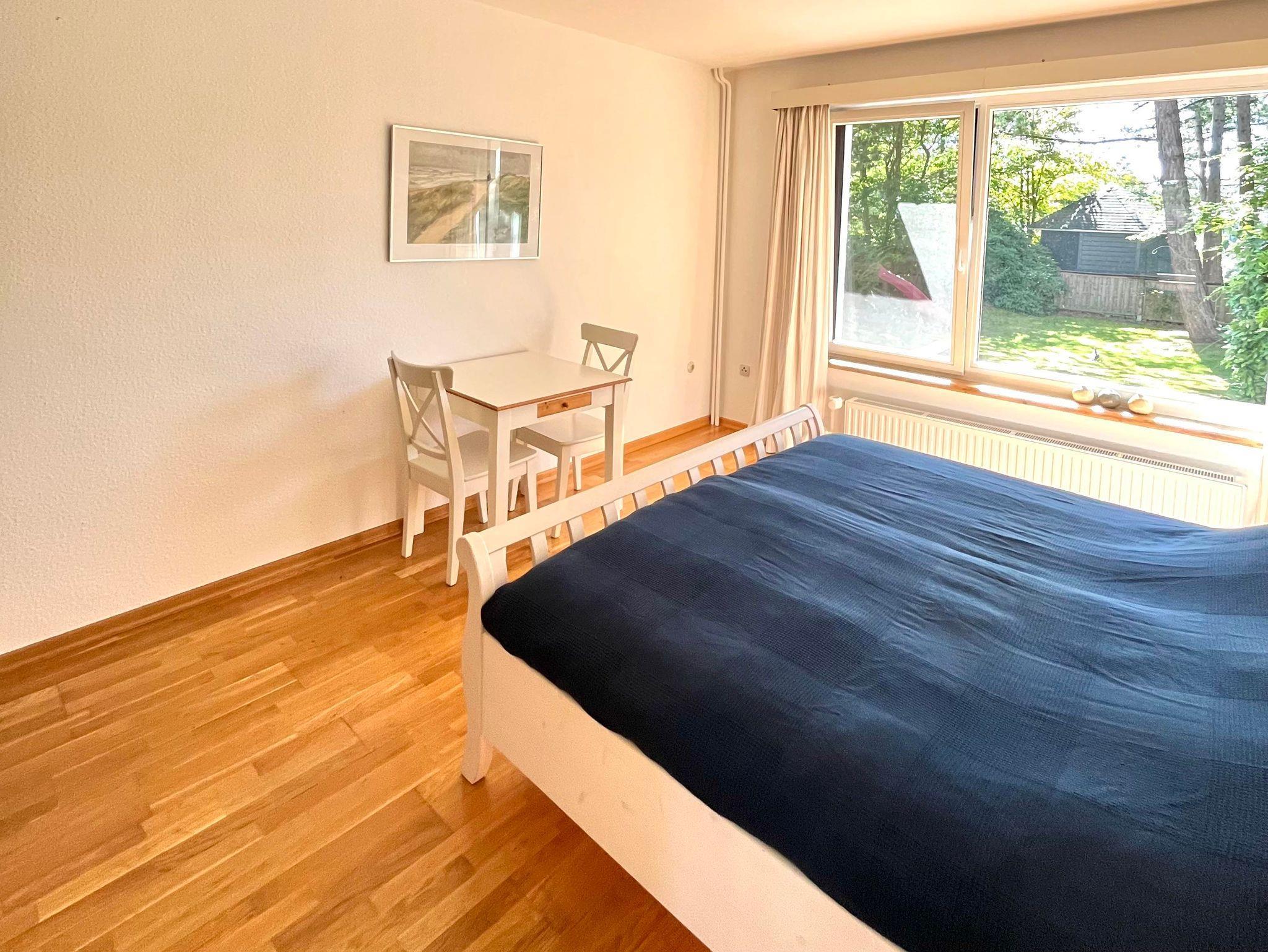 Die Whg. im EG - mit einem großen Wohnzimmer (inklusive Schlafsofa), zwei Schlafzimmern, Küche und Badezimmer - ist über 90 m2 groß. Zur Wohnung gehört eine große Terasse und es kann ein Stück des davor liegenden Gartens genutzt werden. Die Wohnung ist komfortabel ausgestattet: Einbauküche mit Backofen, extra Gefrierschrank, Spülmaschine, Waschmaschine, geräumiges Wannenbad, Föhn und Kosmetikspiegel; Kabel-TV, WLAN-Internetzugang, DVD-Player, Radio mit CD-Player, Terassenmöbel und Strankorb. Kinderbett und Hochstuhl werden auf Wunsch bereit gestellt.