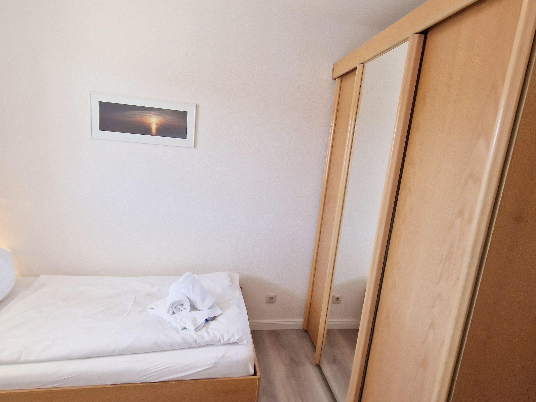 Schlafzimmer2 Einzelbetten, Nachttisch, Kleiderschrank, Spiegel