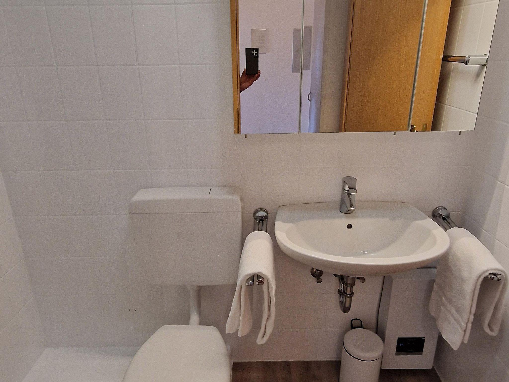 BadDusche, Waschbecken, WC, Duschkabine, Spiegelschrank