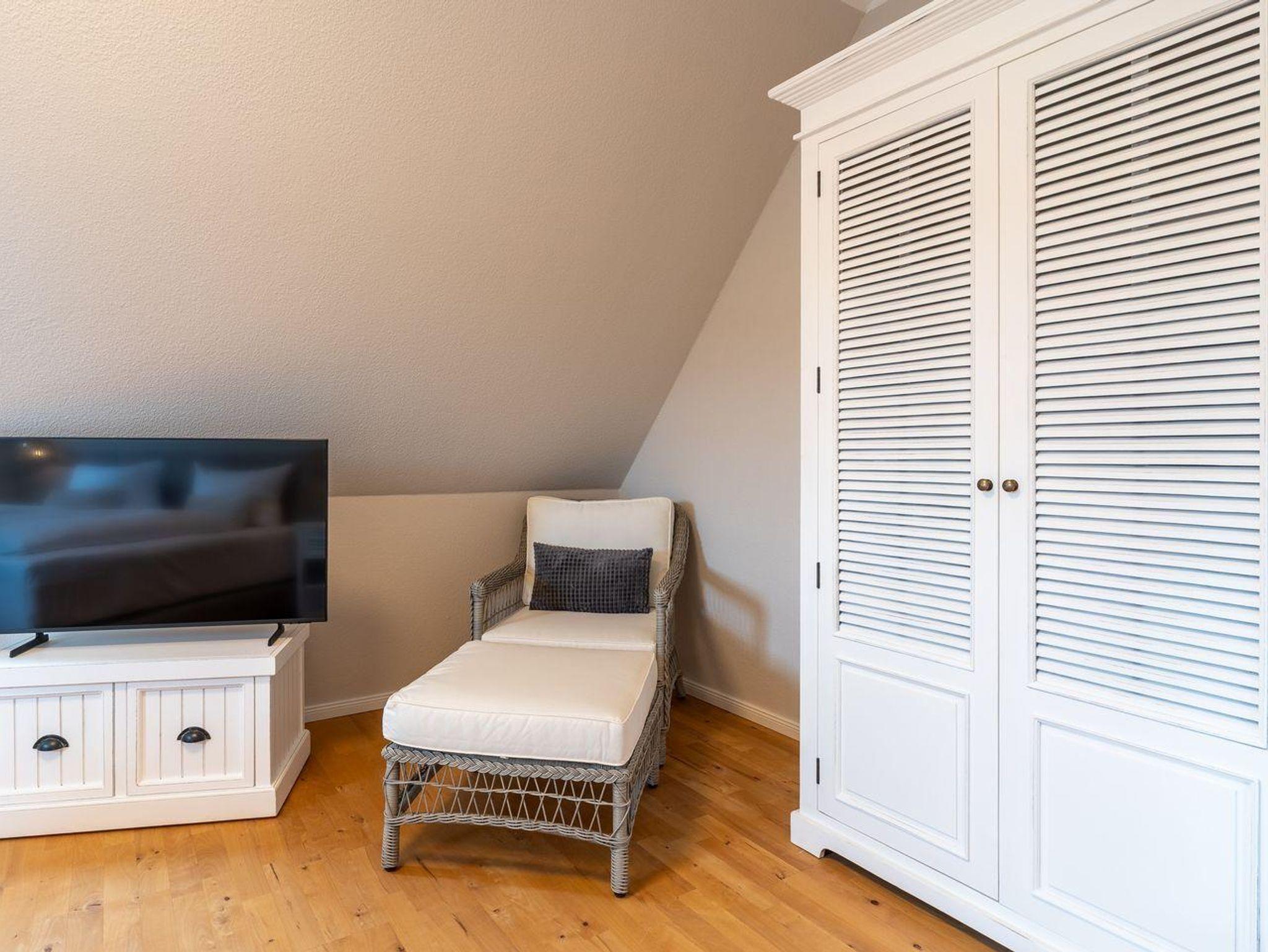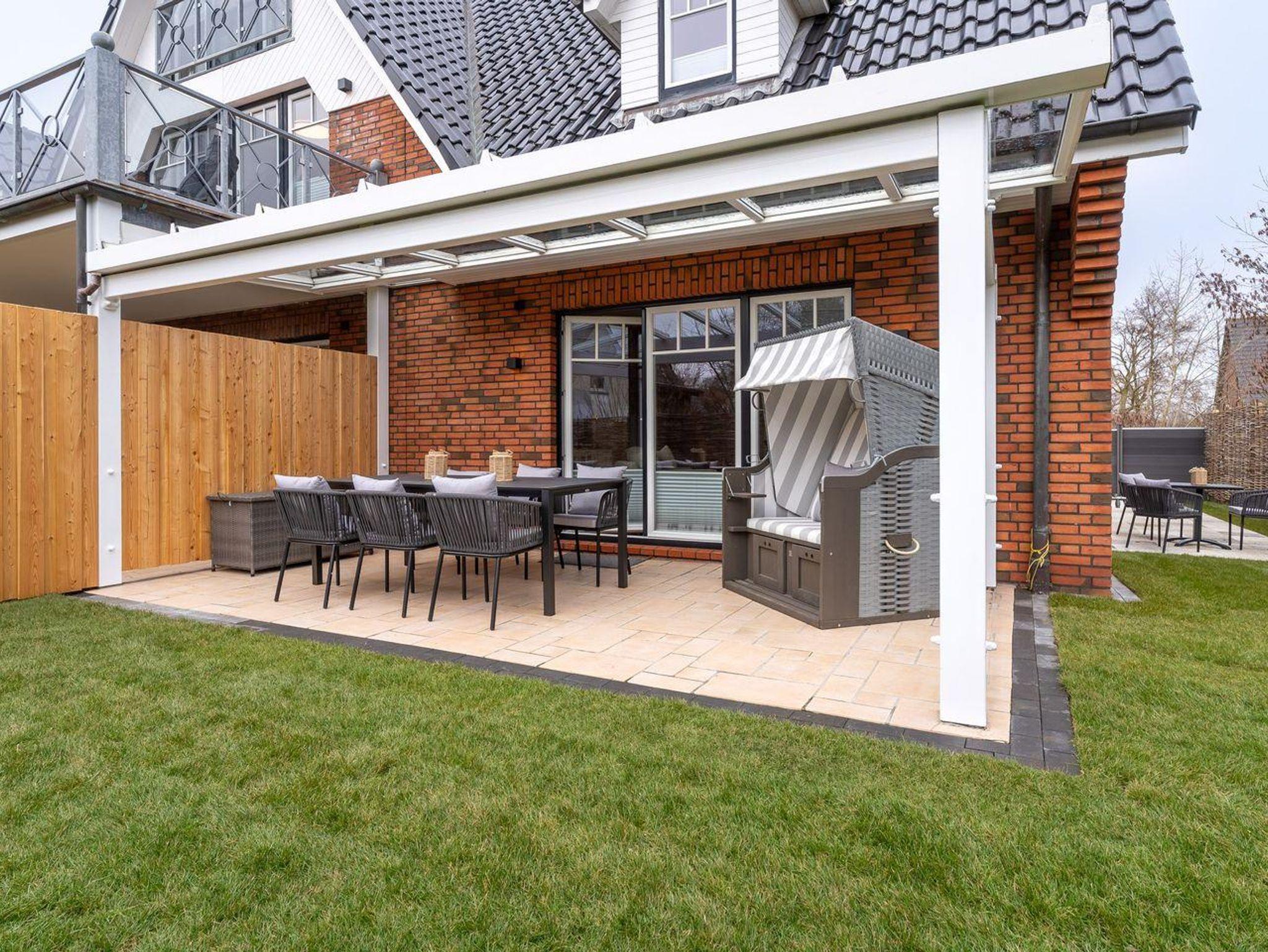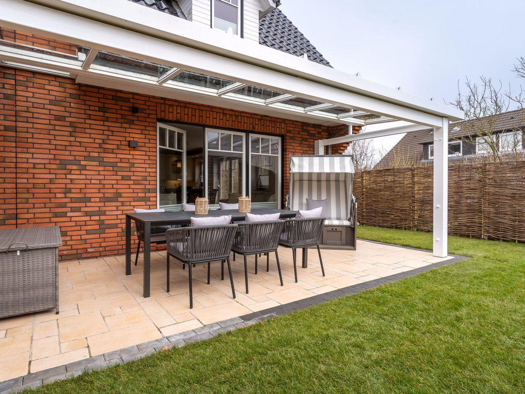 Der Außenbereich der Unterkunft ist besonders hervorzuheben. Die überdachte Terrasse lädt dazu ein, auch bei weniger gutem Wetter die frische Nordseeluft zu genießen. Gardenmöbel sind ebenfalls vorhanden, sodass Sie die ruhigen Stunden in der Natur verbringen können. Ein Strandkorb bietet Ihnen den perfekten Ort, um die Sonne zu genießen.