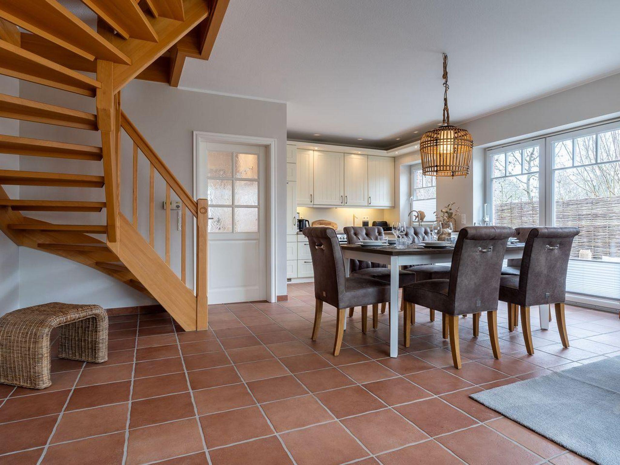 Die Unterkunft verfügt über insgesamt 4 Zimmer, darunter 3 Schlafzimmer, die viel Platz und Privatsphäre bieten. Im Parterre genießen Sie eine offene Küche, die mit modernen Annehmlichkeiten ausgestattet ist, darunter ein Cerankochfeld, Backofen, Kühlschrank mit Gefrierfach und Geschirrspüler. Die Küchenutensilien sind vollständig vorhanden, sodass Sie Ihre Lieblingsgerichte zubereiten können. Ein gemütlicher Essbereich verbindet die Küche mit dem Wohnzimmer.
