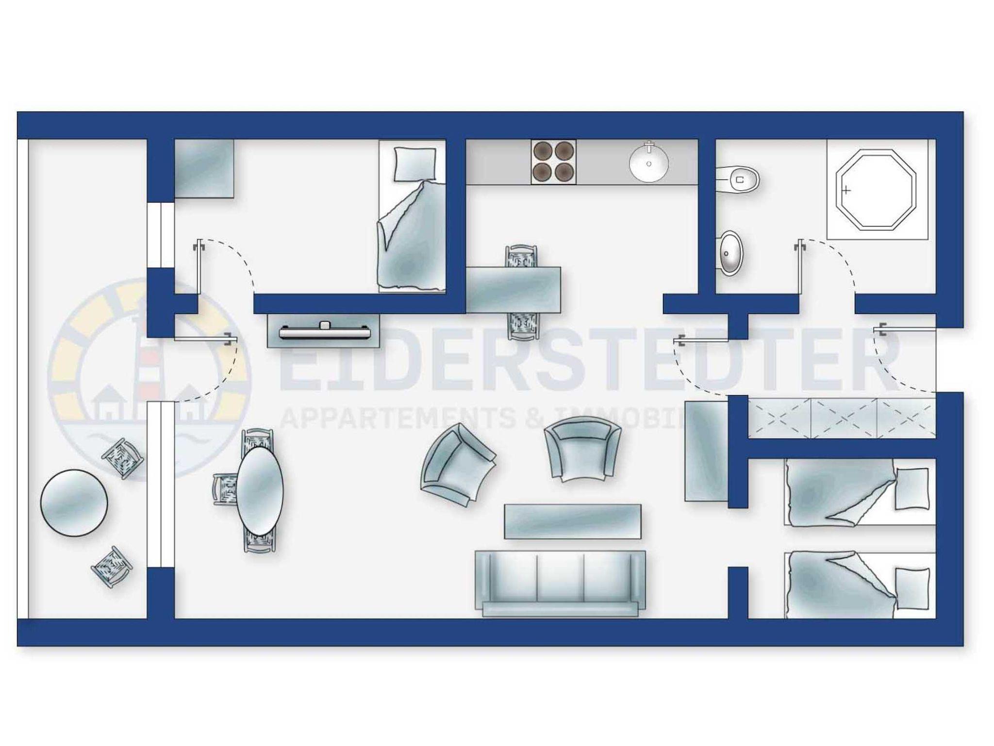 Moderne Ferienwohnung mit Meerblick in St. Peter-Ording, strandnah und elegant eingerichtet für erholsame Tage.