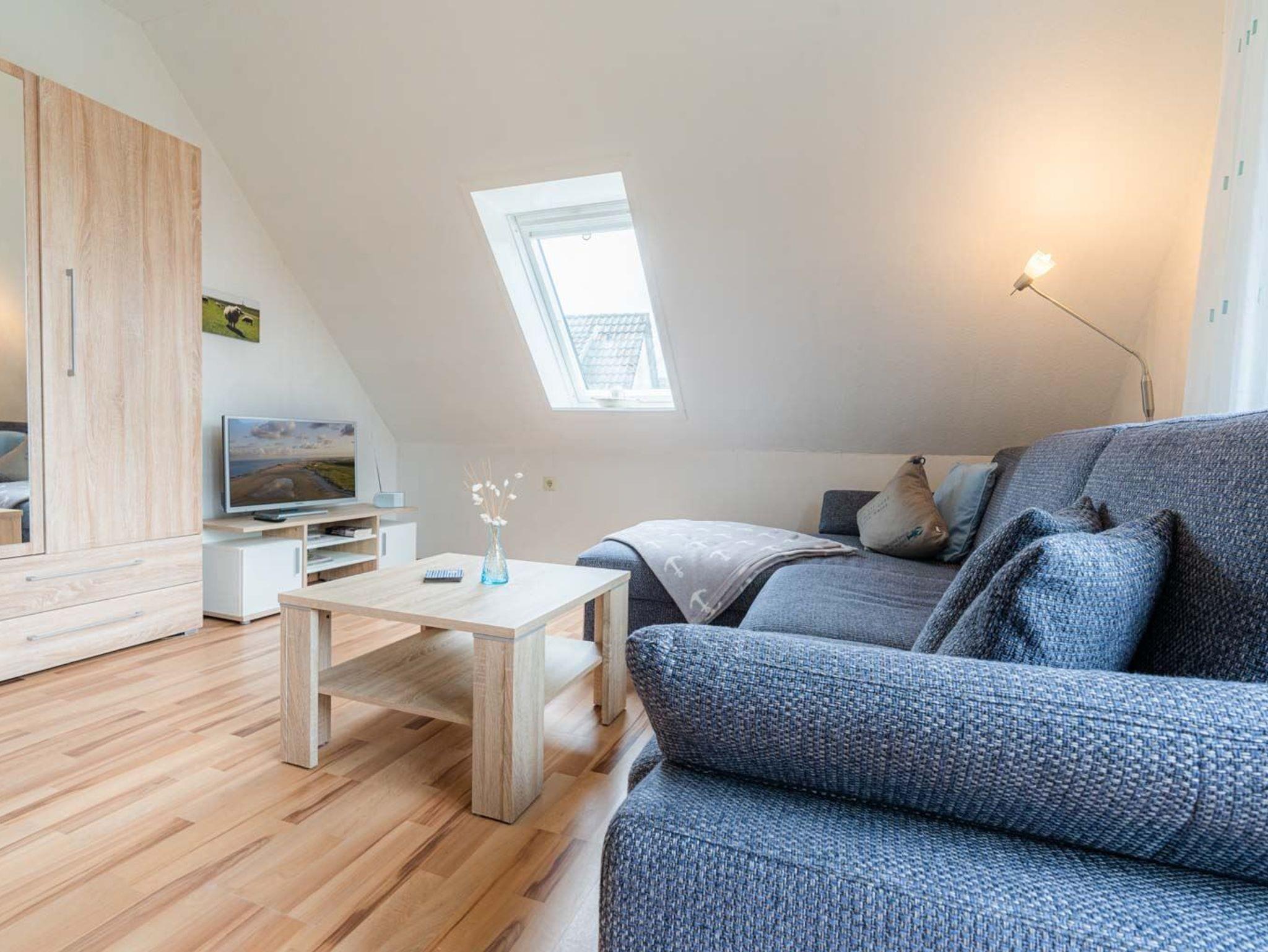 Gemütliche, einfache 2-Zimmer-Ferienwohnung Steuerbordkajüte im Haus Seewolf mit ca. 41 m² auf 1 Ebene (OG) für bis zu 3 Personen. In ruhiger Lage nahe der Einkaufsstraße im Ortsteil Dorf in St. Peter-Ording. Alle Geschäfte, Restaurants und Bäckereien sind fußläufig bequem erreichbar. Zwei Hunde sind nach Anmeldung herzlich willkommen.