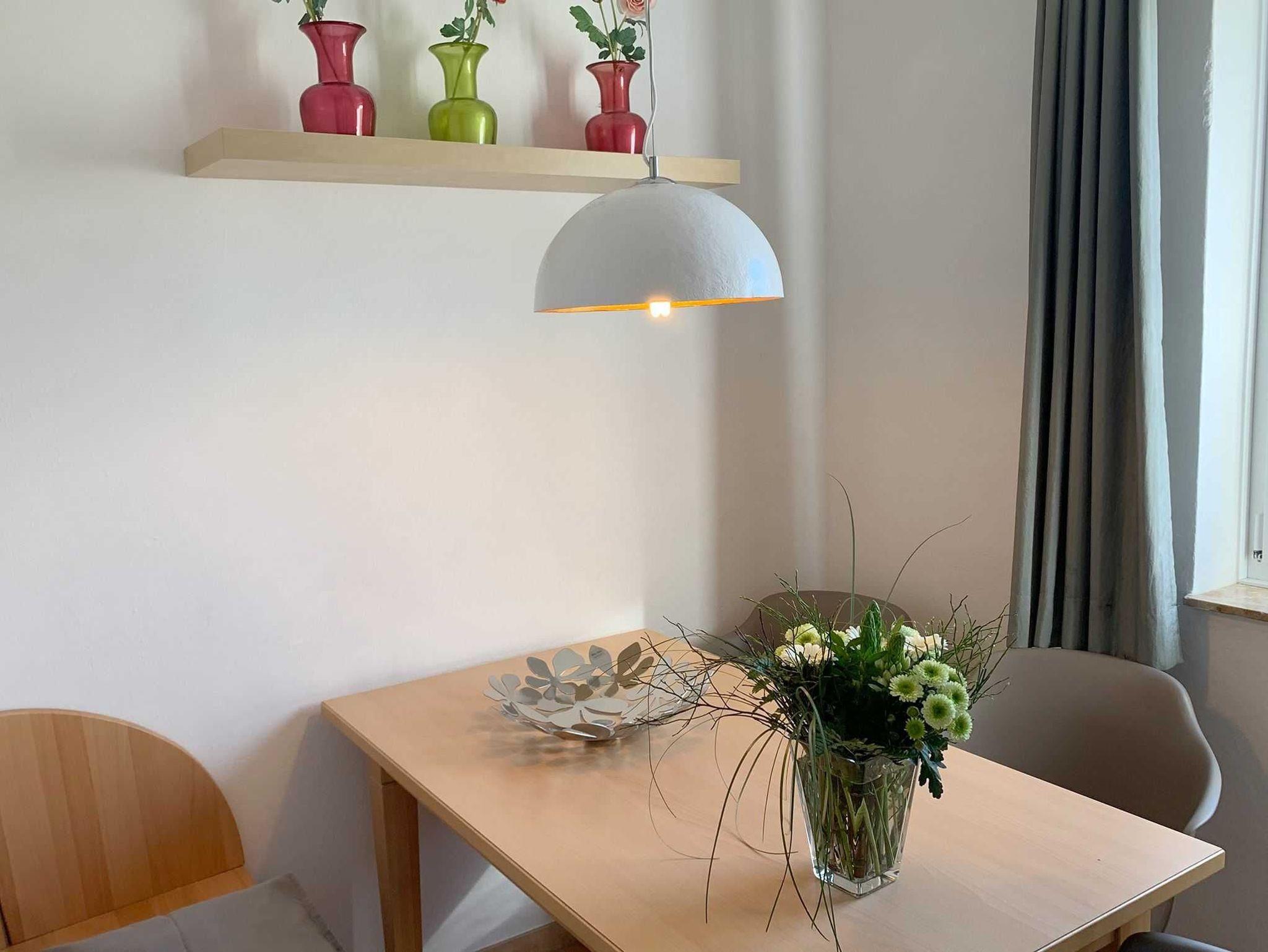 Die Wohnung 10 in der Anlage Luna I liegt im Obergeschoss des Hauses. Sie ist 70qm groß und geeignet für bis zu 5 Personen. Der Eingangsbereich ist mit einer Garderobe ausgestattet. Es gibt zwei Schlafzimmer mit Doppelbetten (180x200cm, getrennte Matratzen). In einem der beiden Schlafzimmer befindet sich zusätzlich ein Einzelbett für eine fünfte Person. Des weiteren sind zwei Duschbäder mit Waschbecken und WC vorhanden. Der Wohn-Essbereich verfügt über eine offene, umfangreich ausgestattete integrierte Einbauküche. Im Wohn-Esszimmer befinden sich ein Esstisch und ein Sitzbereich mit Fernseher. WLAN steht kostenlos zur Verfügung. Die Einrichtung ist modern und hochwertig. Die gesamte Wohnung ist durch ihren Bodenbelag mit Designerparkett und Fliesen geeignet für Allergiker. Vom Wohnbereich aus gelangen Sie auf den Balkon der Wohnung, der mit Gartenmöbeln ausgestattet ist und einen Blick in die wunderschöne Grünanlage mit Obstwiese bietet.