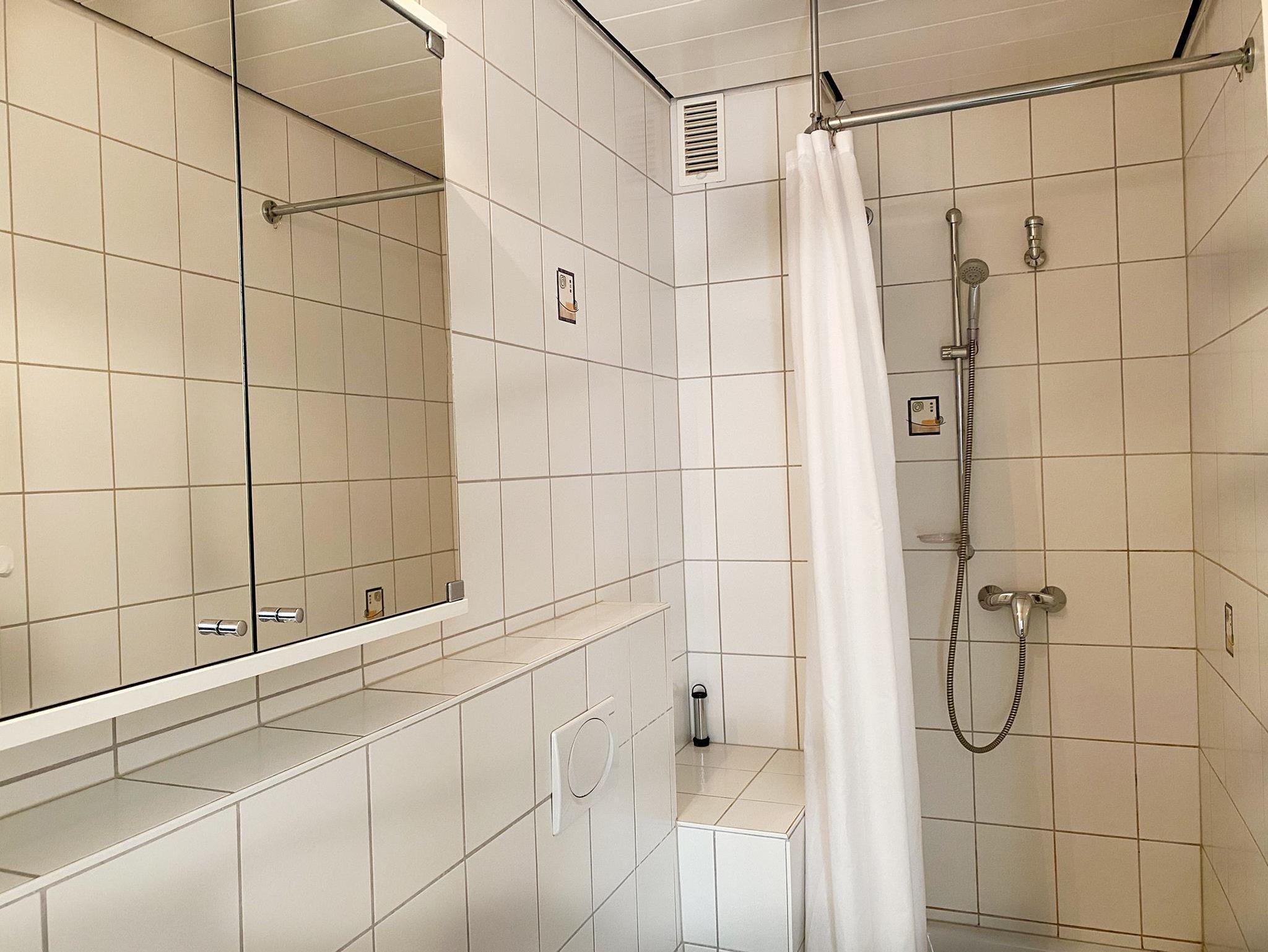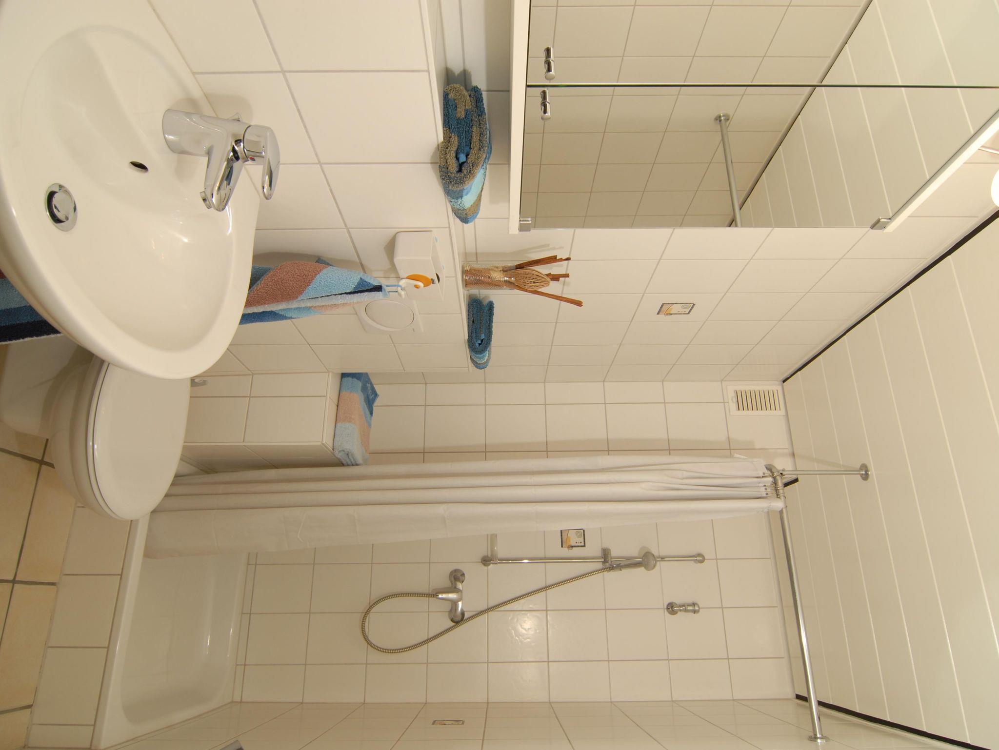 Bad: Dusche, Waschbecken, WC, Spiegelschrank