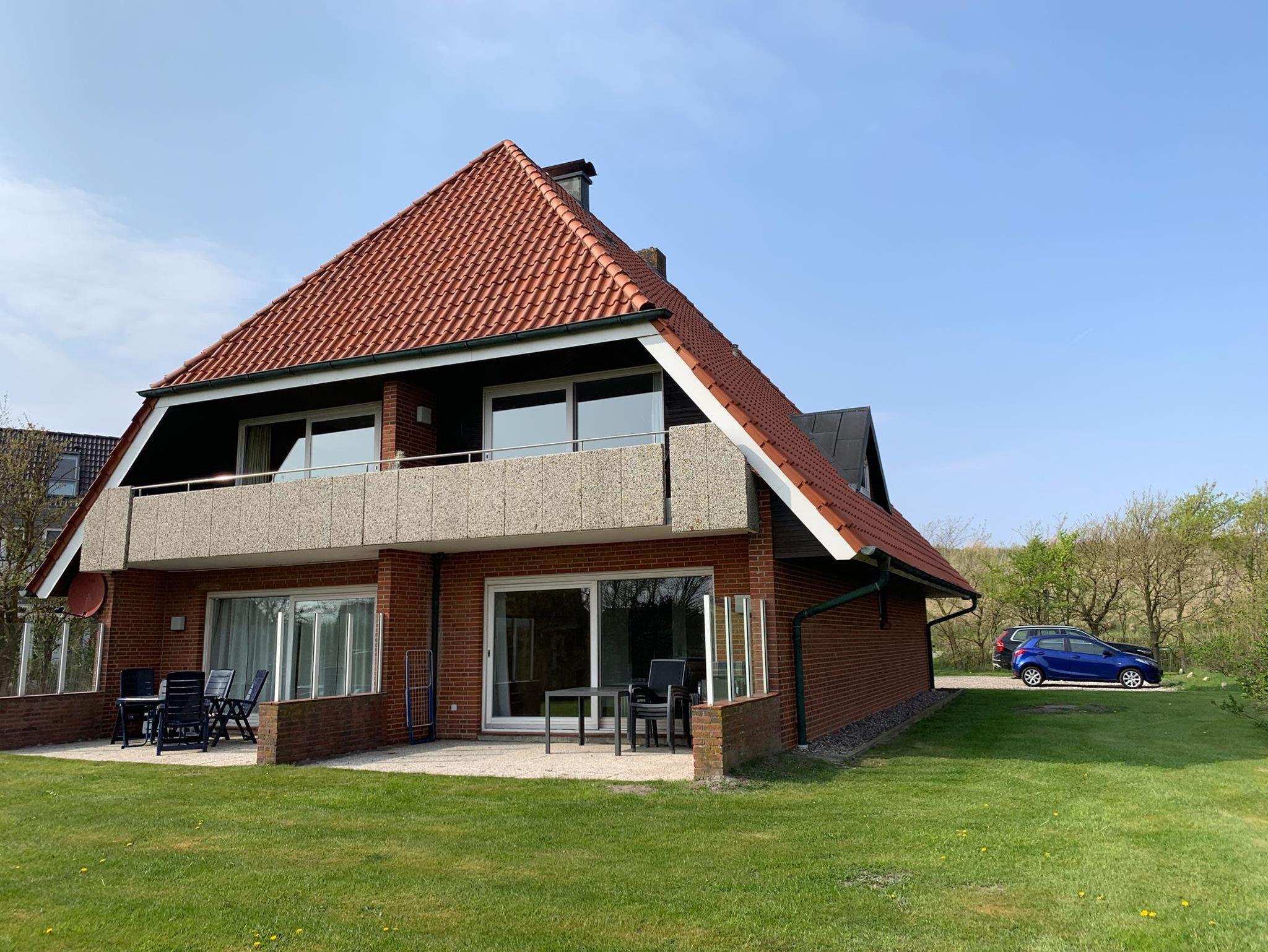 Modern eingerichtete Ferienwohnung Haus Hooge in ruhiger Lage direkt hinter dem Deich mit Balkon und weitem Blick.
