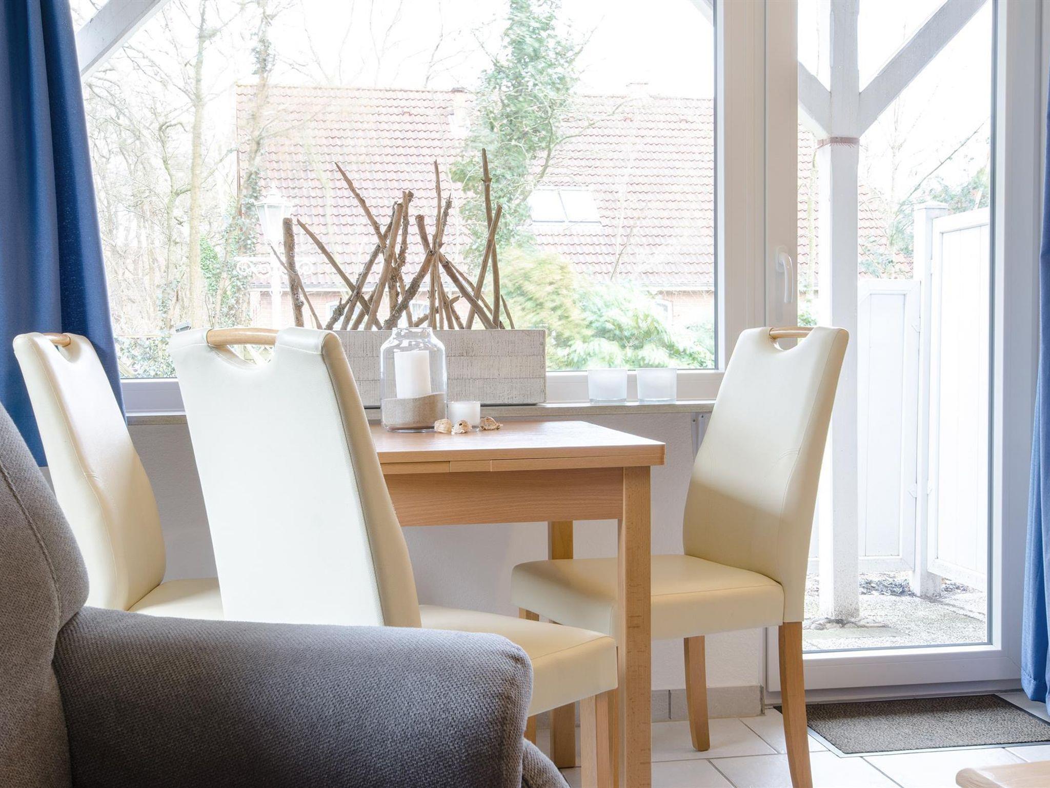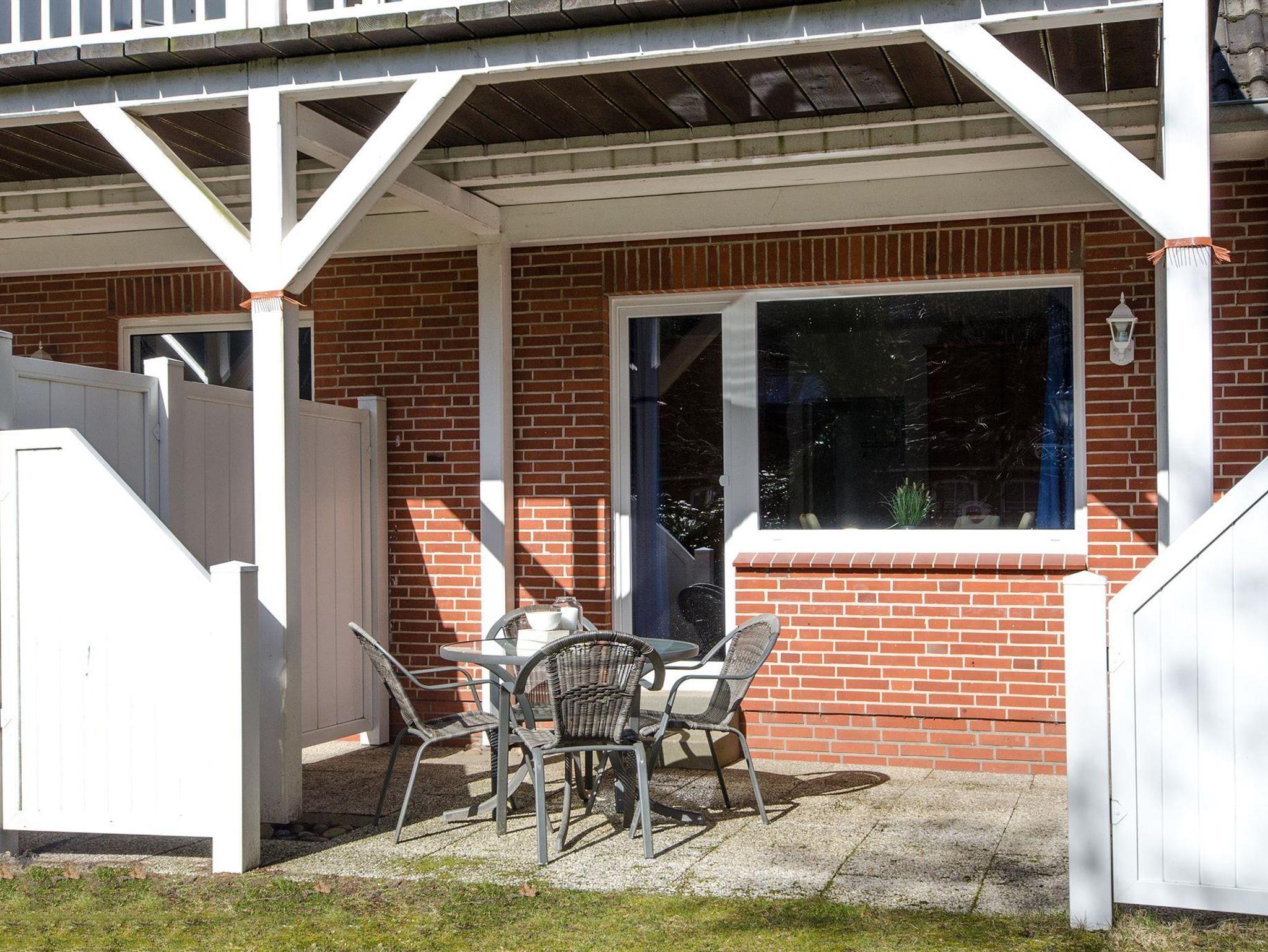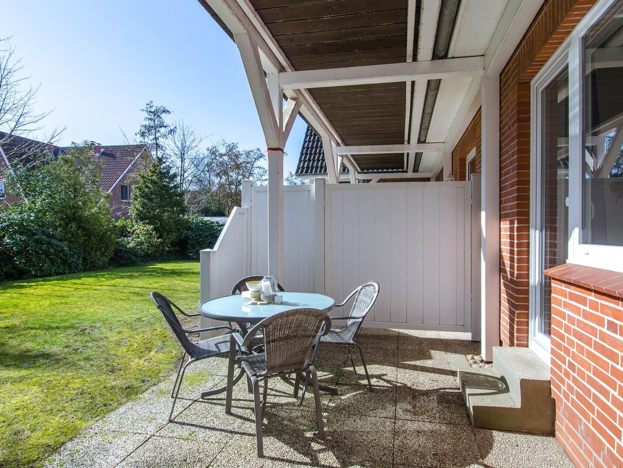 • Außenbereich: Genießen Sie sonnige Stunden auf der Terrasse mit Gartenmöbeln und eigenem Strandkorb.