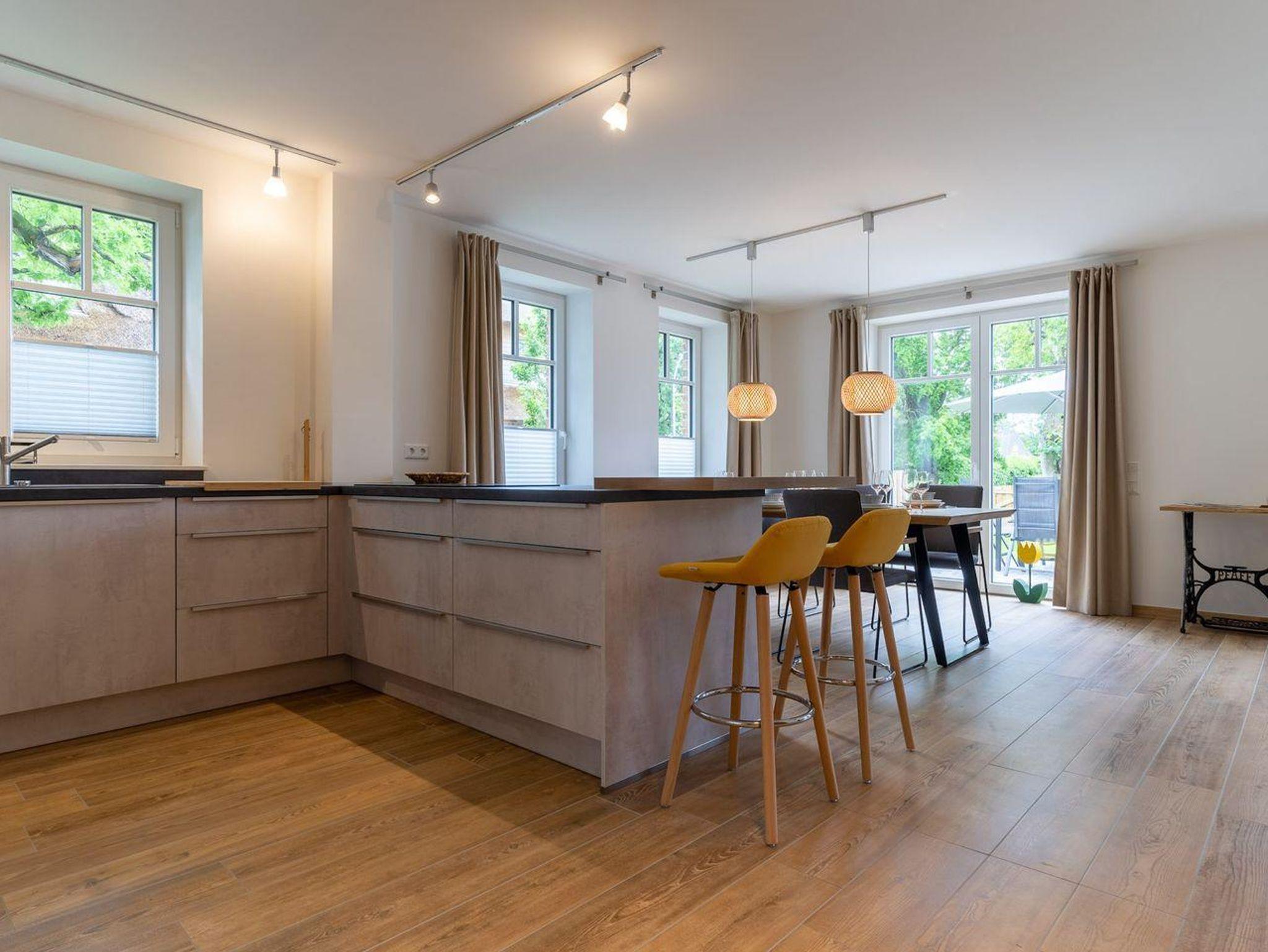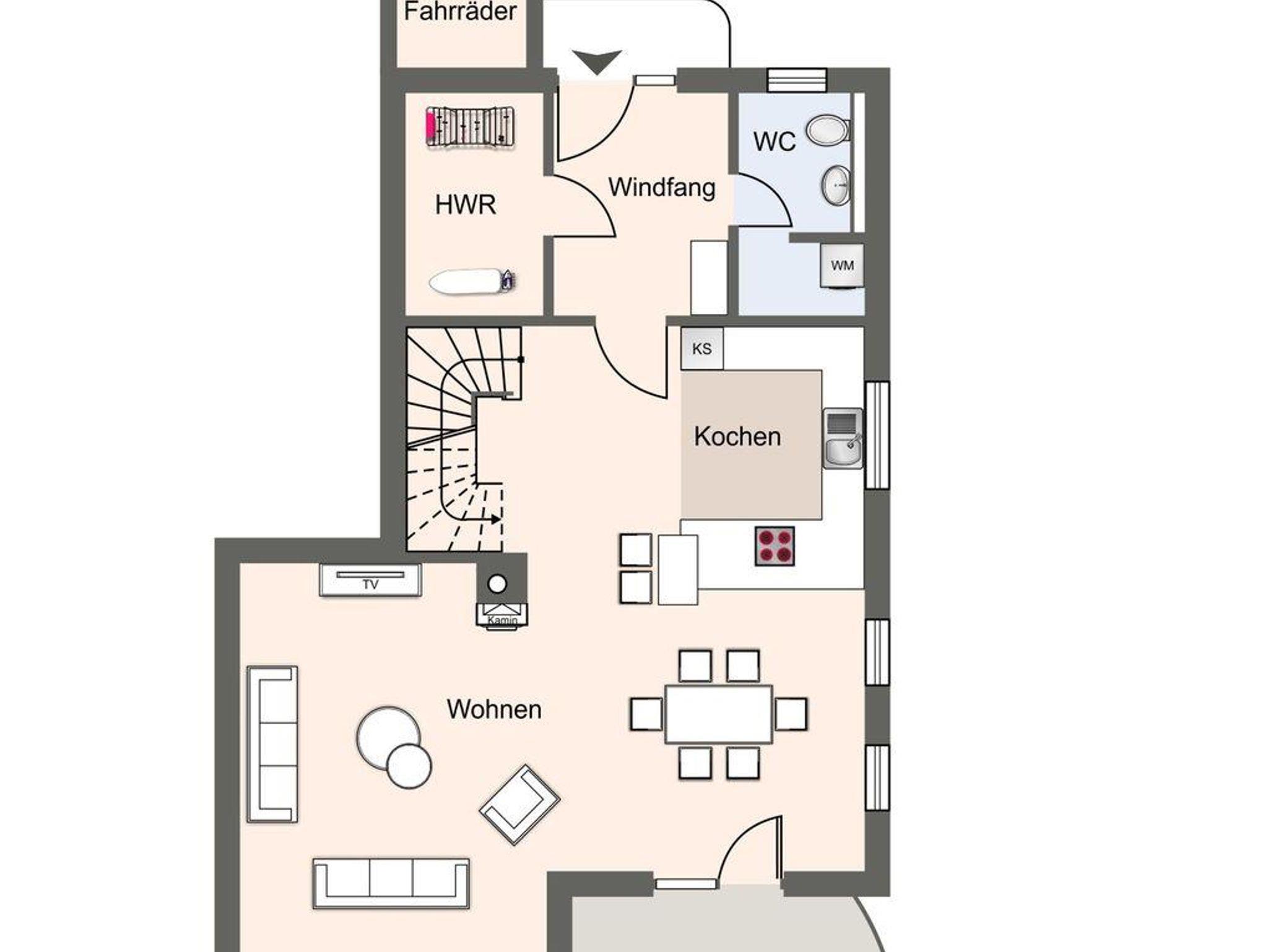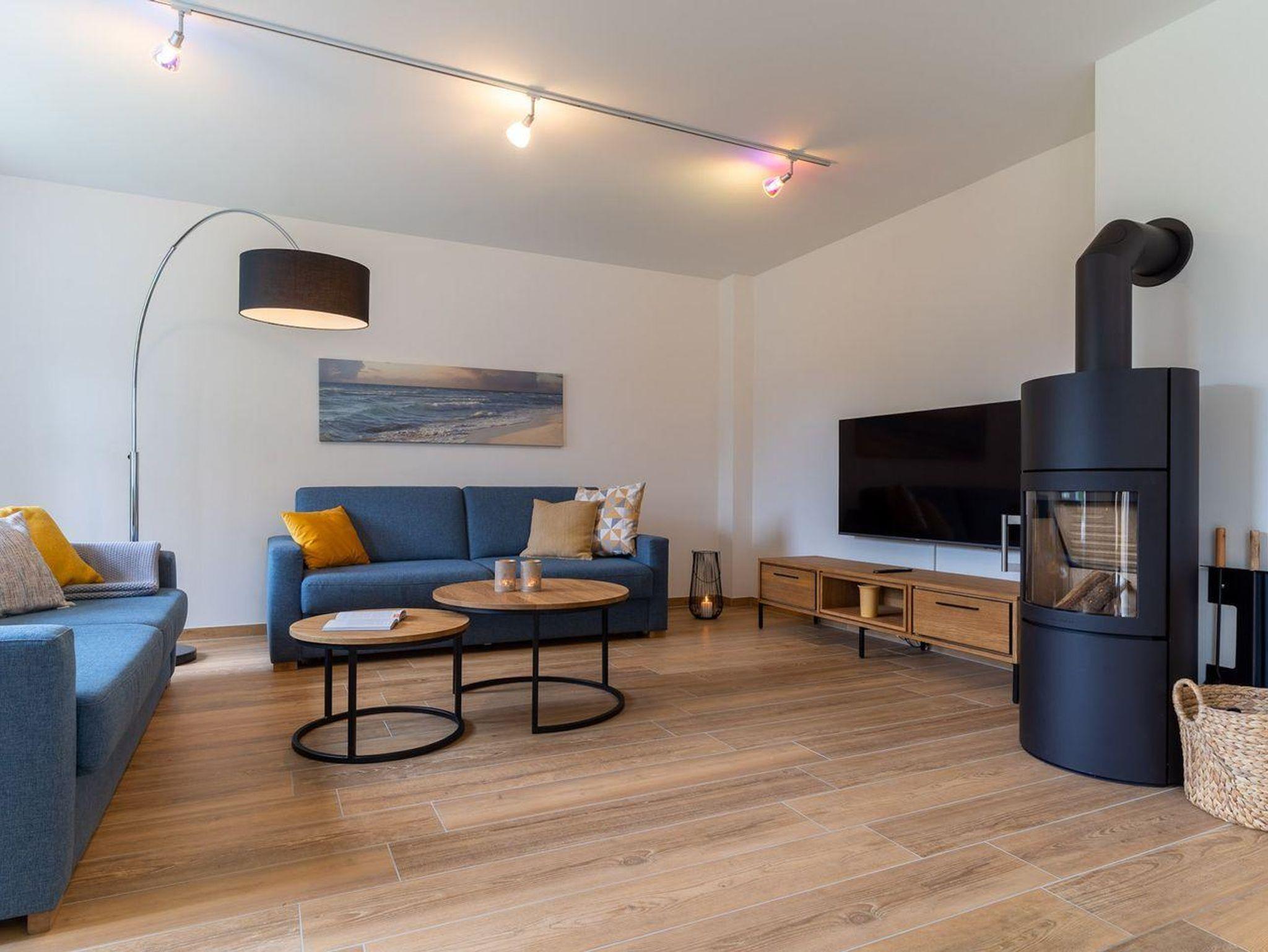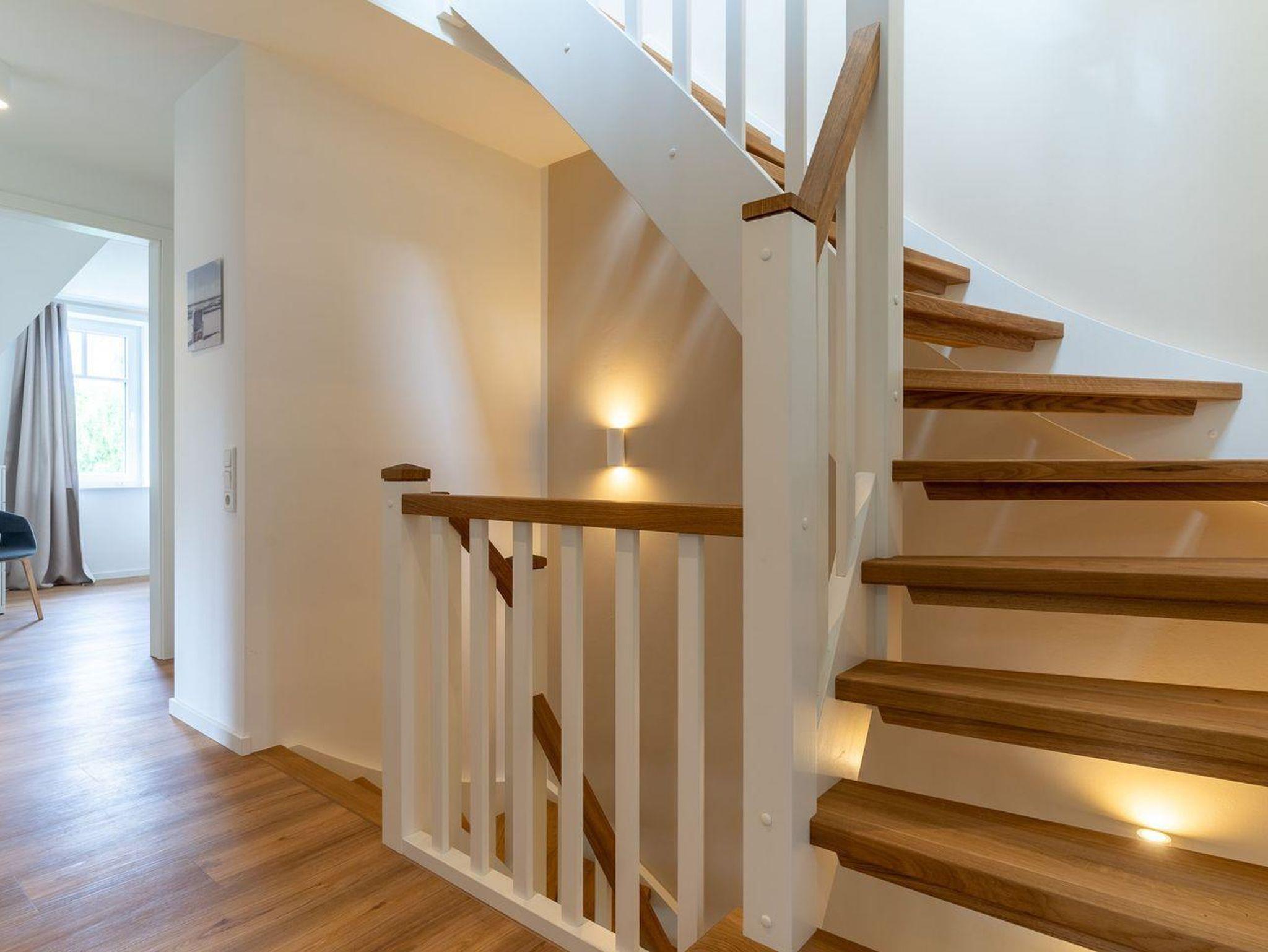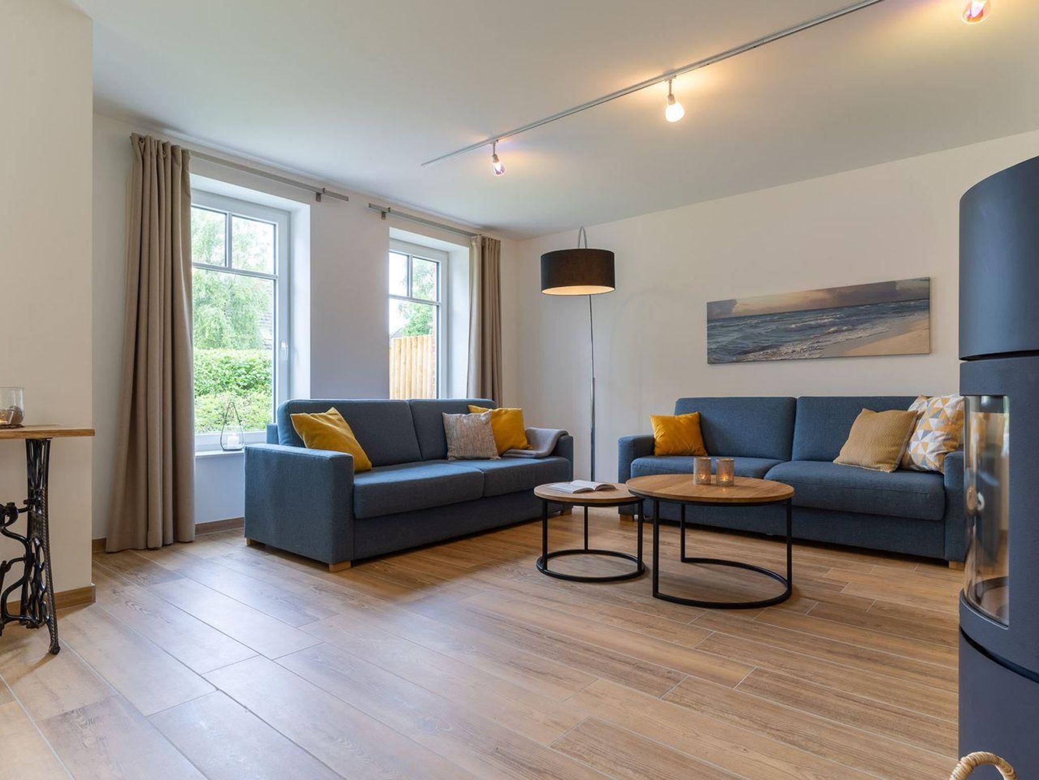 Dieses wunderschöne Einzelhaus verfügt über ca. 120 m² Wohnfläche und bietet großzügigen Platz für 6 Personen. Im Erdgeschoss befindet sich der lichtdurchflutete Wohnraum mit TV, Kamin, einer großzügigen Sitzecke und einem wunderschönen Erker zum Chillen. Die offene Wohnküche verfügt über hochwertige Geräte und ist voll ausgestattet für gemeinsames Kochen. Die Wohnräume sind mit exklusiven Möbeln eingerichtet. An den Wohnbereich schließen sich ein Flur, sowie ein großzügiger Hauswirtschaftsraum. Ebenso ist im Erdgeschoss ein Gästebad mit Dusche. Das gesamte Erdgeschoss verfügt über geschmackvolle Fußbodenfliesen und hochwertiges Parkett.