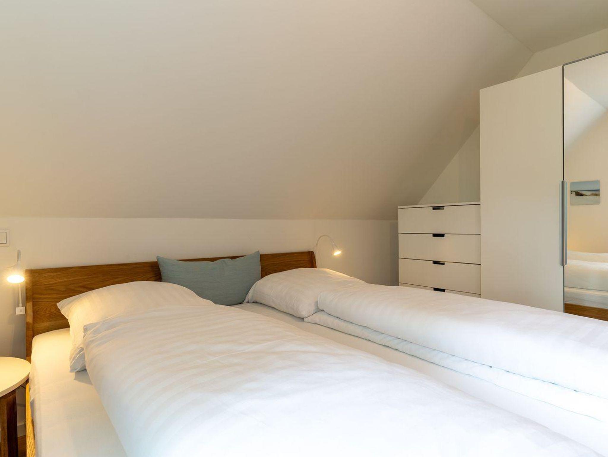 Über eine offene Treppe gelangt man in das mit Parkett ausgelegte Obergeschoss. Die drei Schlafzimmer, jeweils mit einem Doppelbett, sorgen für ruhevolle Erholung. Darüber hinaus befindet sich im Obergeschoss ein weiteres großzügiges Vollbad.