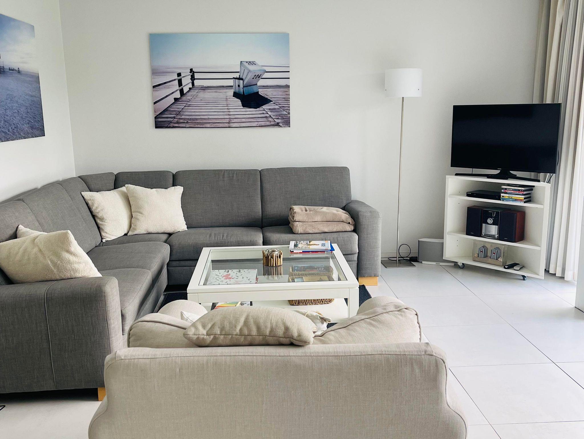 Schön, hell gelangen Sie durch den Eingangsbereich in das Wohnzimmer mit dänischem Kamin, Kabel-TV Flachbildschirm,