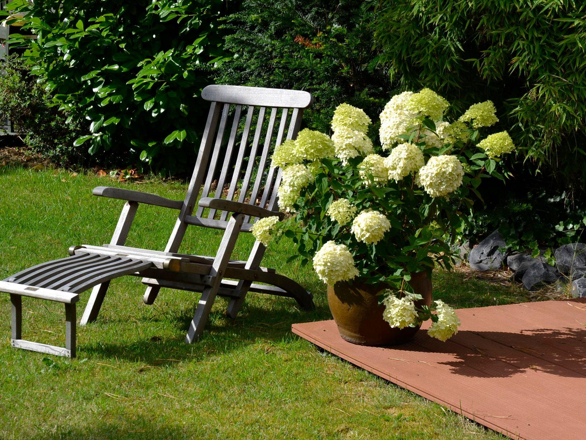 Verbringen Sie die sonnige Zeit auf einem der beiden Aussenterrassen im Strandkorb, oder im Garten auf den Gartenliegen und Möbeln.