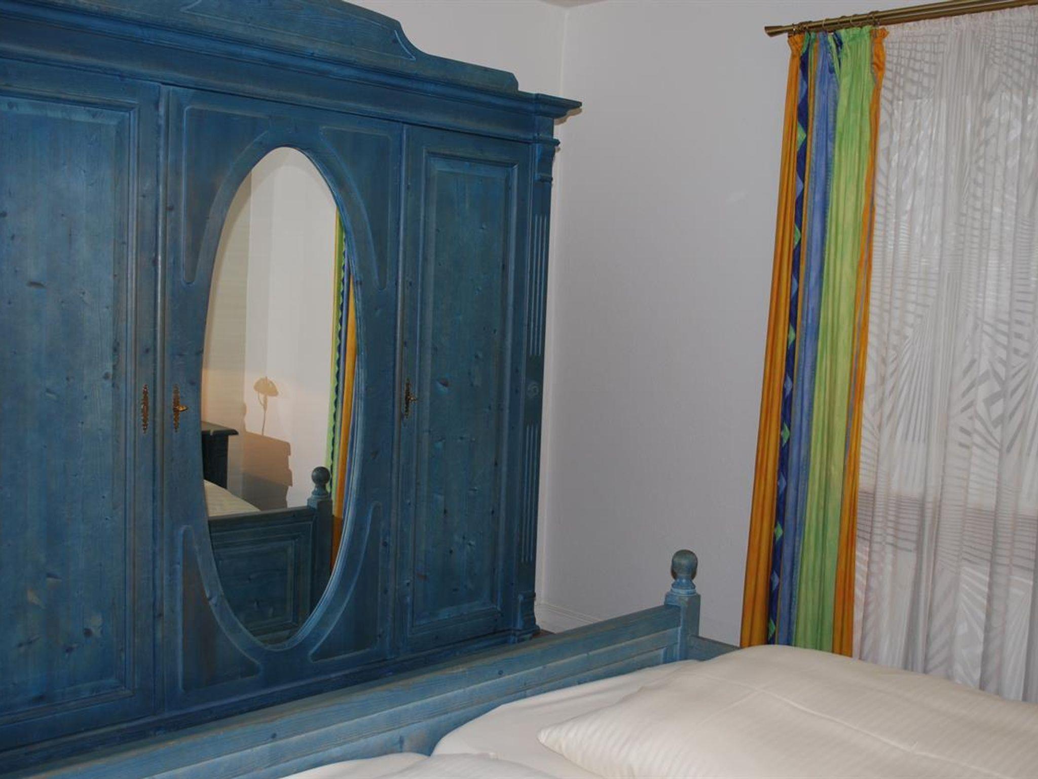 Die Wohnung Gröde ist sehr stilvoll und hochwertig mit blauen Ledersofas, blau lasierten Stilmöbeln und viel Liebe für das Detail eingerichtet.