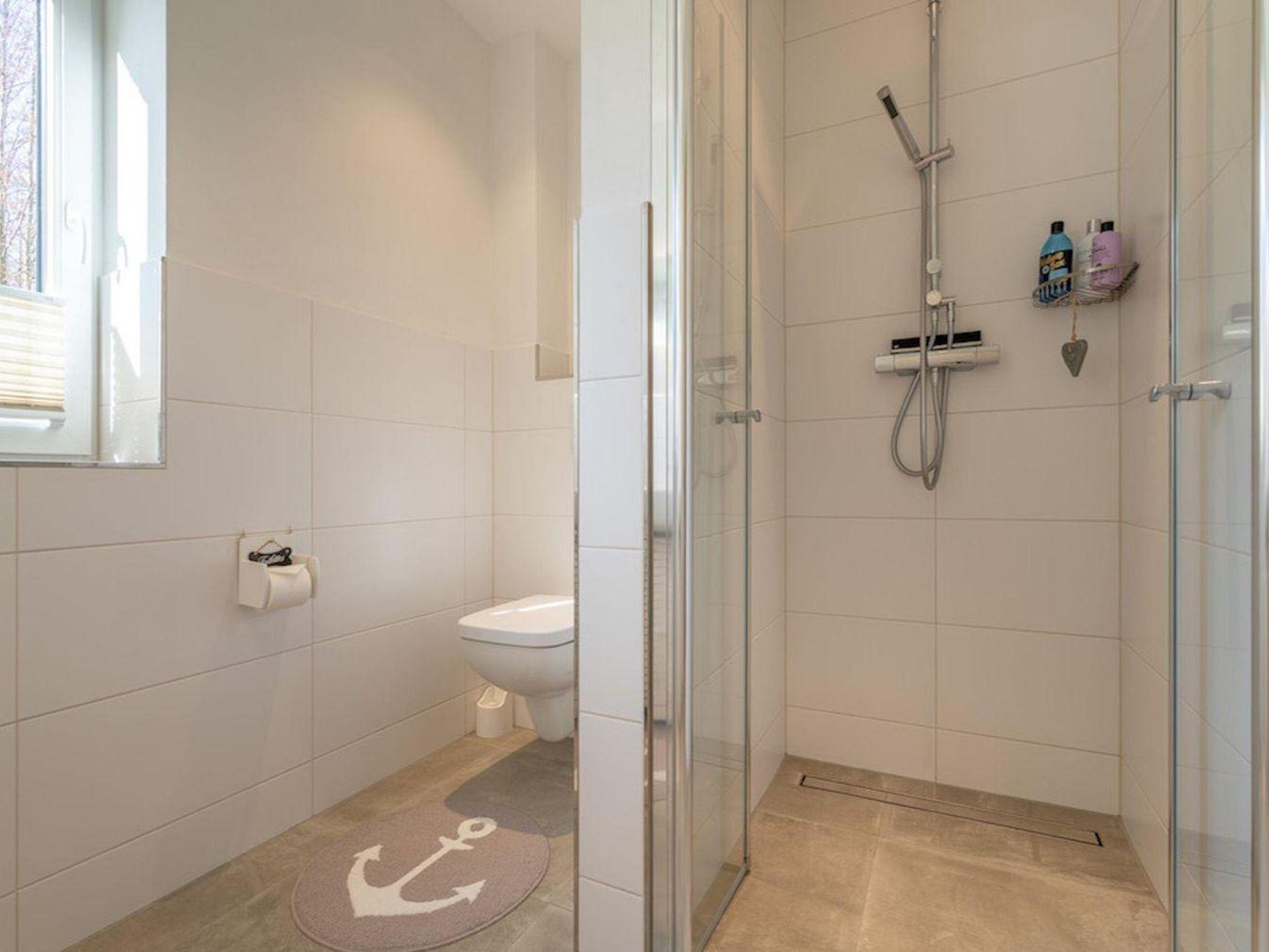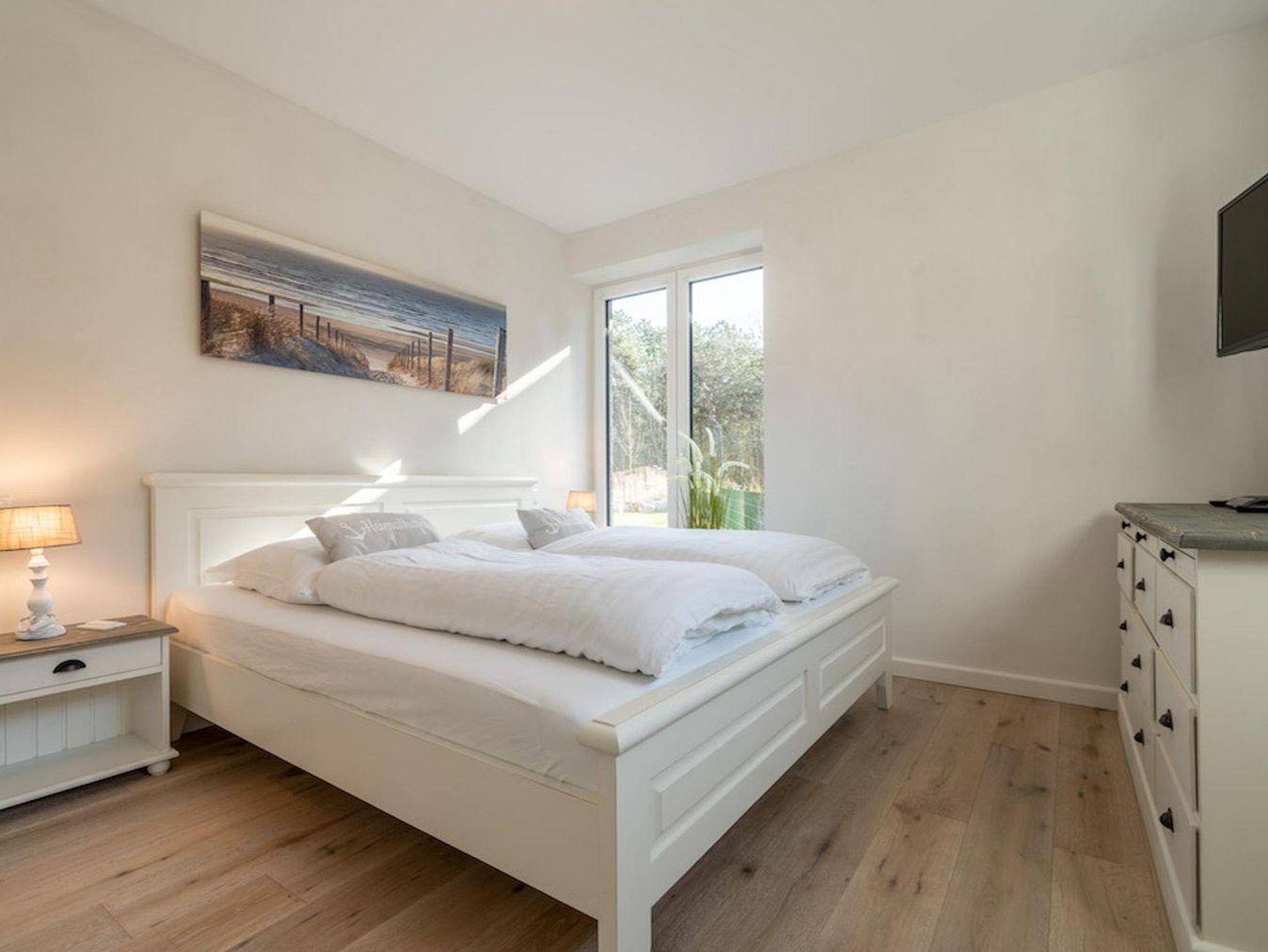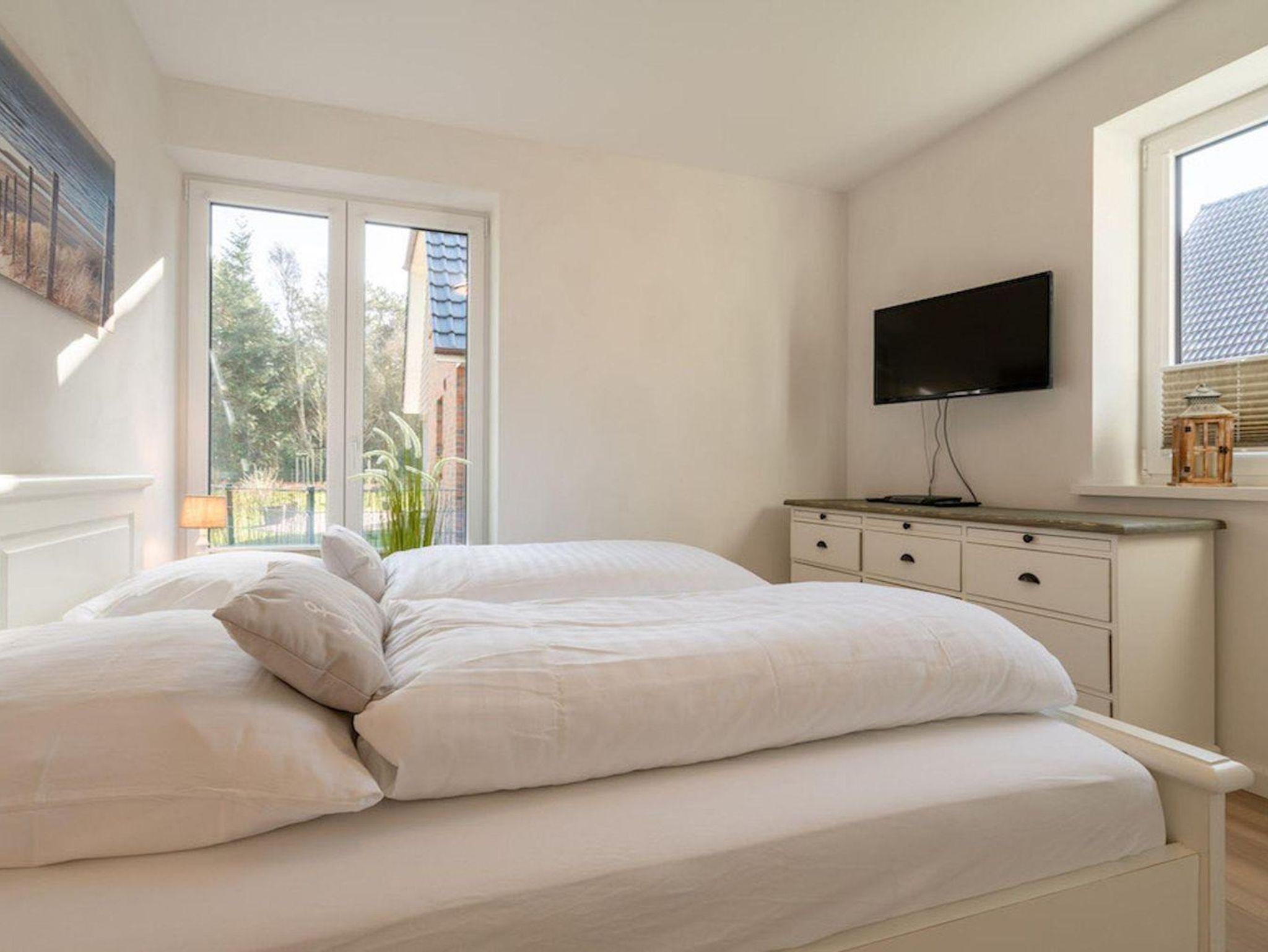 Im Erdgeschoss ist ebenso ein Doppelschlafzimmer mit Kommode und TV, sowie ein Duschbad mit WC.