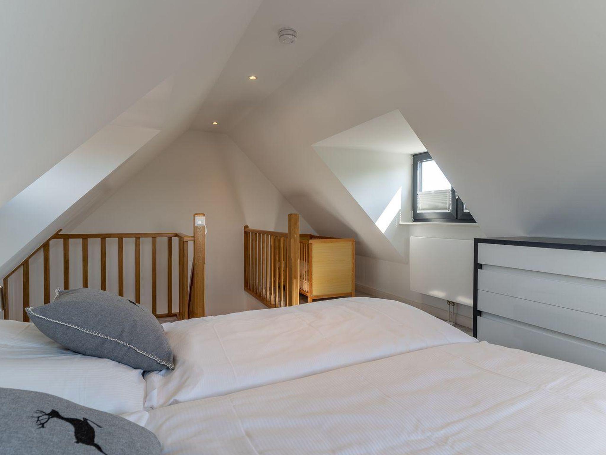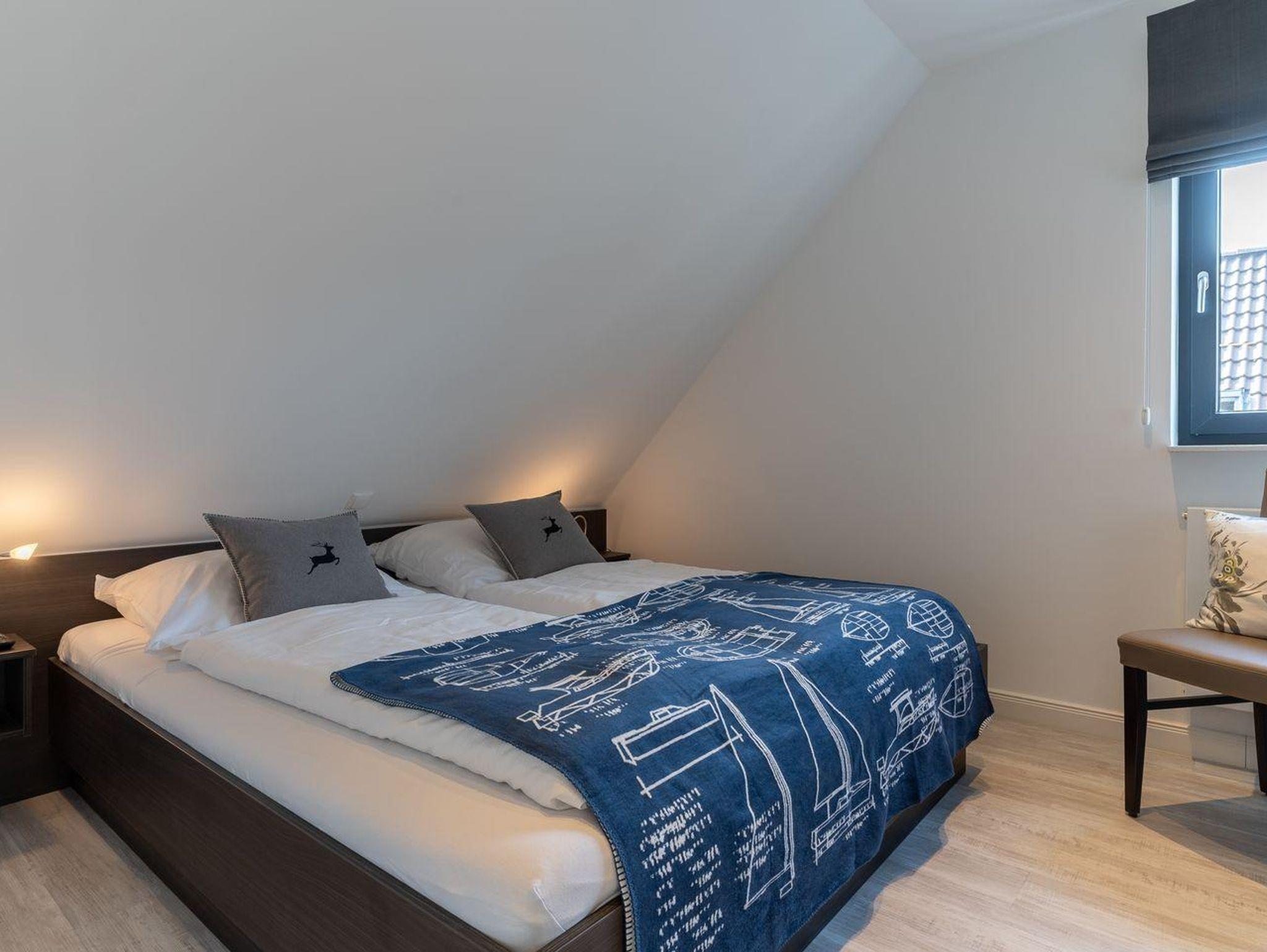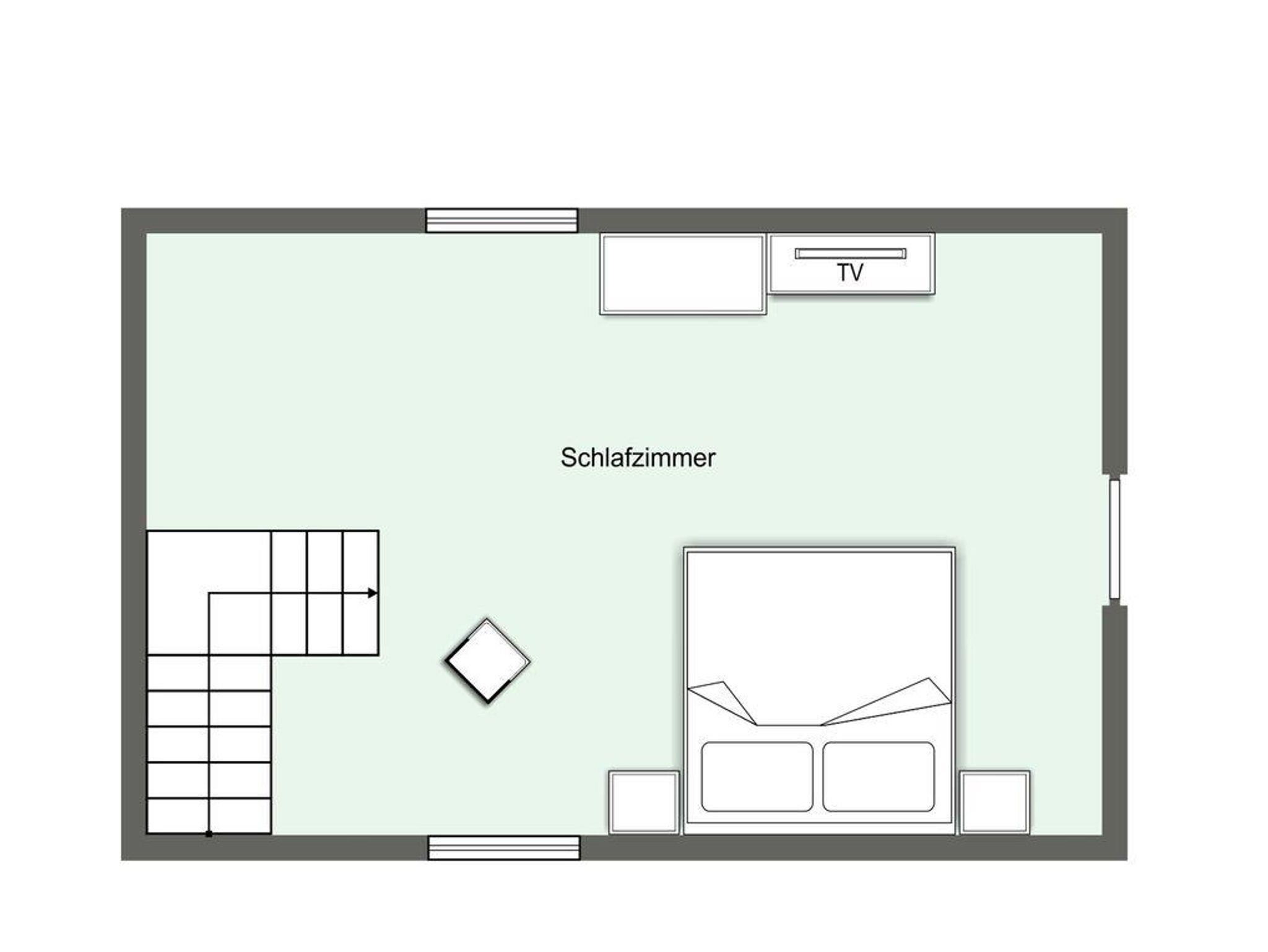 Ein weiteres Schlafzimmer mit einem 160er Doppelbett und LCD-Flach-TV ist über eine Treppe vom Wohnraum zu erreichen.