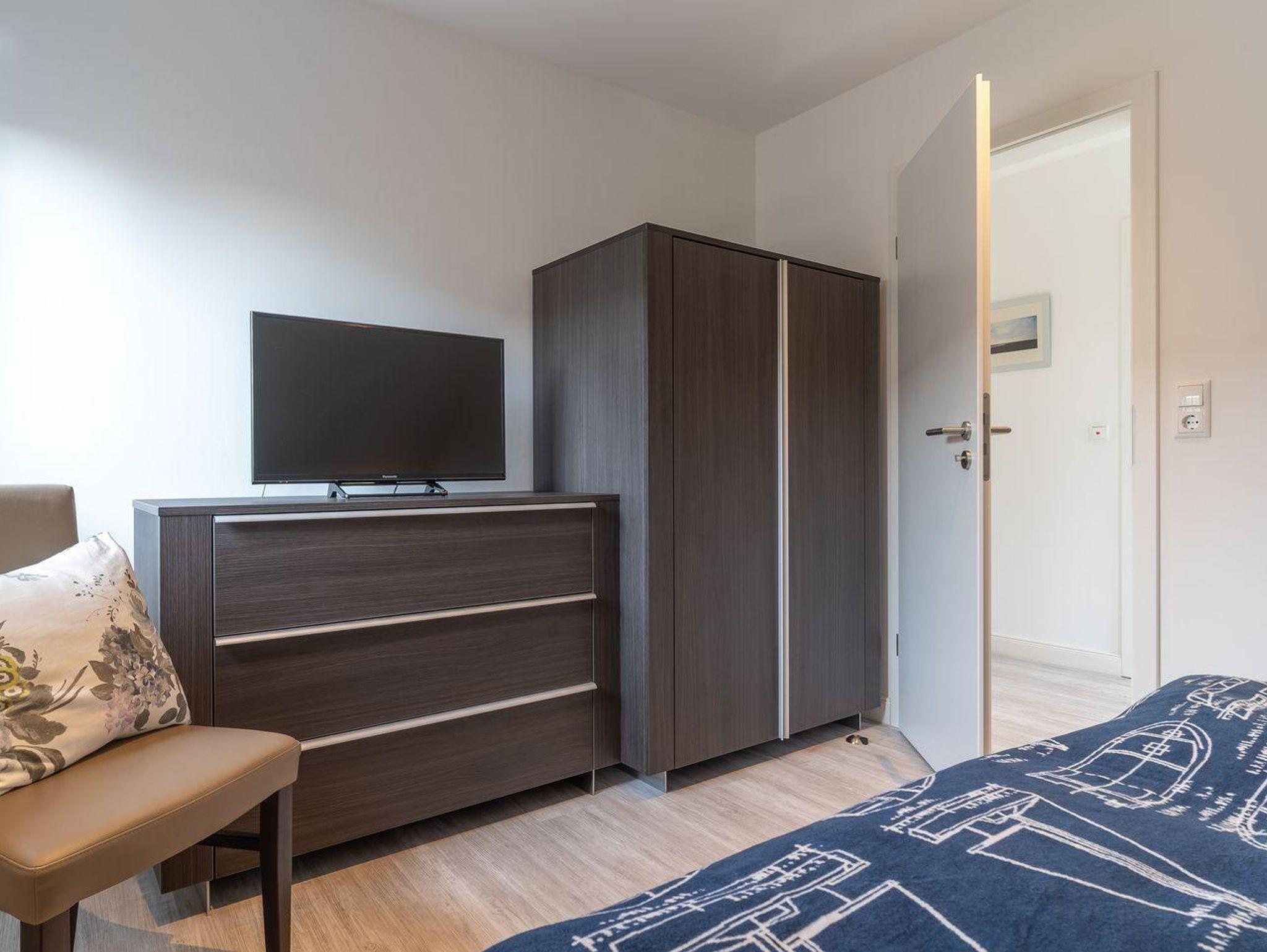 Vom Flur gelangen Sie ins Doppelschlafzimmer mit einem 160er Doppelbett mit TV.