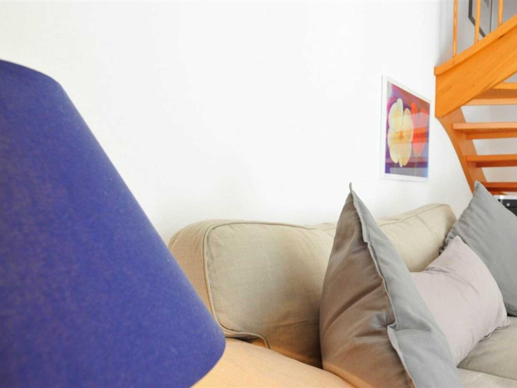 2. Schlafzimmer (halboffen) mit 2 Einzelbetten (je 90x200cm), Kommode, Tisch, 2 Sesseln und Stuhl. Zugang über eine steile Wendeltreppe vom Wohnzimmer.