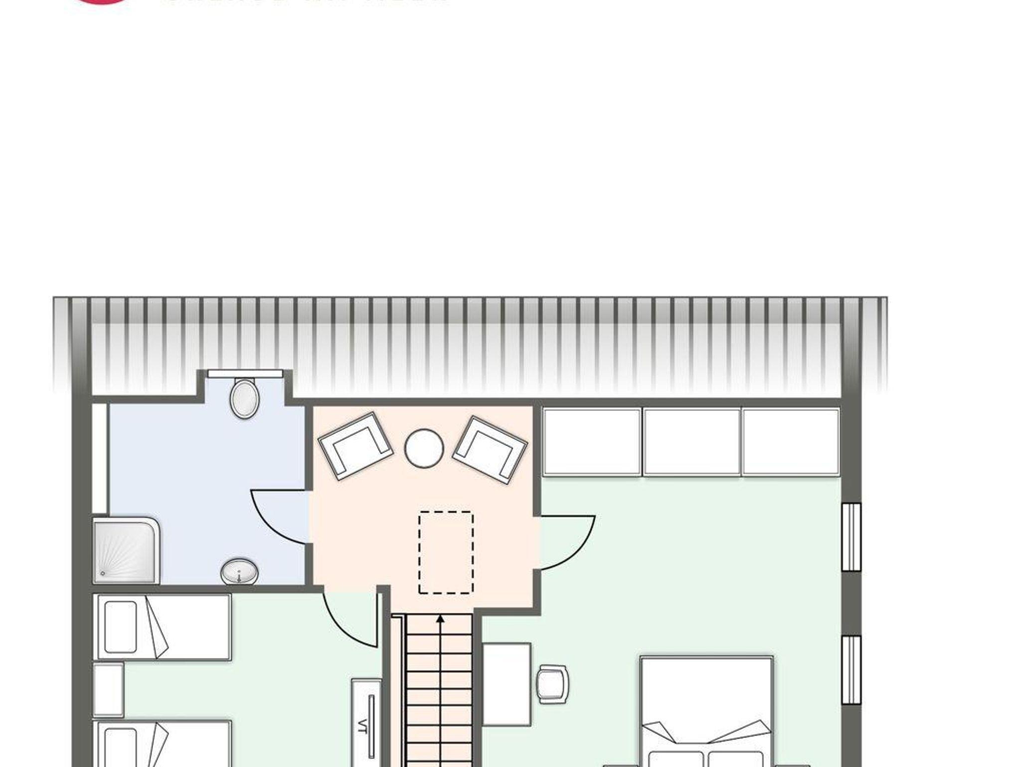 Über eine Holztreppe gelangt man in das Obergeschoss. Die zwei weiteren Schlafzimmern, eines mit einem Doppelbett und eines mit 2 Einzelbetten, sorgen für ruhevolle Erholung. Darüber hinaus befindet sich im Obergeschoss ein weiteres großzügiges Duschbad.
