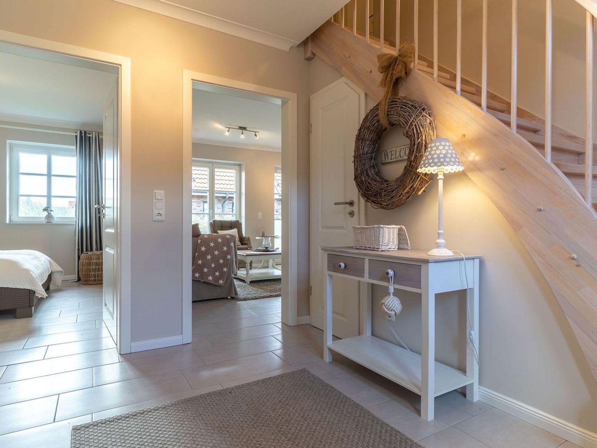 Dieses wunderschöne Doppelhaus unter Reet verfügt über ca. 113 m² Wohnfläche und bietet großzügigen Platz für 6 Personen. Im Erdgeschoss befindet sich der lichtdurchflutete Wohnraum mit TV, Kamin, einer großzügigen Sitzecke. Die offene Wohnküche verfügt über hochwertige Geräte und ist voll ausgestattet für gemeinsames Kochen. Die Wohnräume sind mit exklusiven Möbeln eingerichtet. An den Wohnbereich schließen sich ein Flur, sowie ein Hauswirtschaftsraum. Ebenso ist im Erdgeschoss ein Doppelschlafzimmer mit Gästebad und Dusche. Das gesamte Erdgeschoss verfügt über geschmackvolle Fußbodenfliesen.