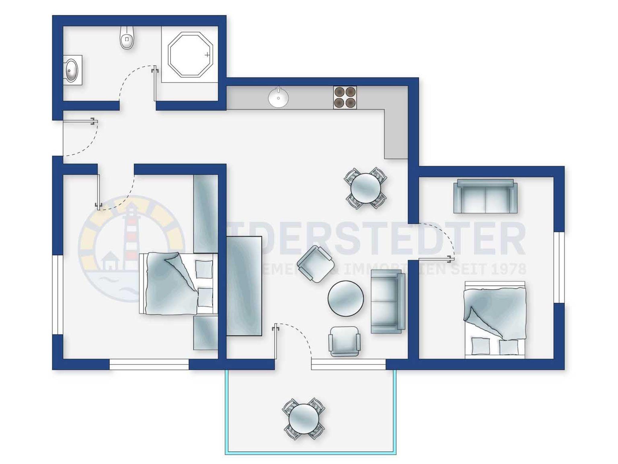 Moderne 3-Zimmer-Ferienwohnung im Haus Everschop mit ca. 60 m² auf 1 Ebene (EG) für bis zu 4 Personen. In einmalig schöner Lage direkt am Deich im Ortsteil Ording in St. Peter-Ording. Das Meeresrauschen unmittelbar vor der Haustür, ideal für Ihren nächsten perfekten Nordsee-Urlaub.