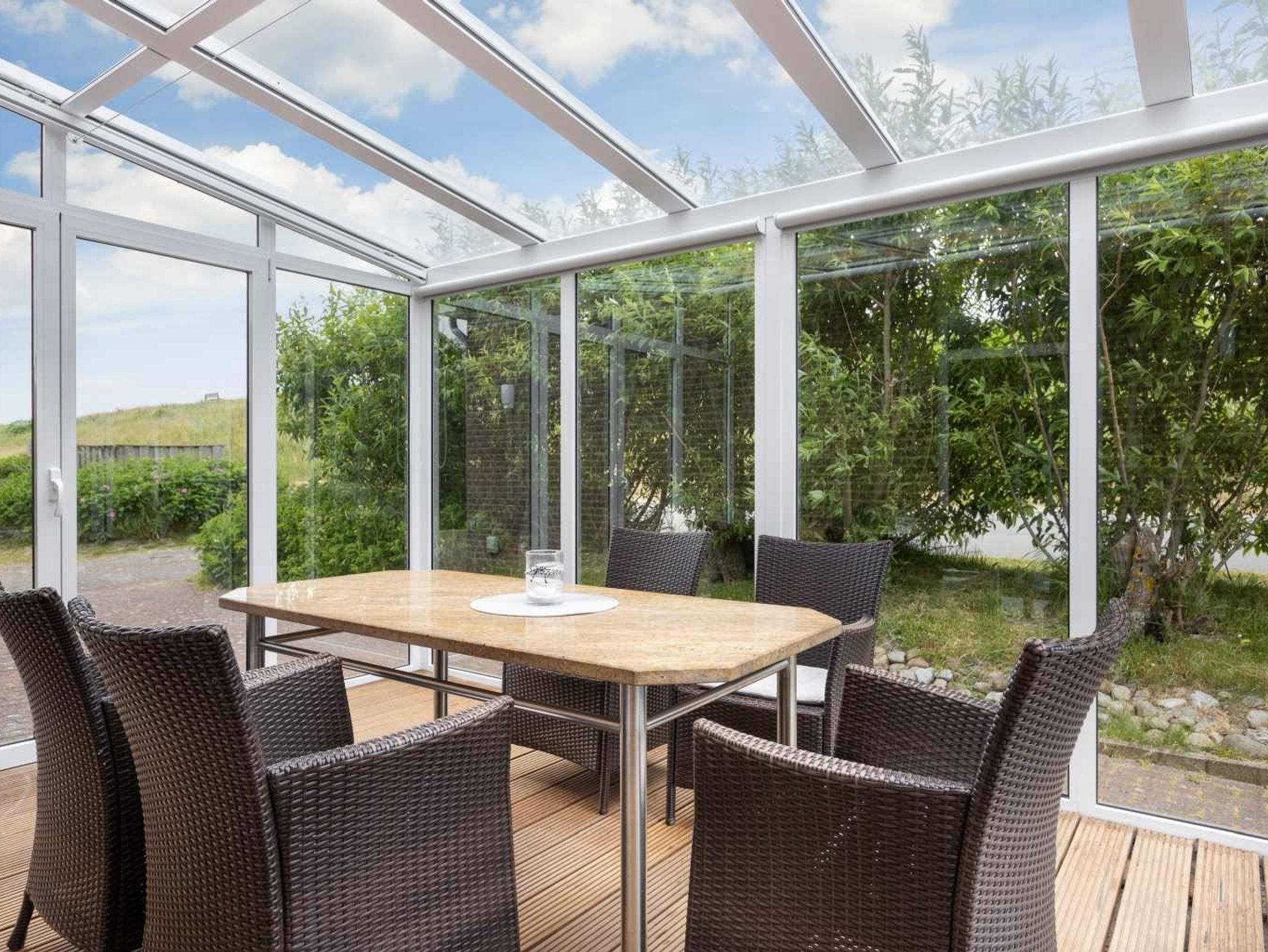 Moderne 3-Zimmer-Ferienwohnung direkt am Deich in St. Peter-Ording mit Wintergarten und Liegewiese für perfekten Nordsee-Urlaub.