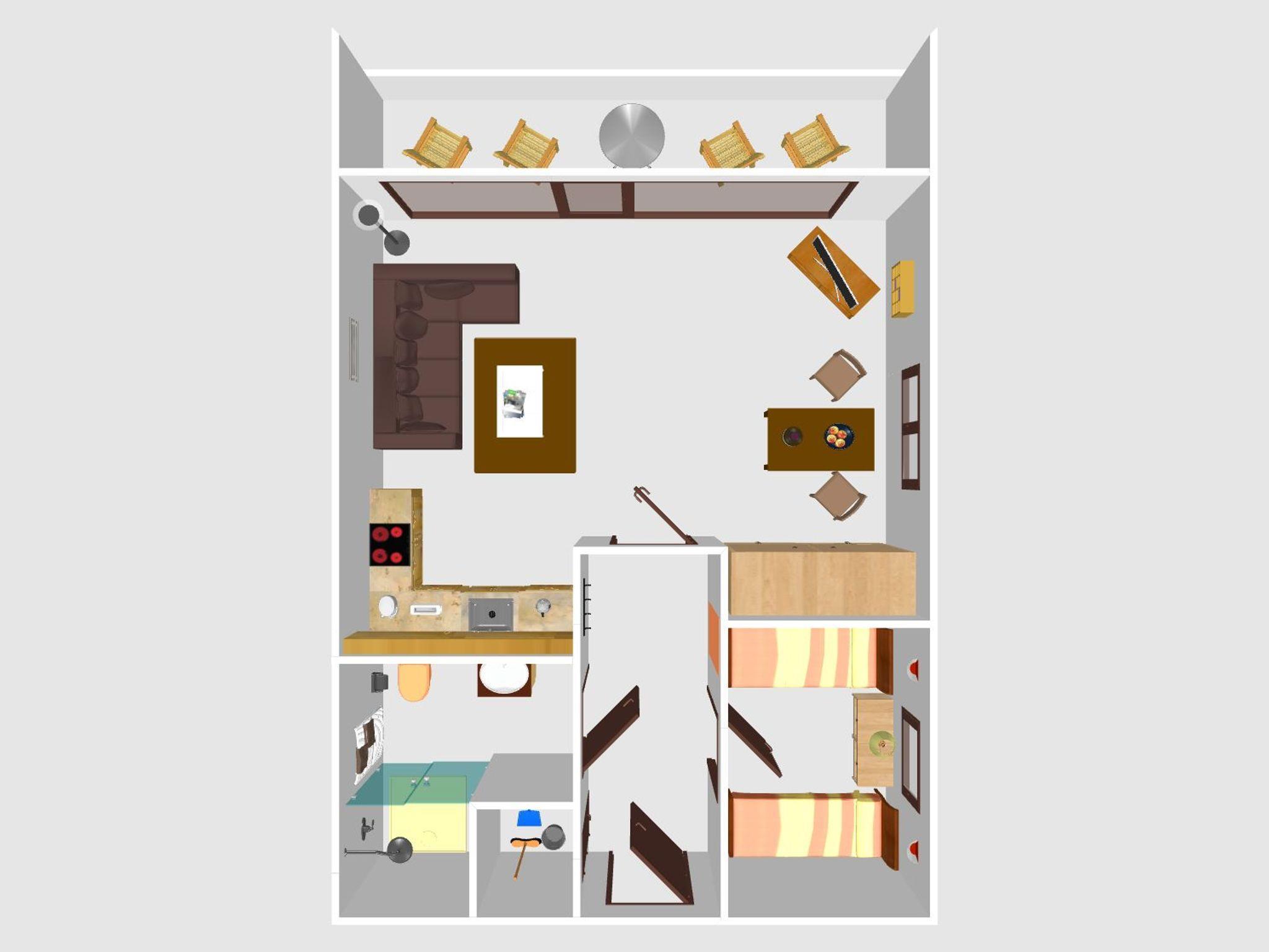(1 Wohnzimmer, 1 Schlafzimmer, 1 Badezimmer)