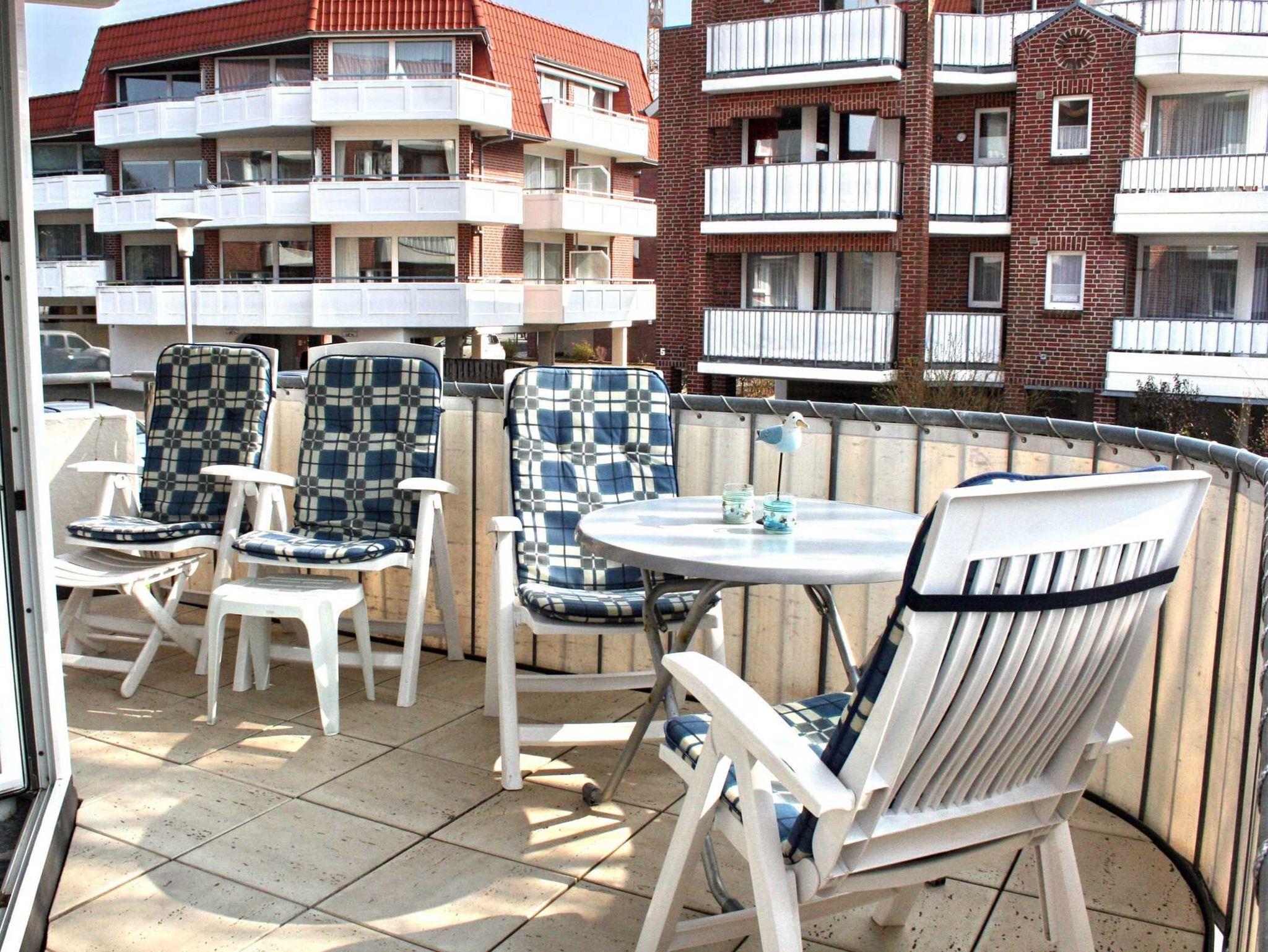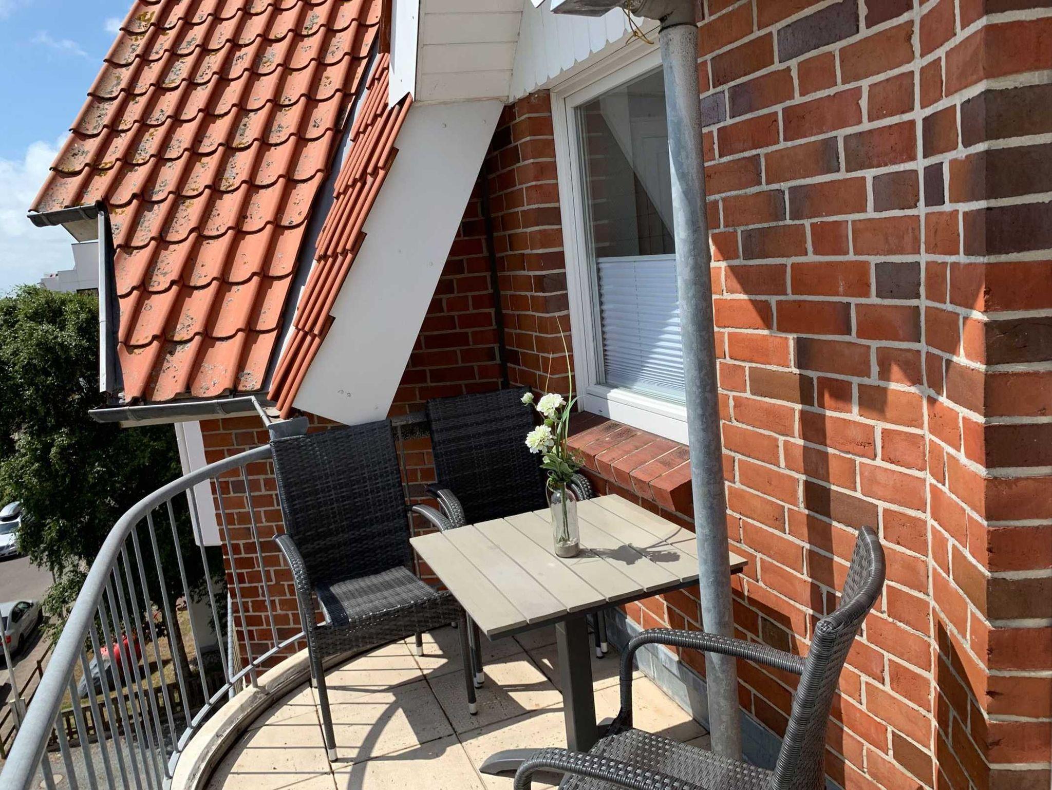 Helle 2-Zimmer-Ferienwohnung in St. Peter-Bad mit Balkon und Meerblick, perfekt für einen entspannten Urlaub am Meer.