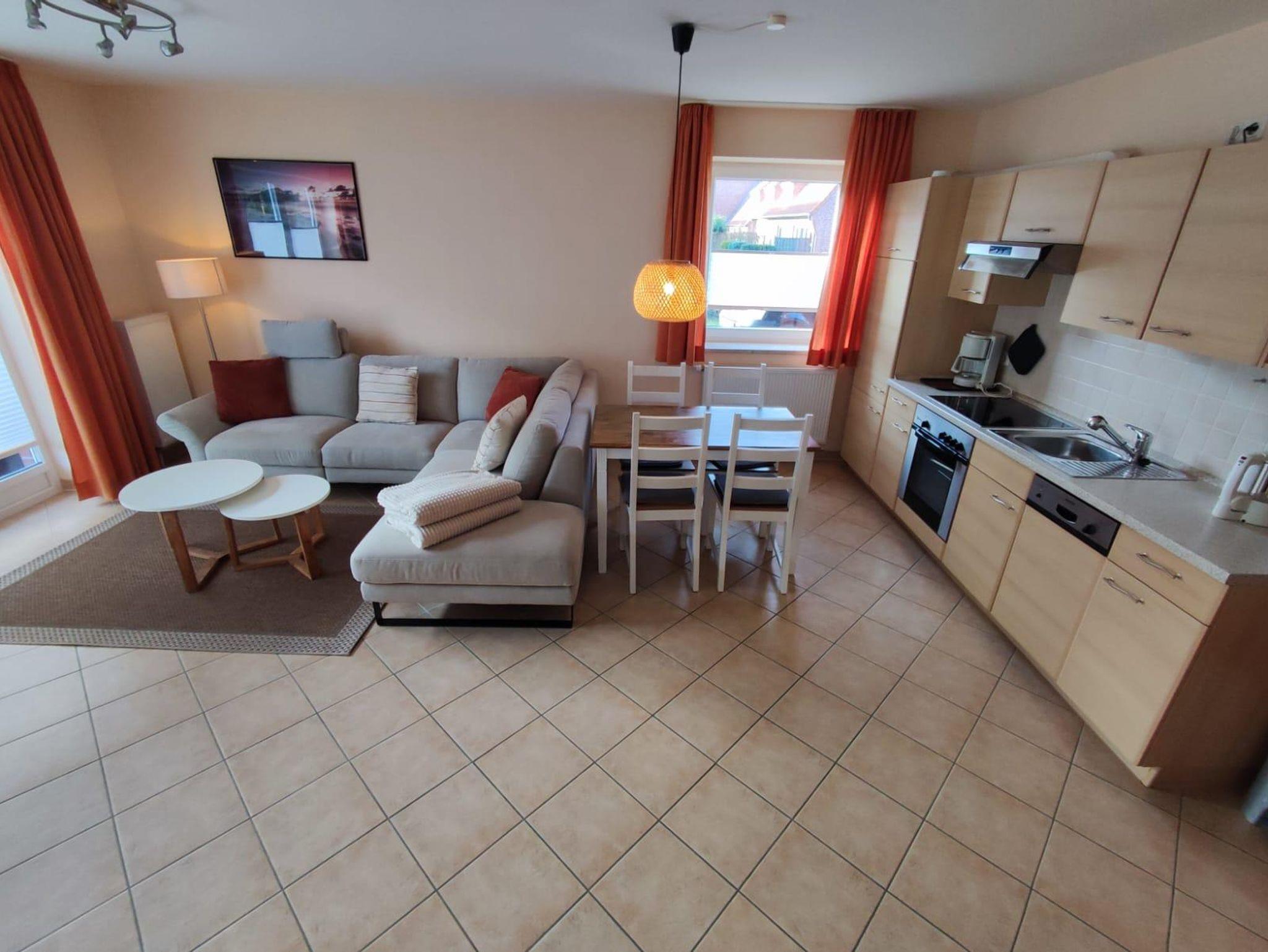 Die Ferienwohnung „Meeresbriese“, im Erdgeschoss gelegen, bietet für 2-4 Personen echtes Urlaubsambiente. Auf rund 75qm erwartet Sie ein großer Wohn- und Essbereich mit offener und komplett ausgestatteter Küche. Zwei separate Schlafzimmer sowie ein schönes Bad mit Dusche/WC runden das Angebot ab. Die privat zu nutzende Sonnenterasse mit eigenem Strandkorb und Gartenmöbeln lädt zum Verweilen und Relaxen ein. Ihre Unterkunft liegt im beliebten Ortsteil Dorf und ist optimaler Ausgangspunkt für Ihre Urlaubsaktivitäten. Einkaufsmöglichkeiten sind in direkter Umgebung und die Strände sind einfach und schnell zu erreichen.